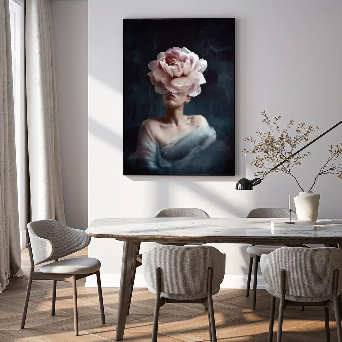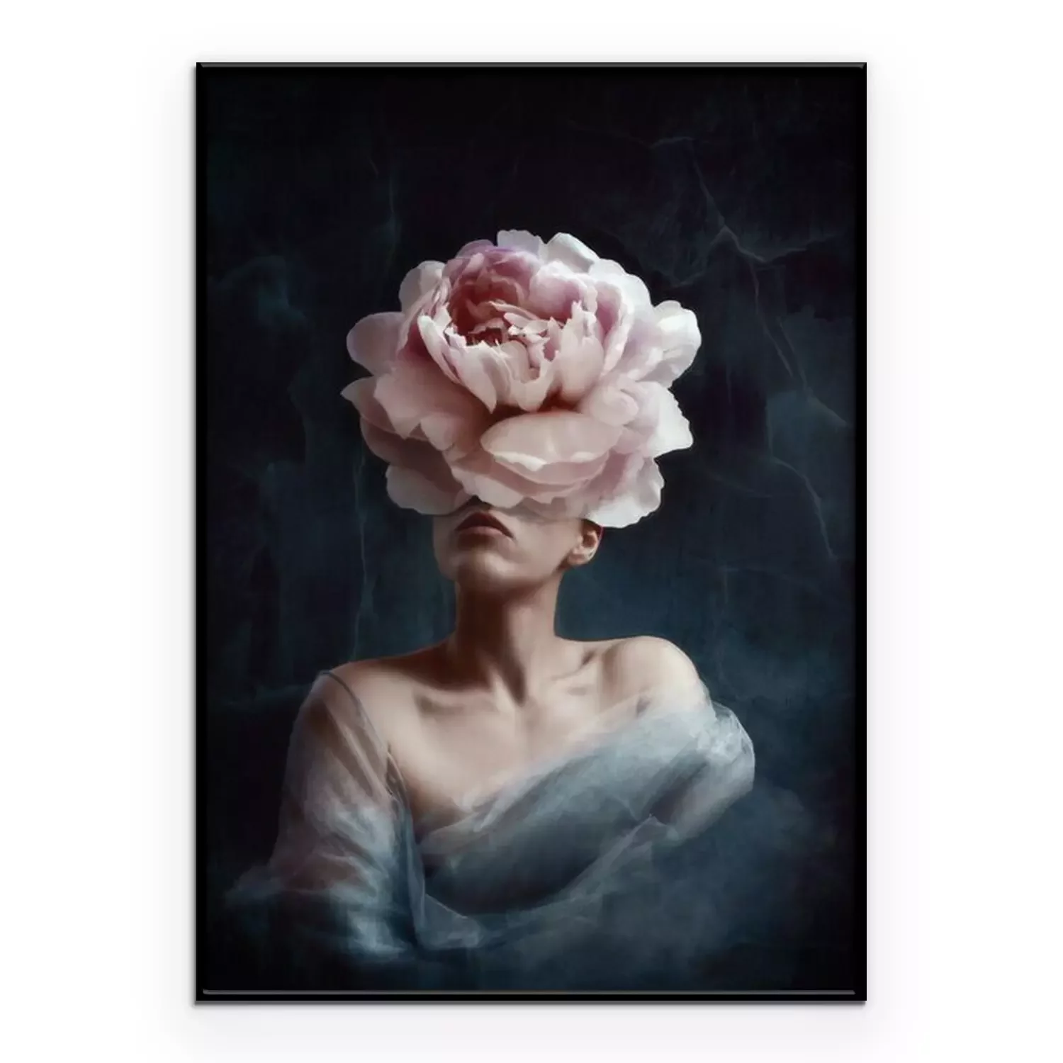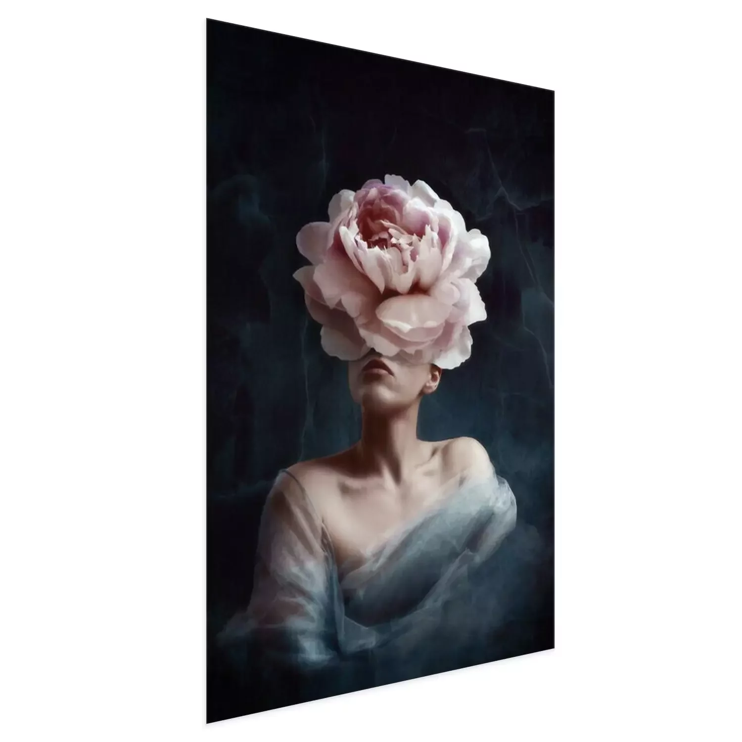 Poster  Conception artistique surréaliste d'une femme avec une tête de pivoine