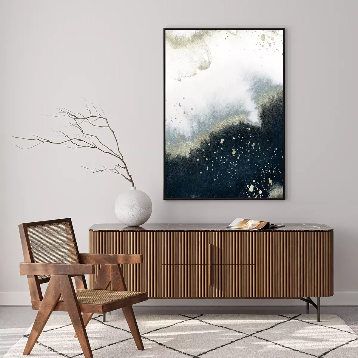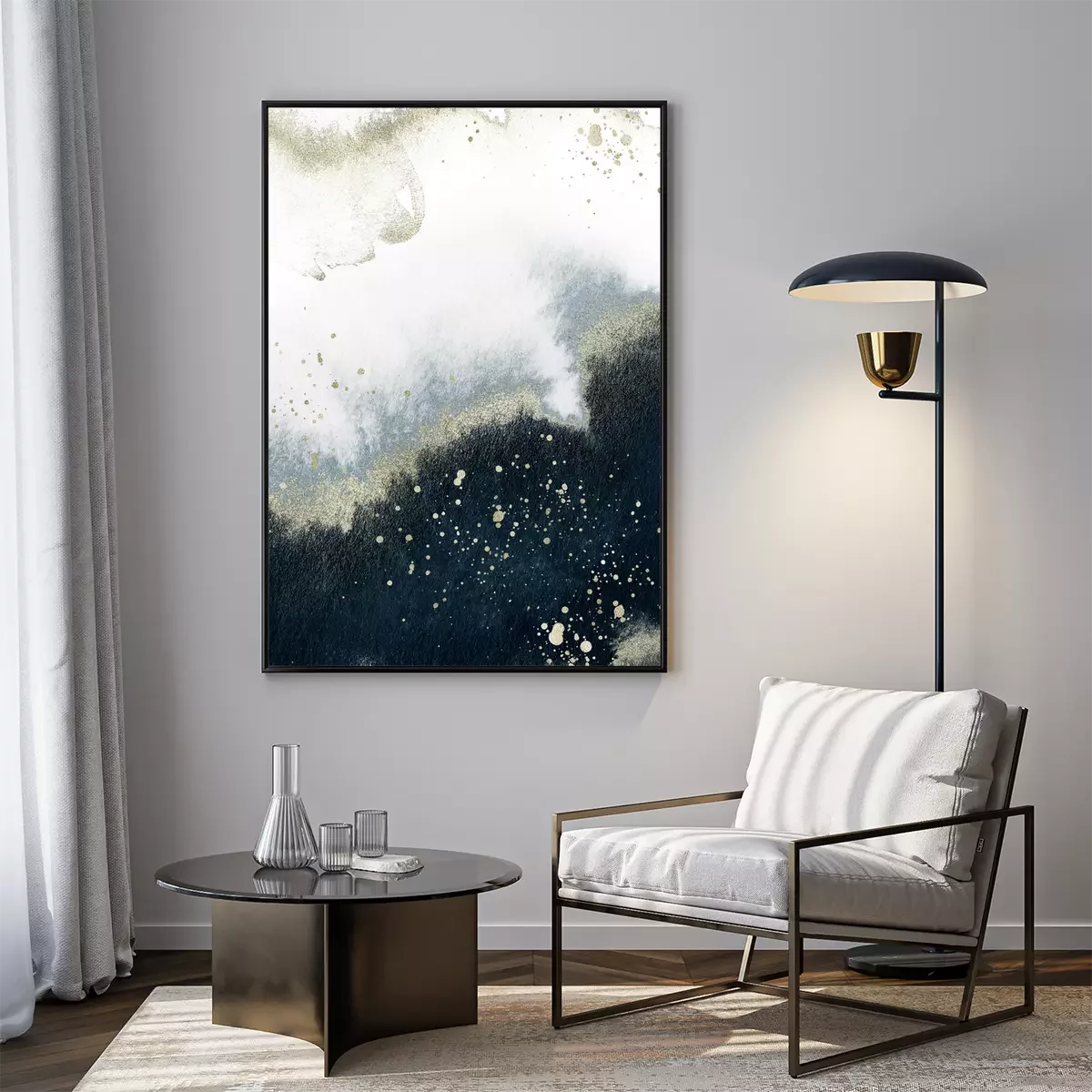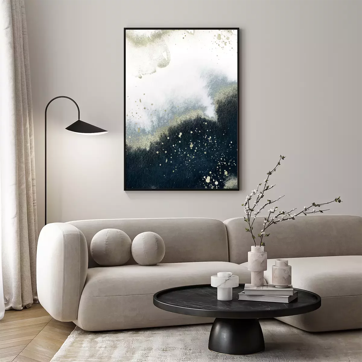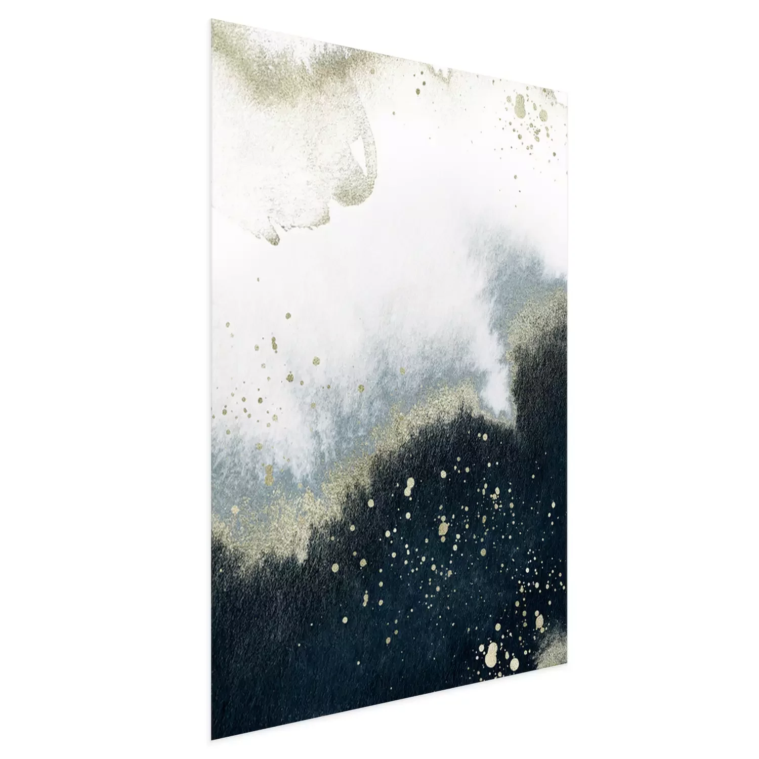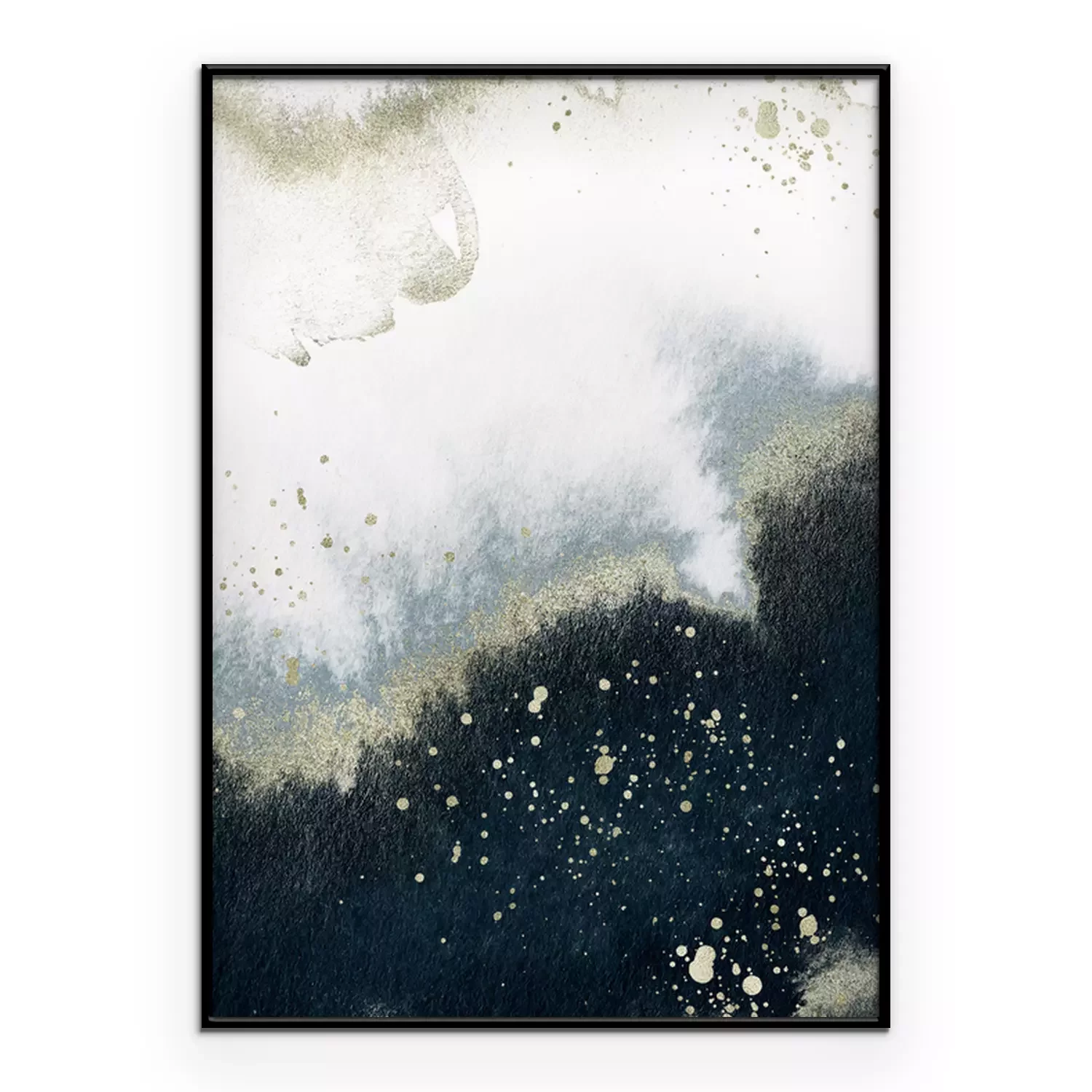 Poster  Conception de texture aquarelle or, gris et bleu marine. Pinceau cadre / bordure. Art moderne chatoyant. Illustration.
