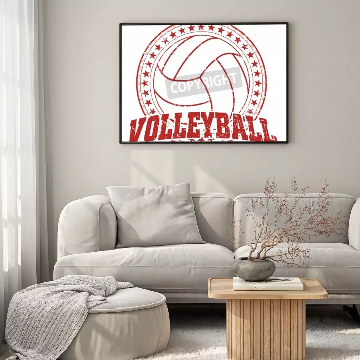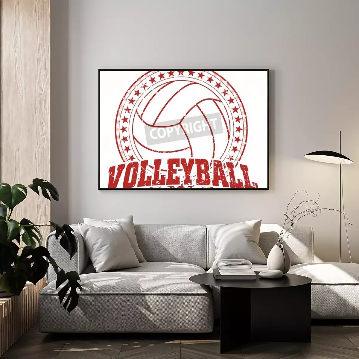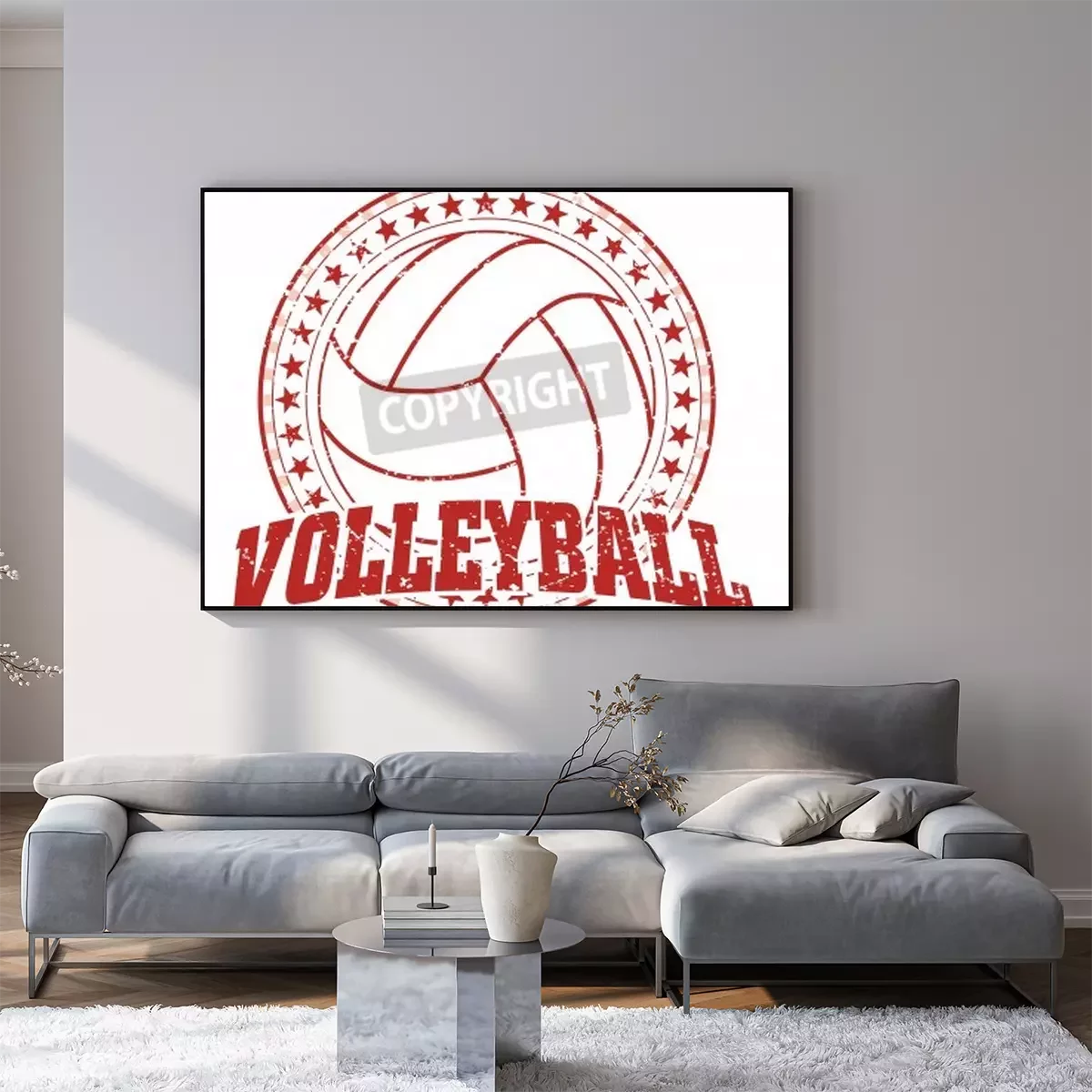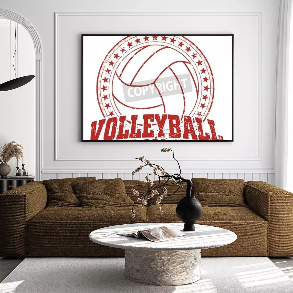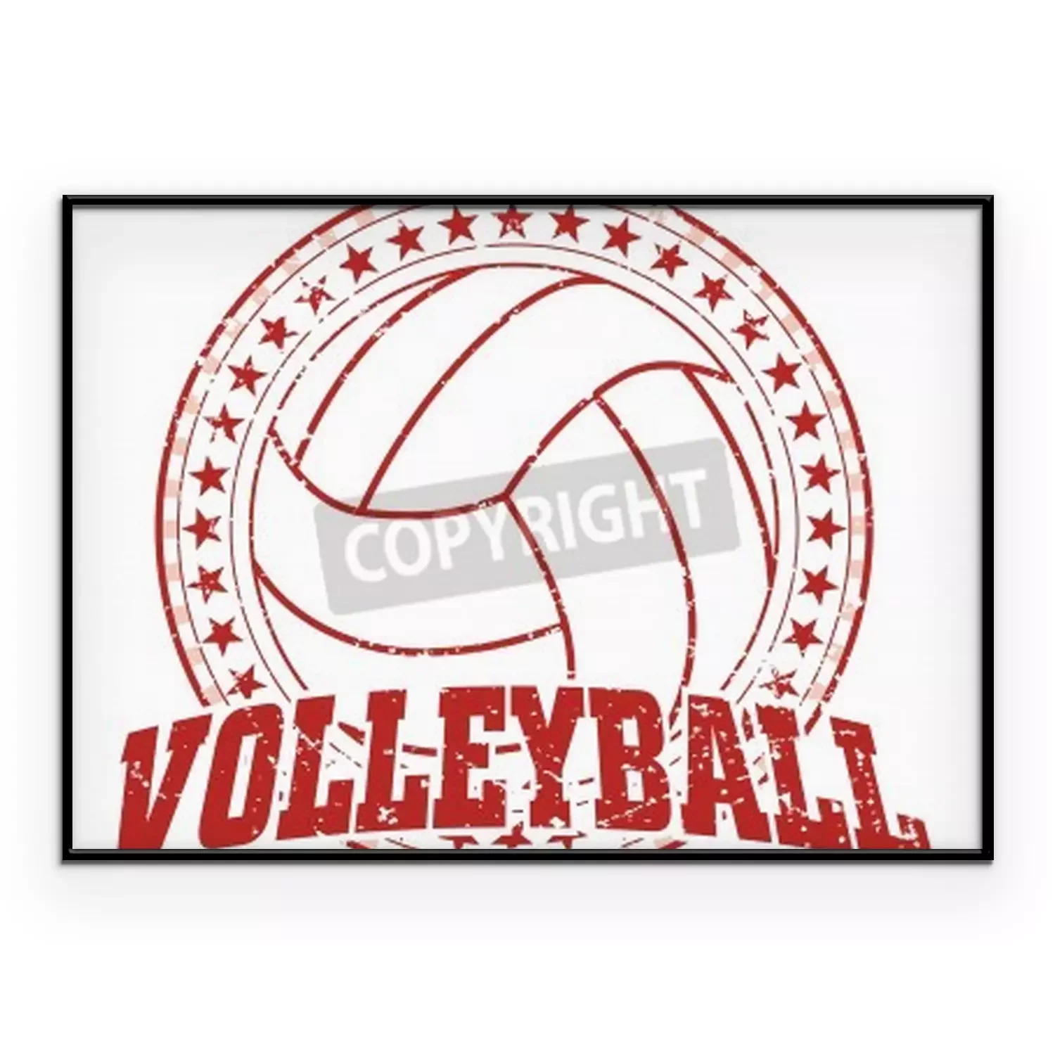 Poster  Conception de volleyball - Vintage est une illustration d'une conception de volley-ball dans le style vintage affligé avec un cercle d'étoiles.