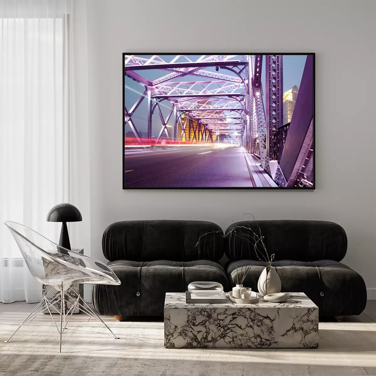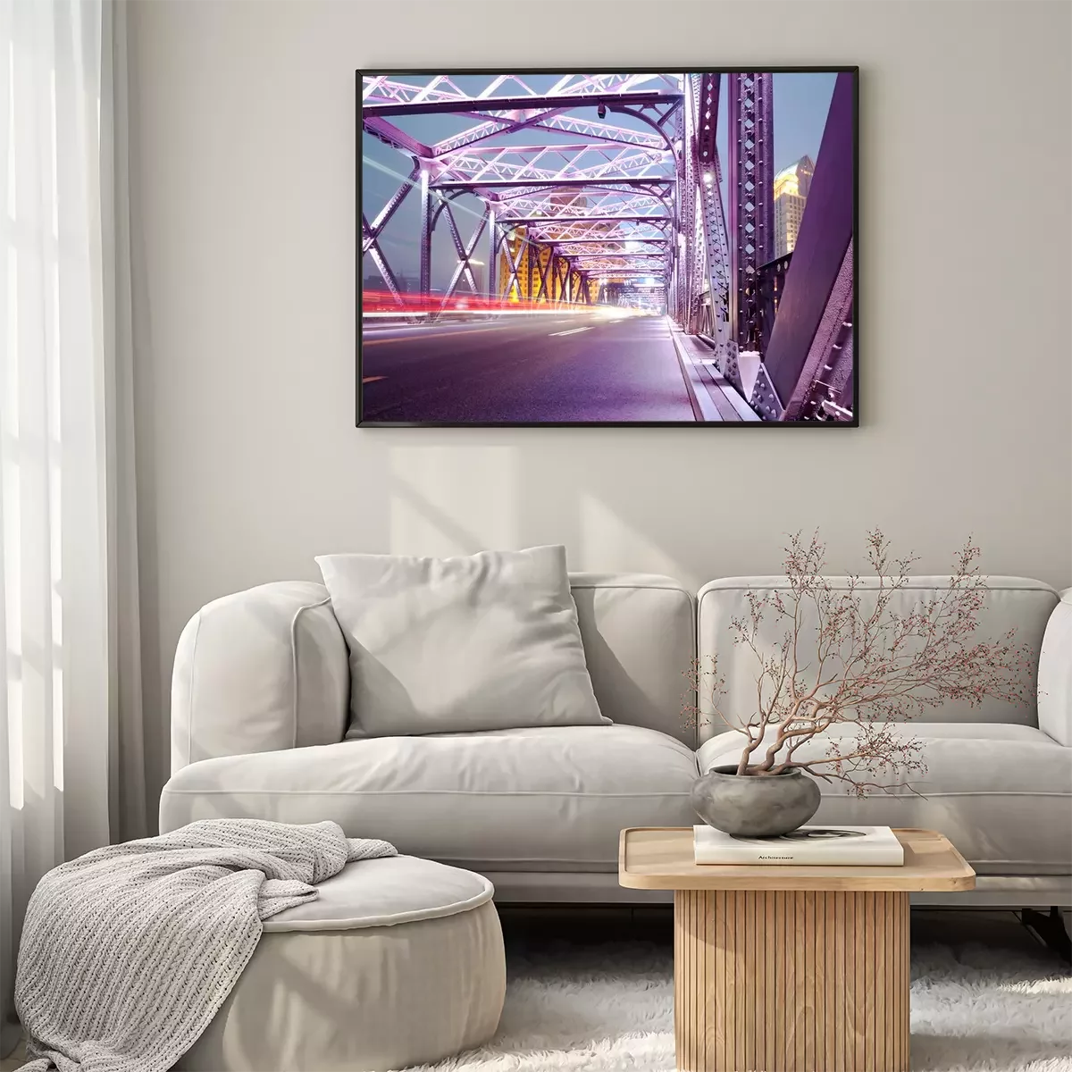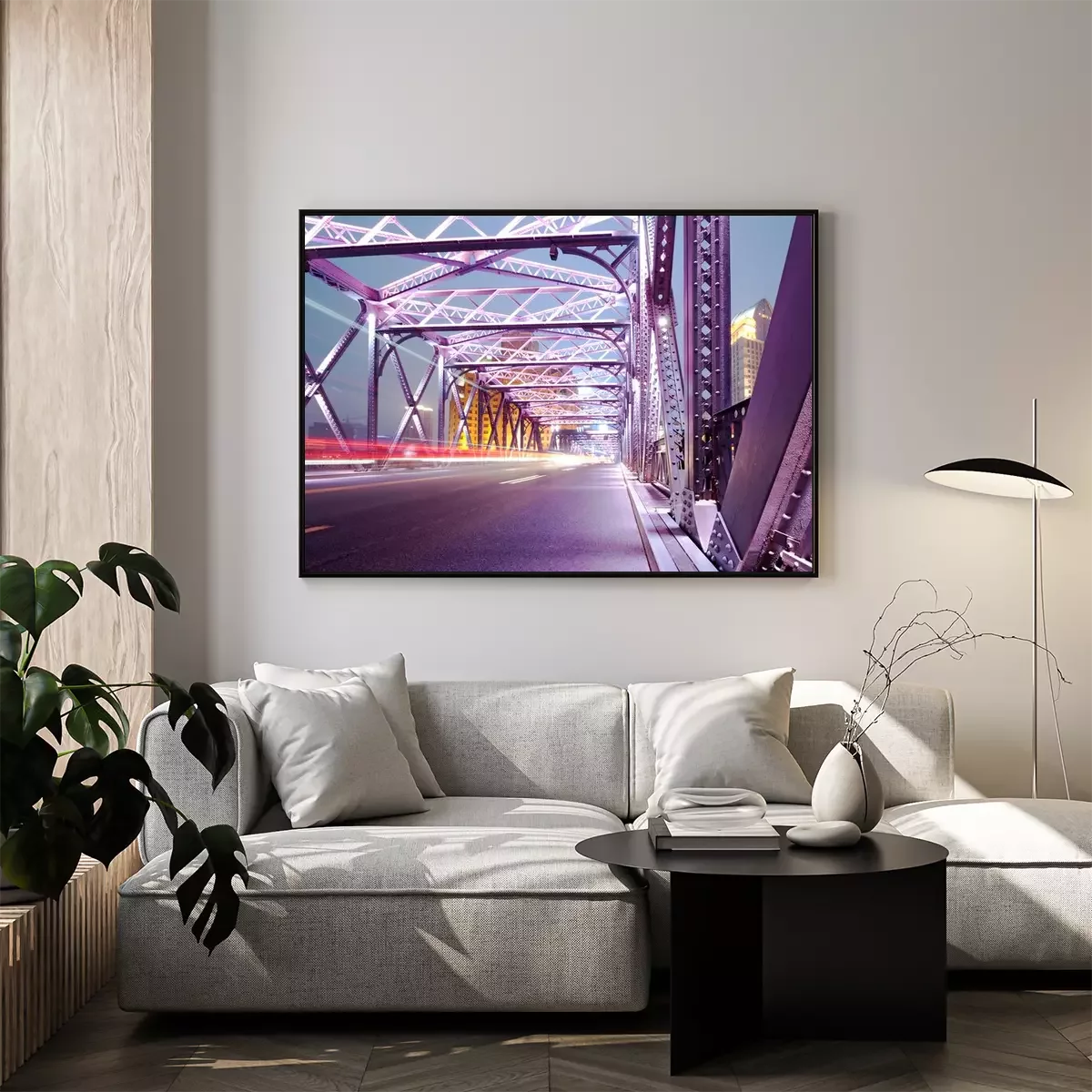 Poster : Construction éclairée d'un pont moderne