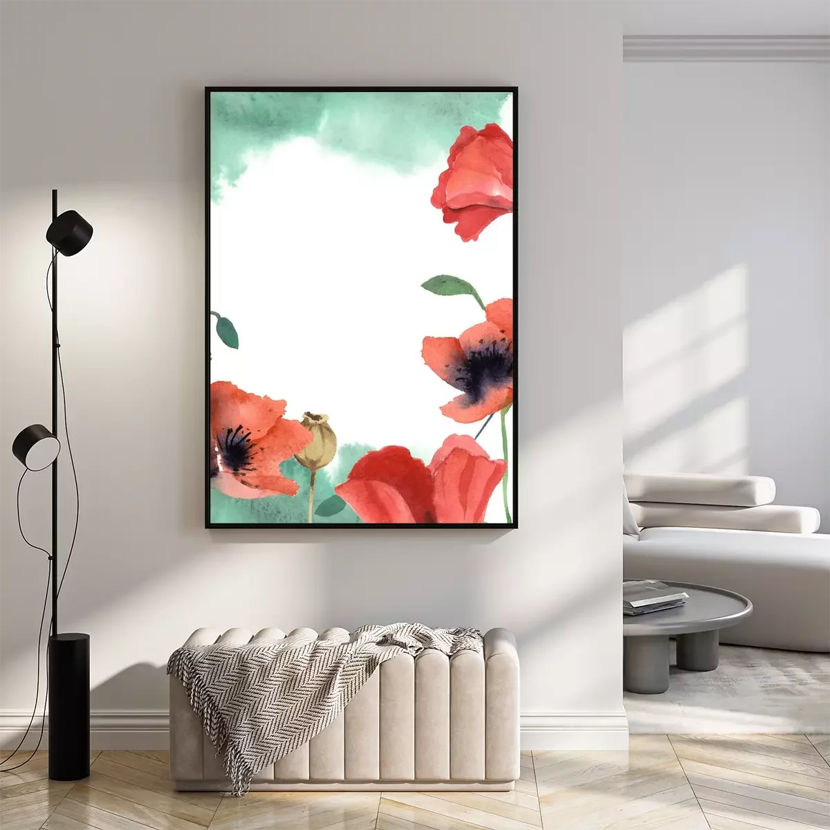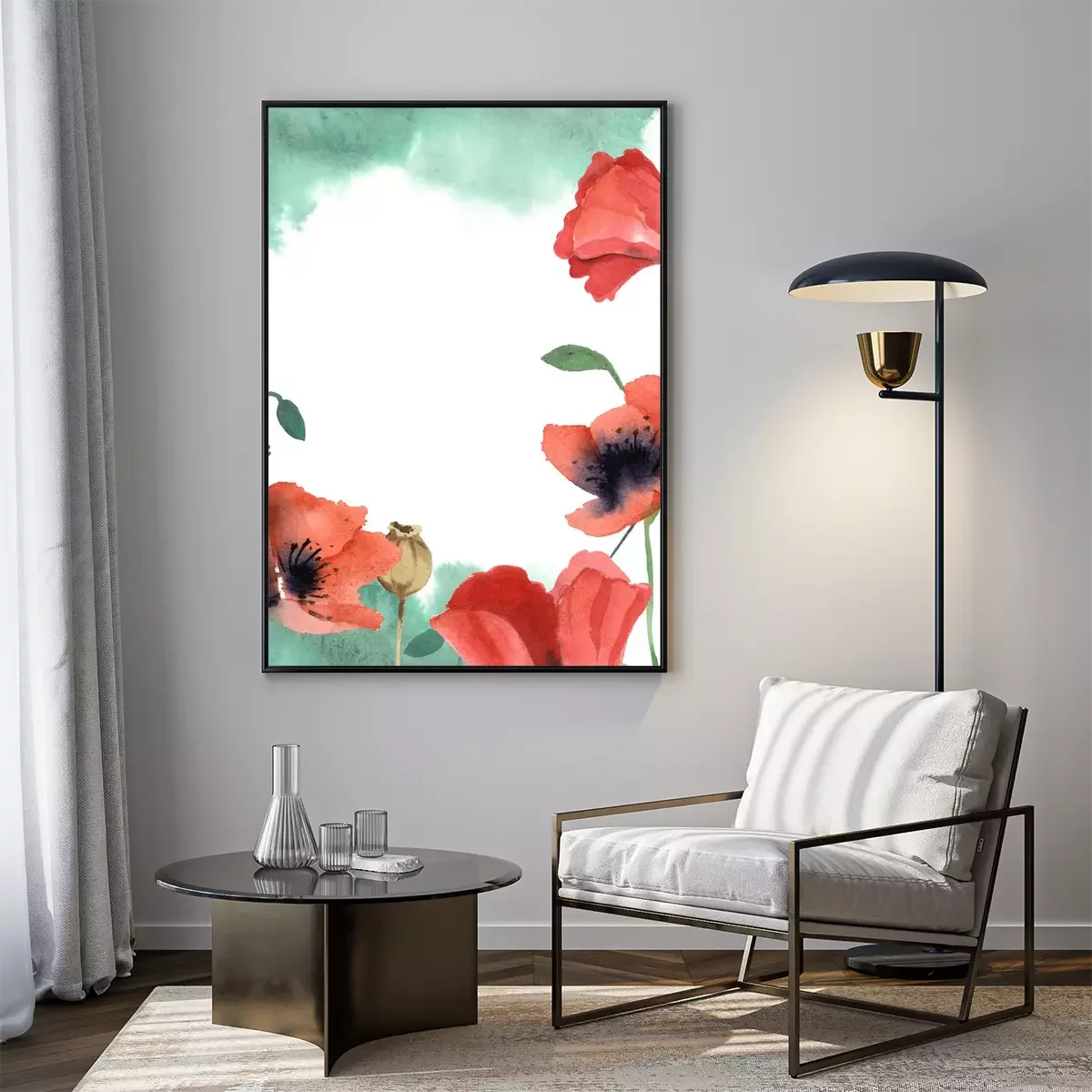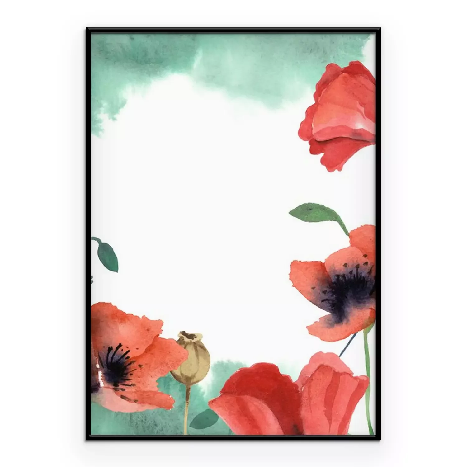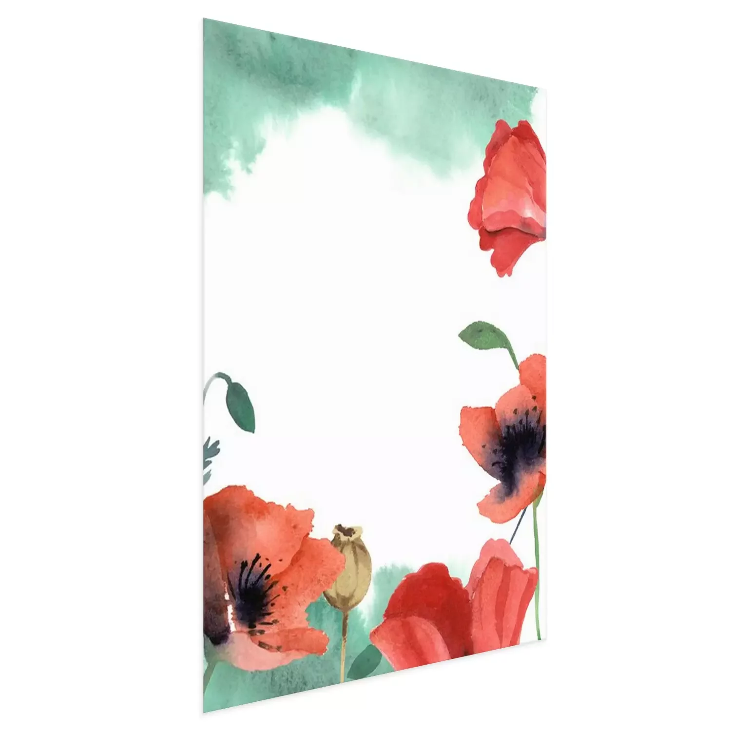 Poster : Coquelicots aquarelles et ombrage vert