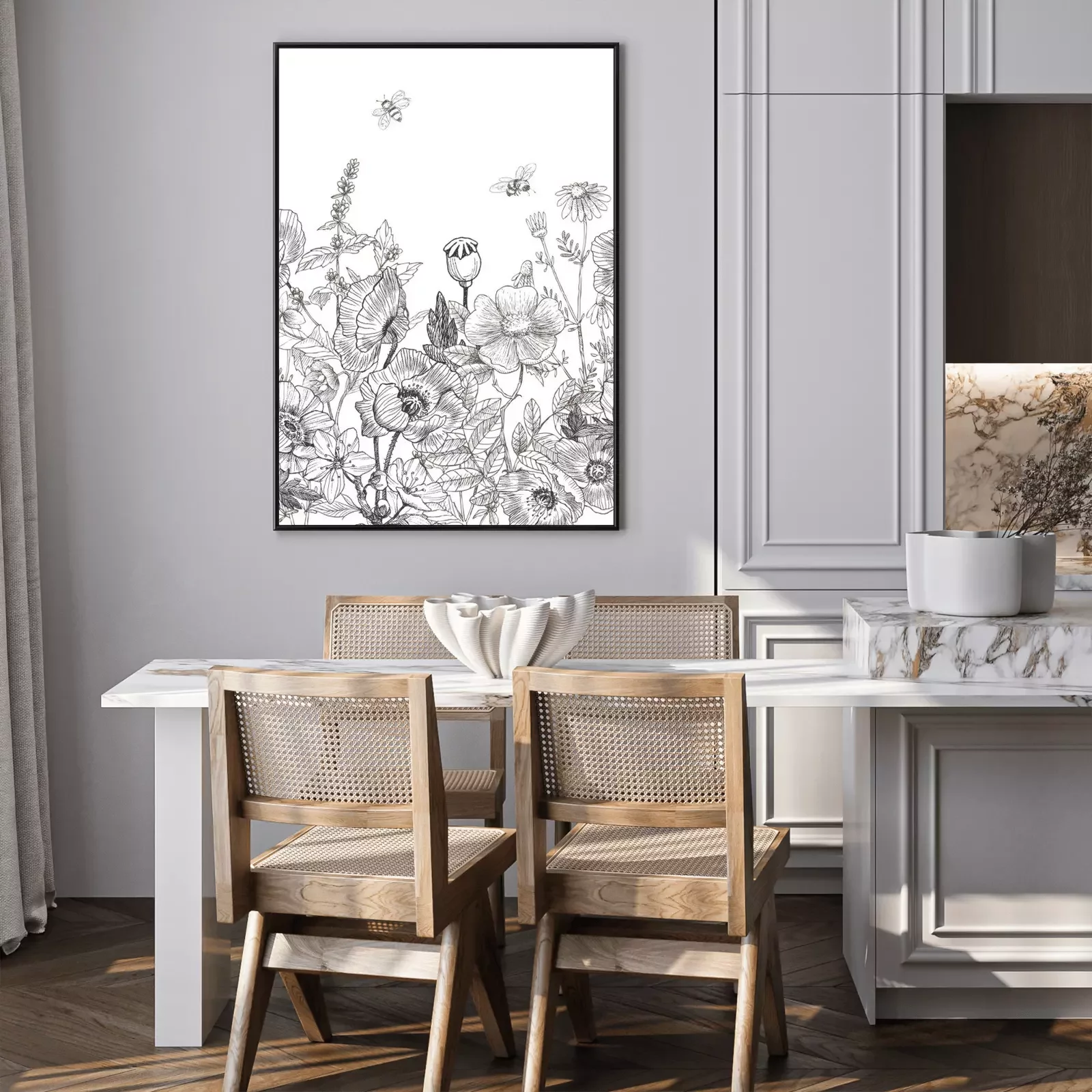 Poster : Coquelicots et fleurs dans le pré dans le style d'art en ligne