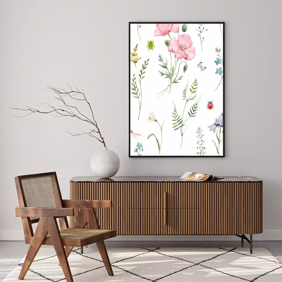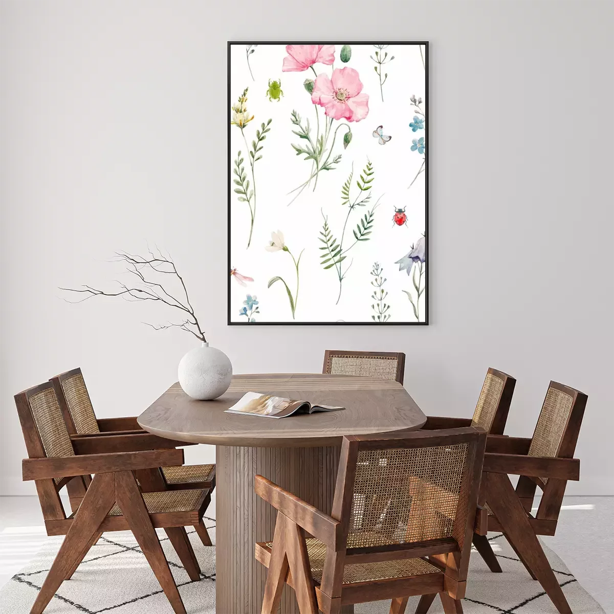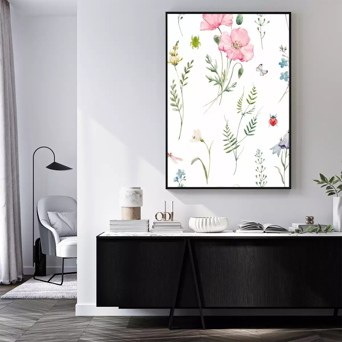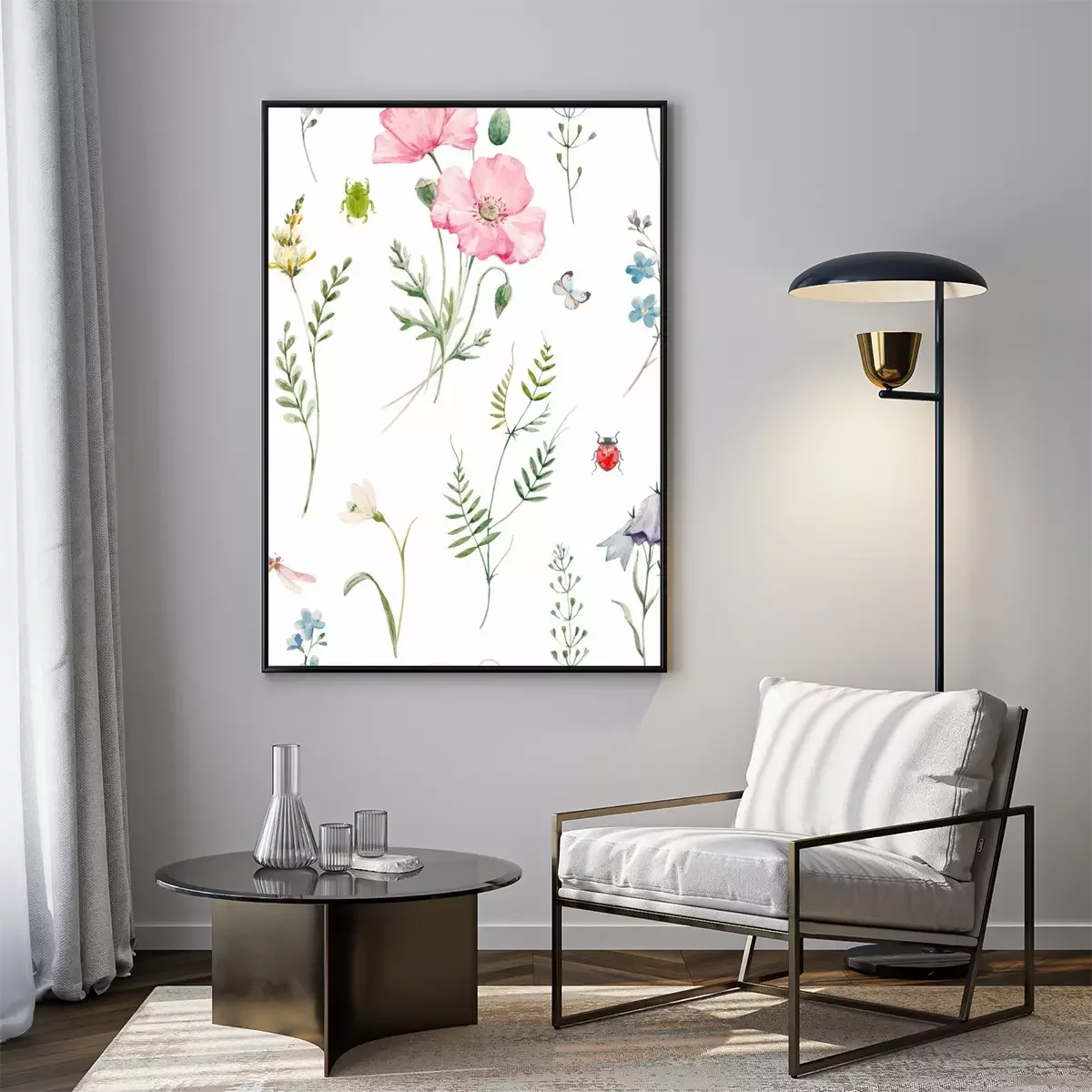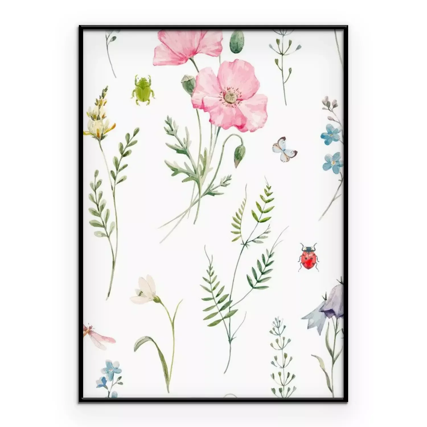 Poster  Coquelicots poudrés accompagnés de plantes