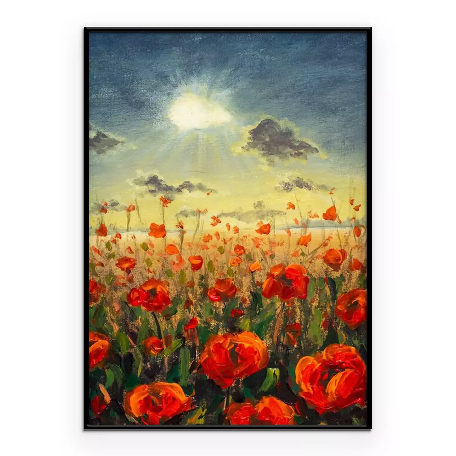 Poster  Coquelicots rouges sous un ciel bleu foncé