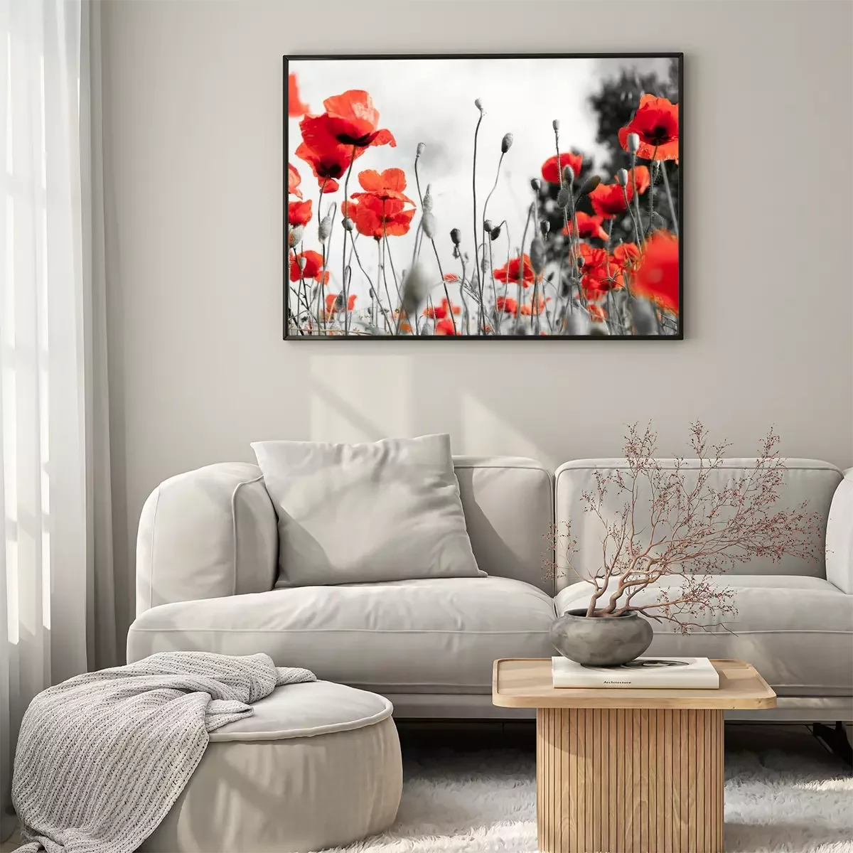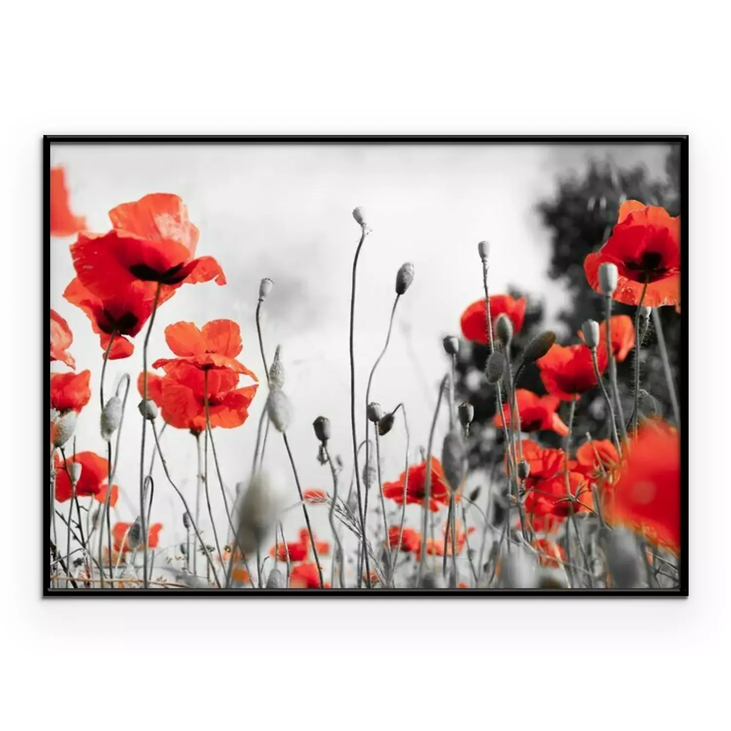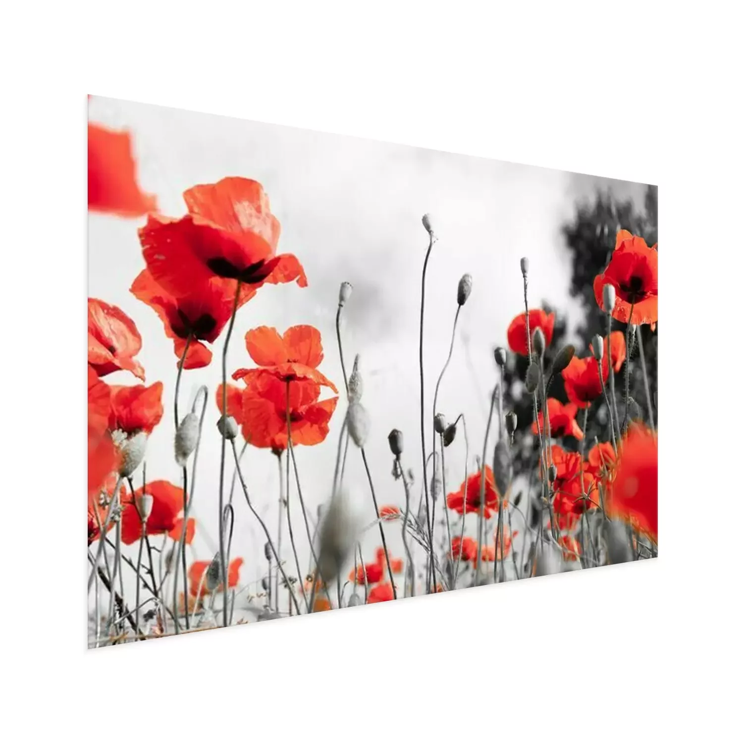 Poster : Coquelicots rouges sur le fond d'un pré noir et blanc