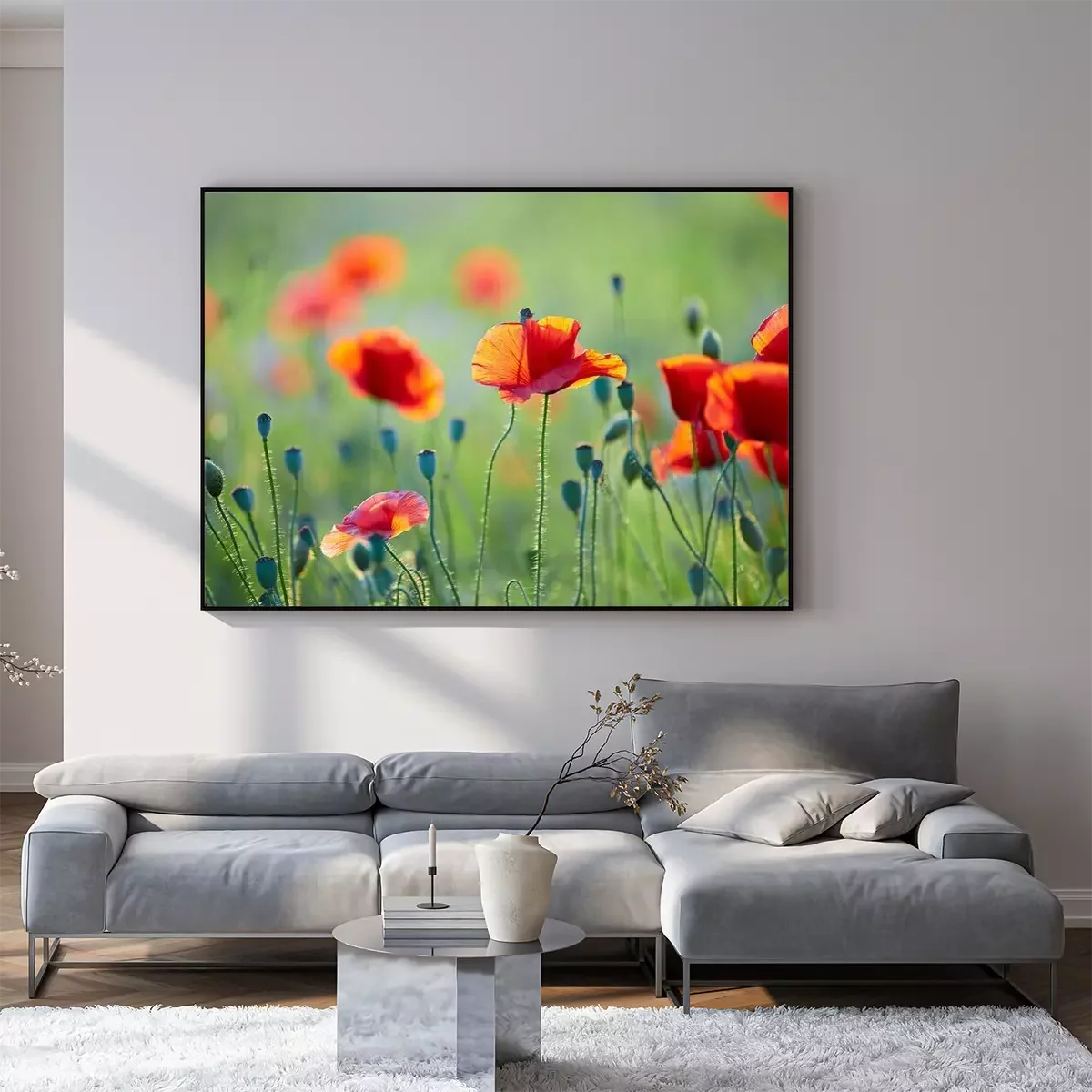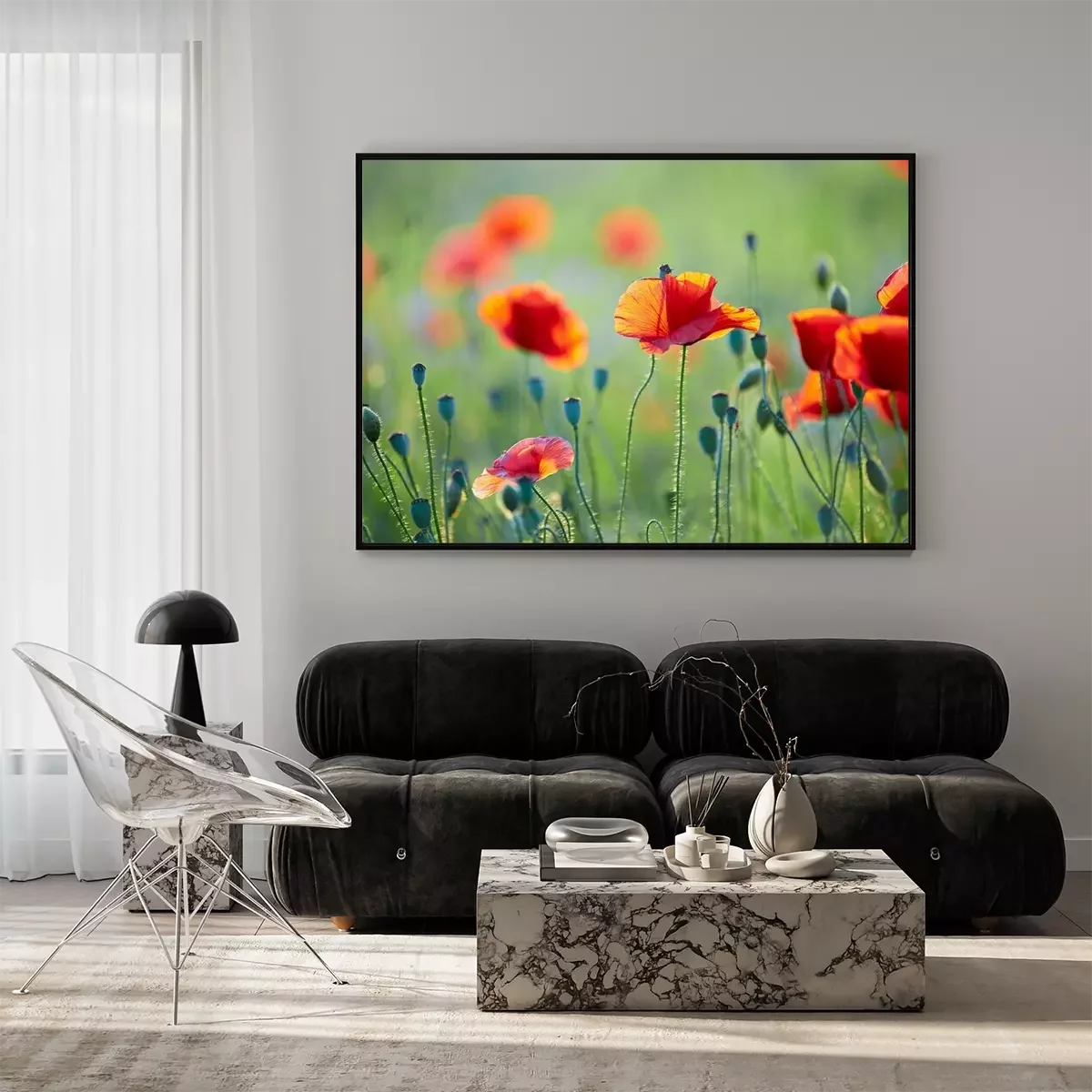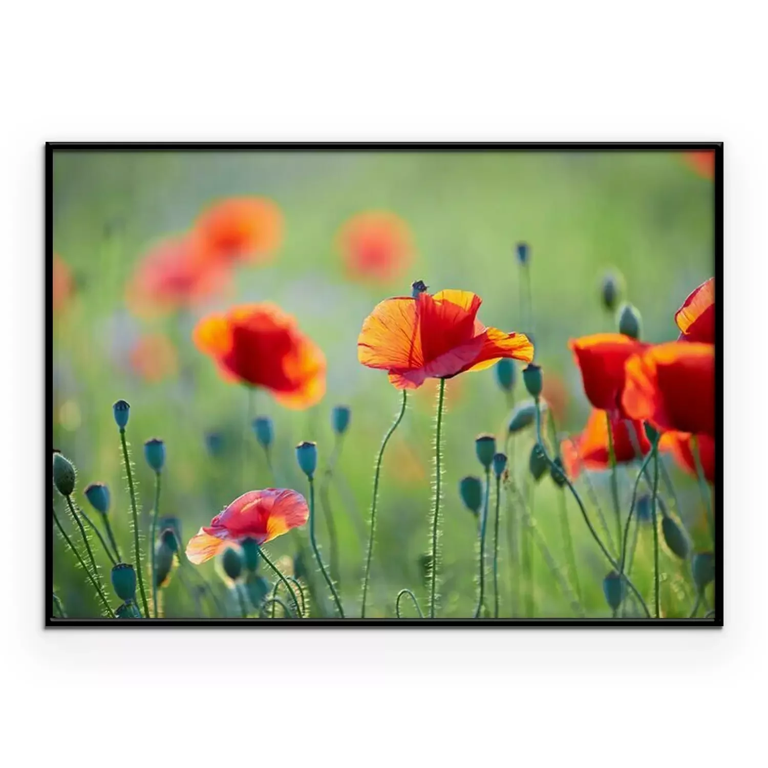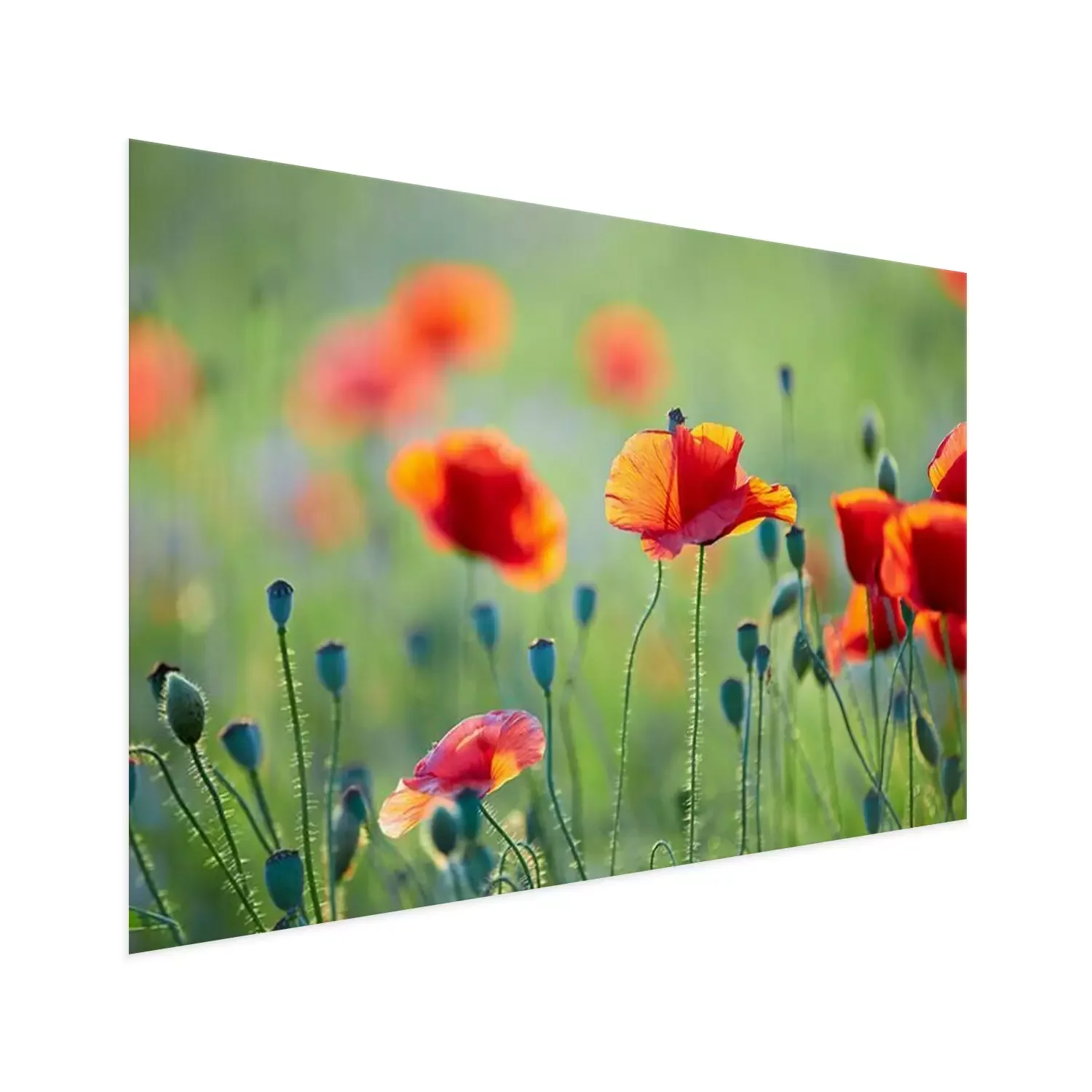 Poster : Coquelicots sauvages au soleil sur fond flou