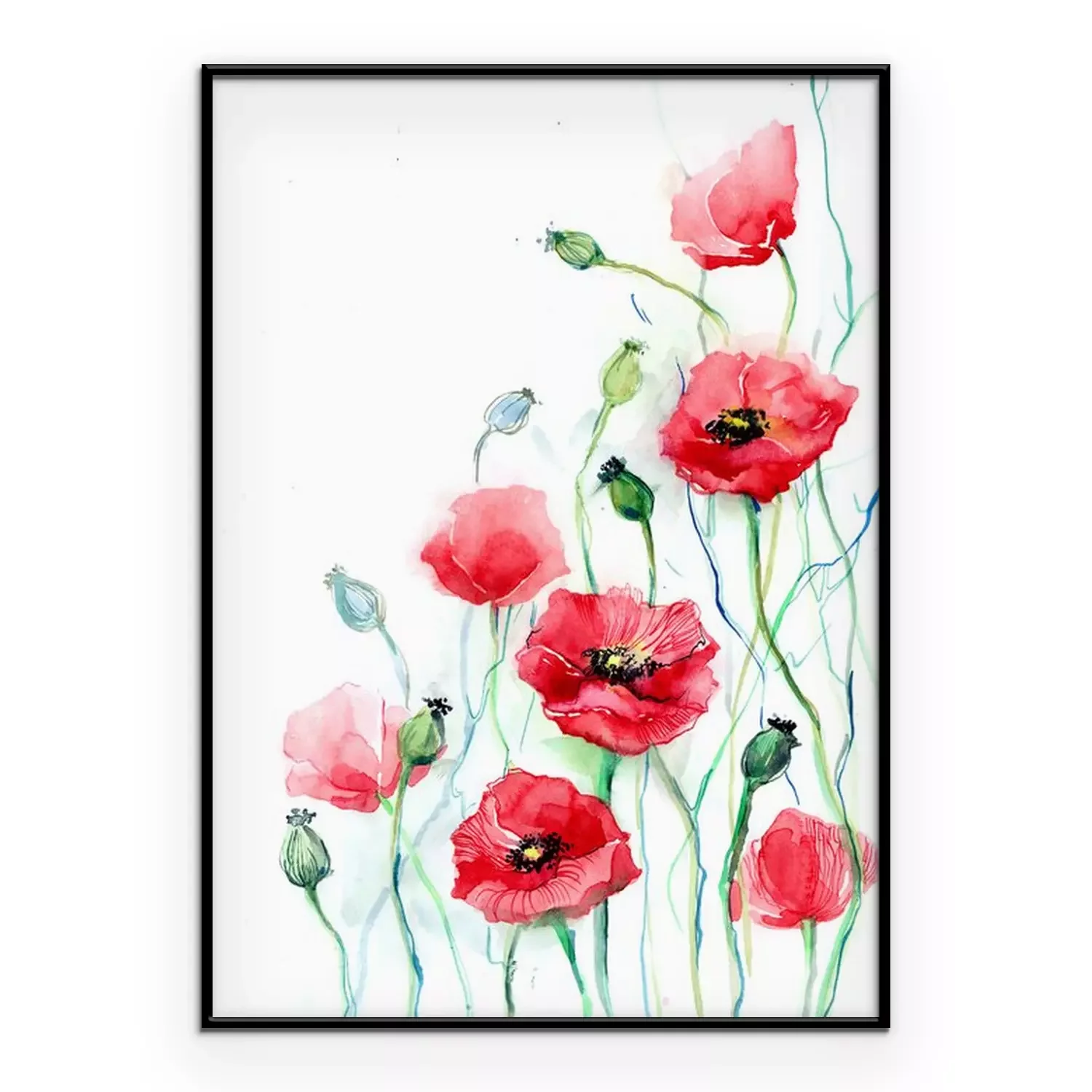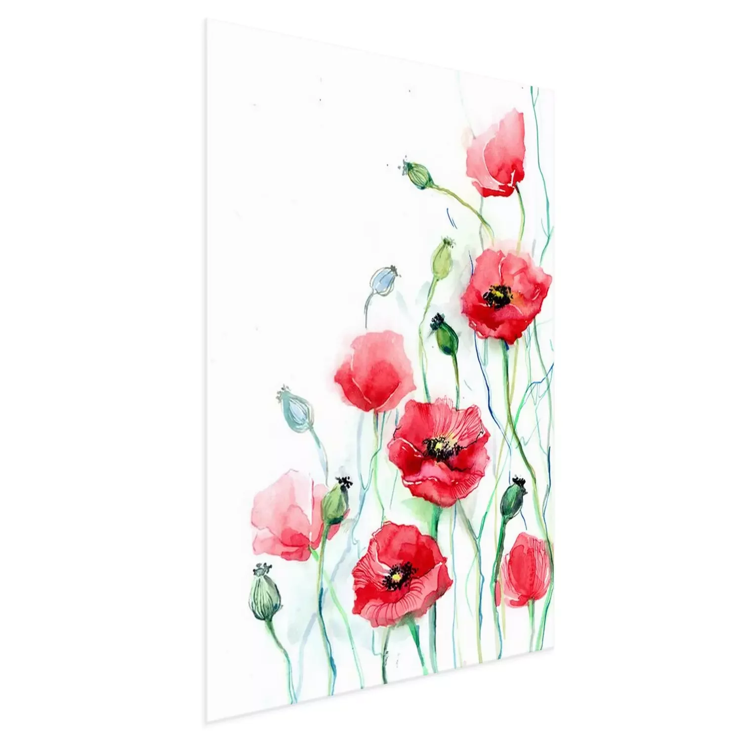 Poster : Coquelicots sur fond blanc avec des tiges bleues