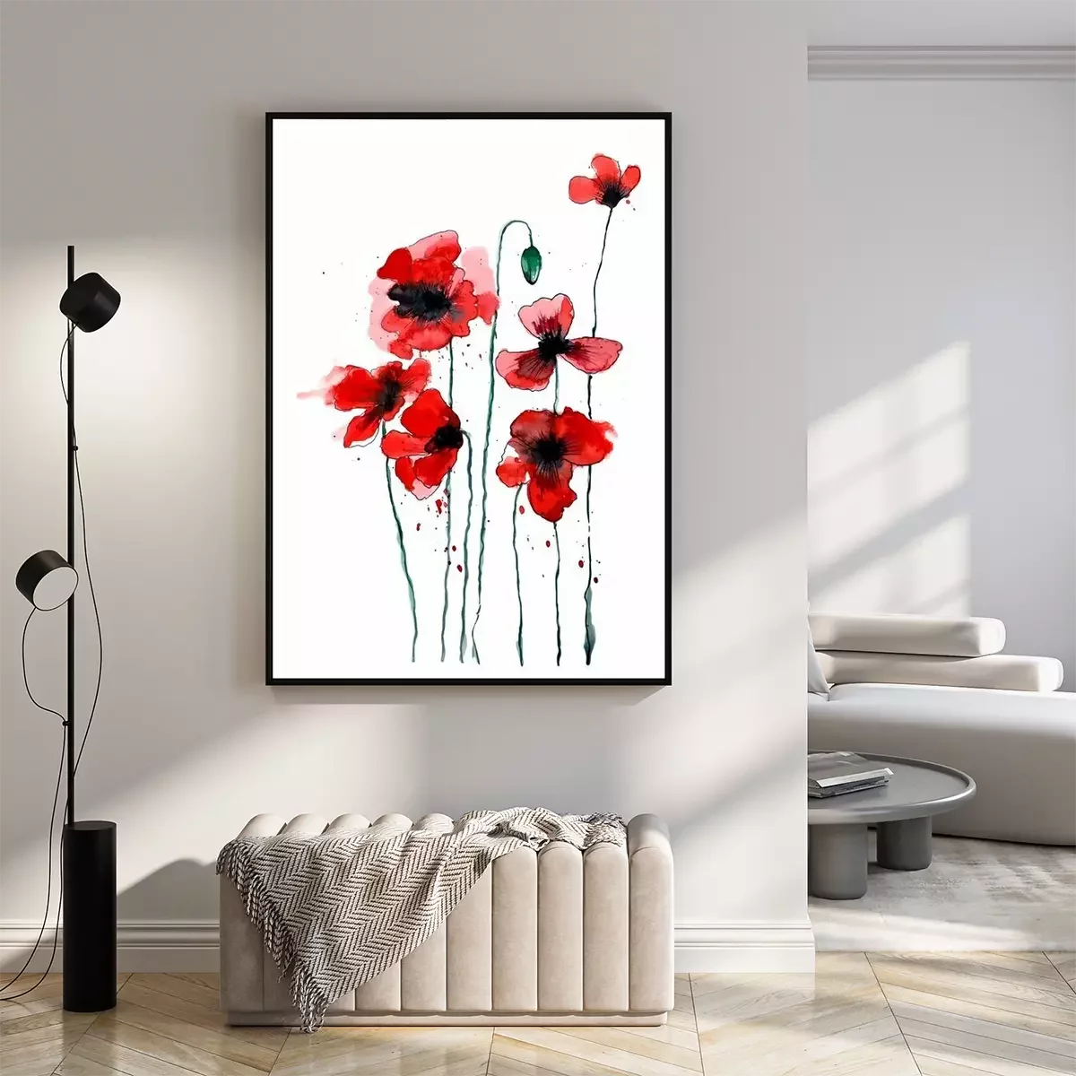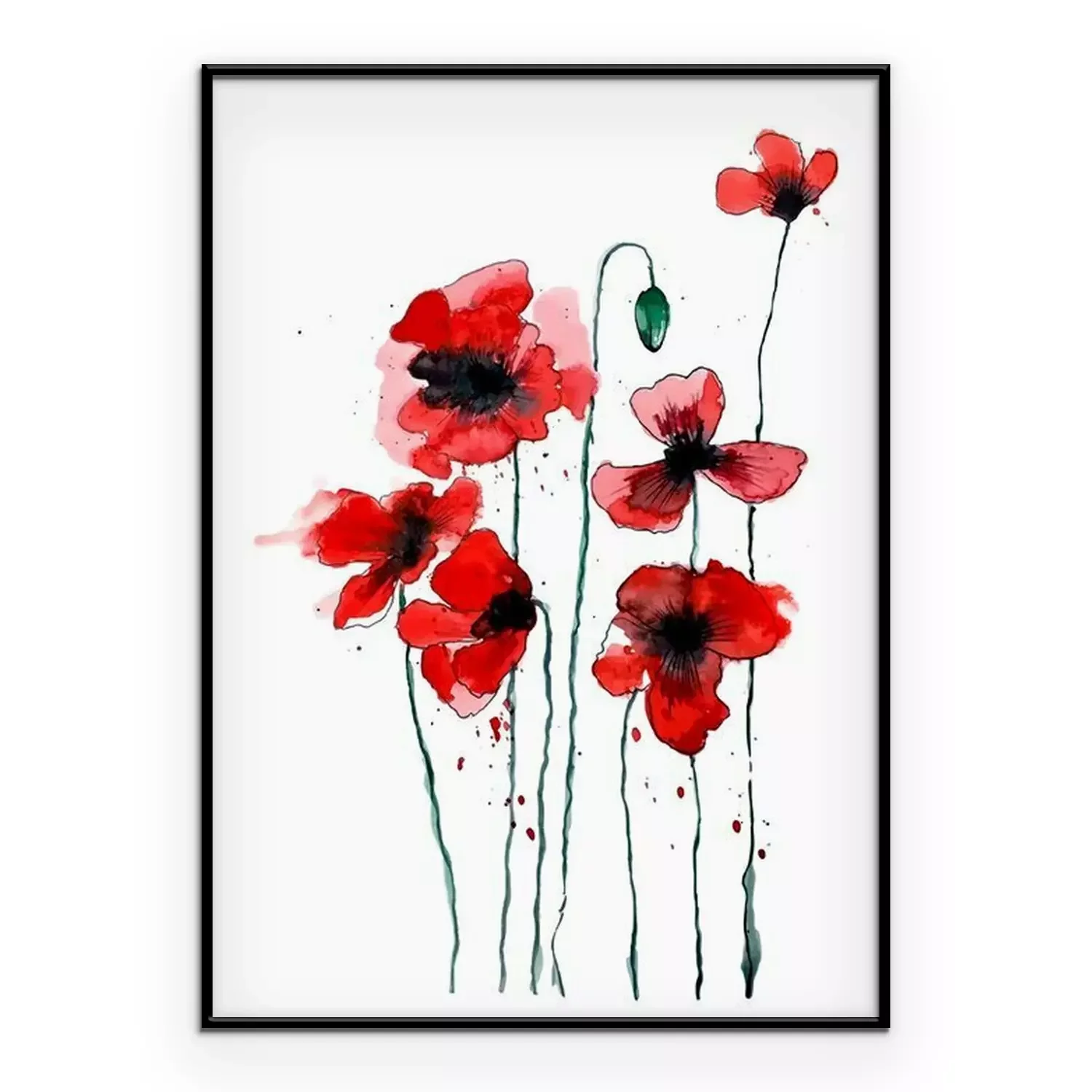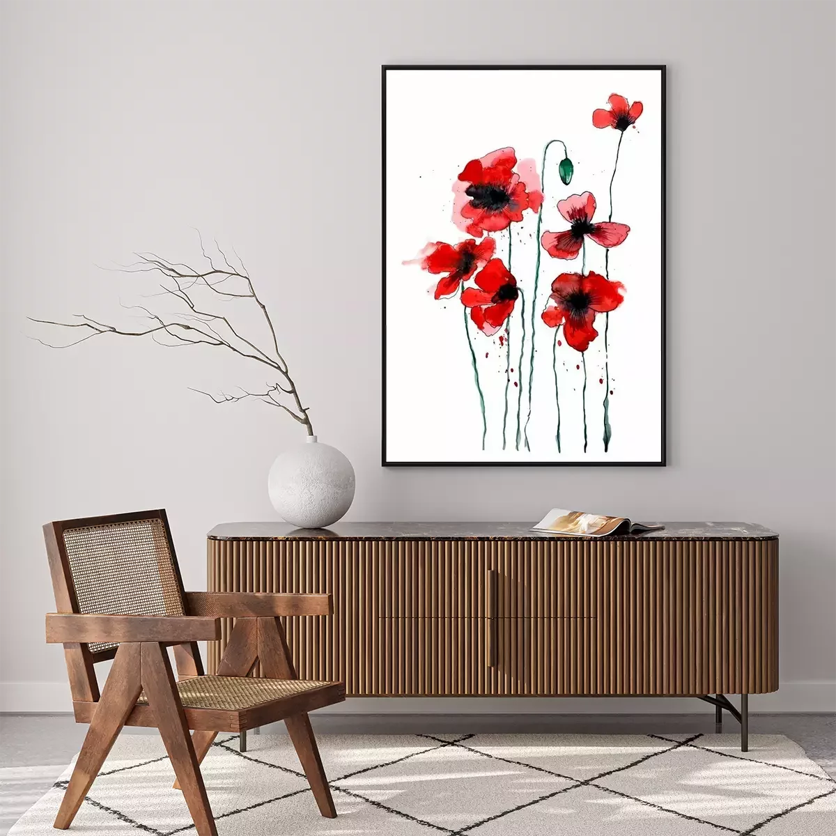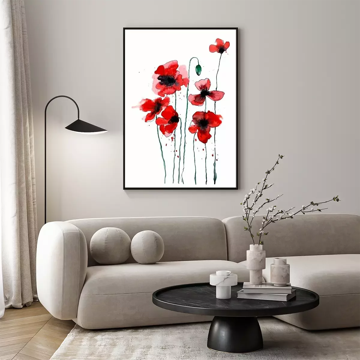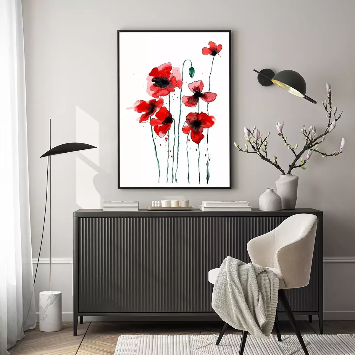 Poster  Coquelicots sur une peinture à l'aquarelle de fond blanc