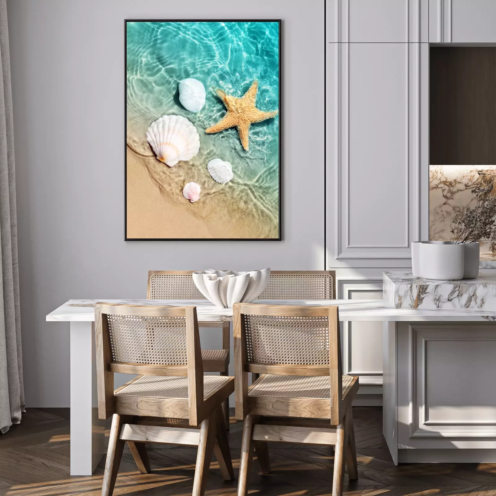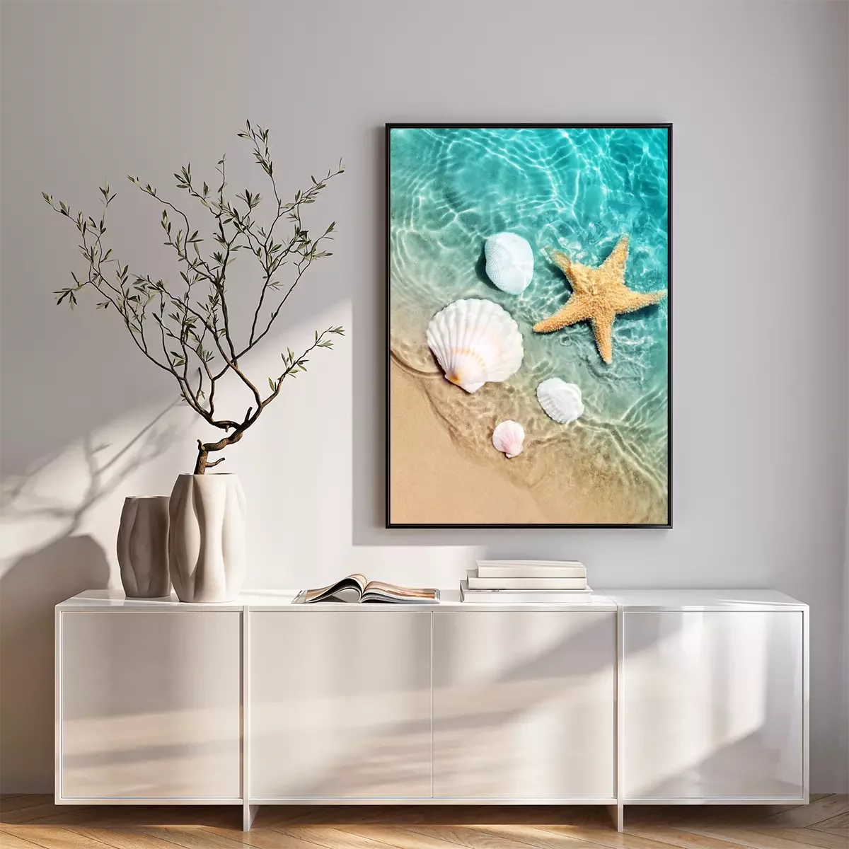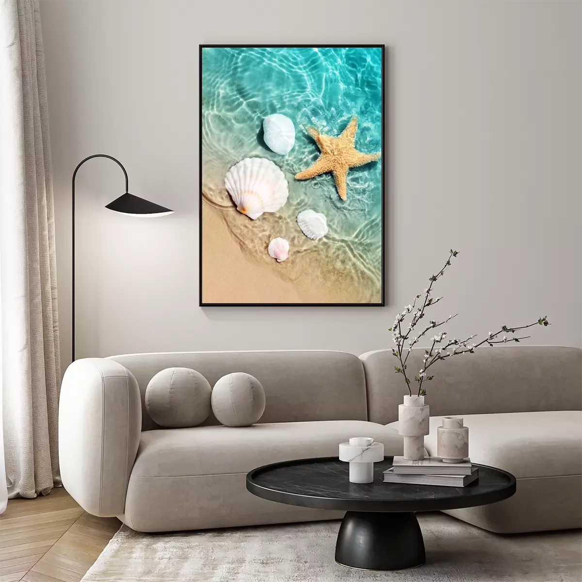 Poster : Coquillages et étoiles de mer sur la plage