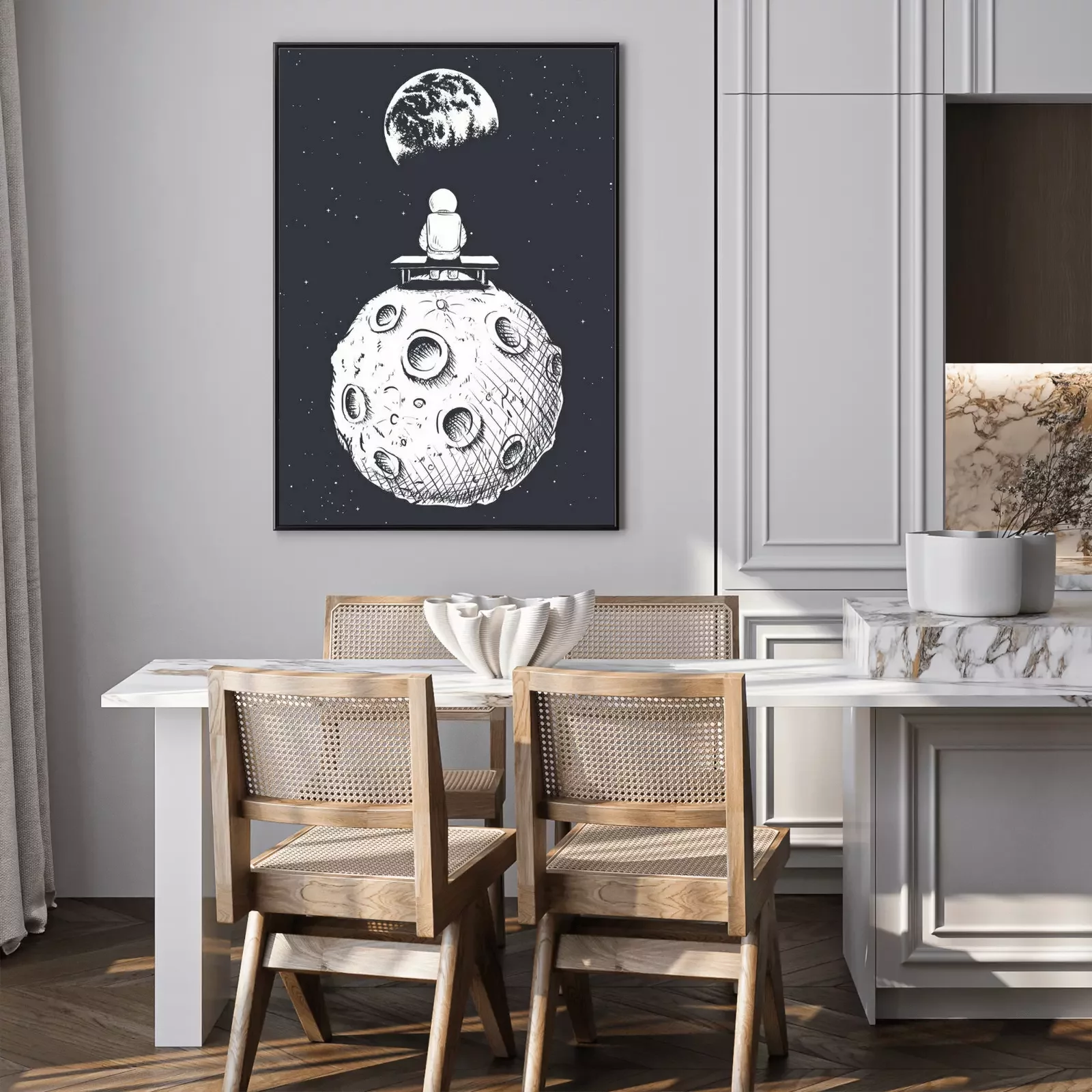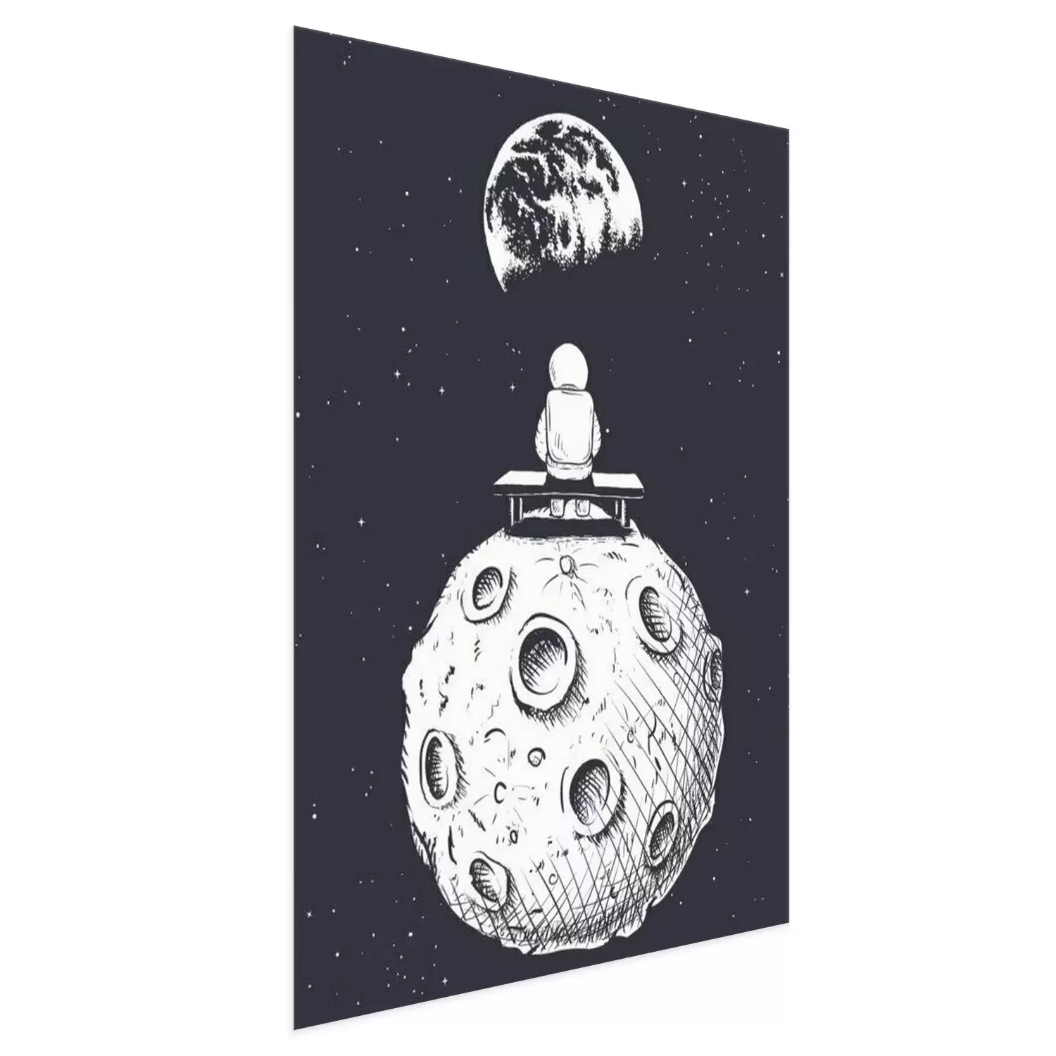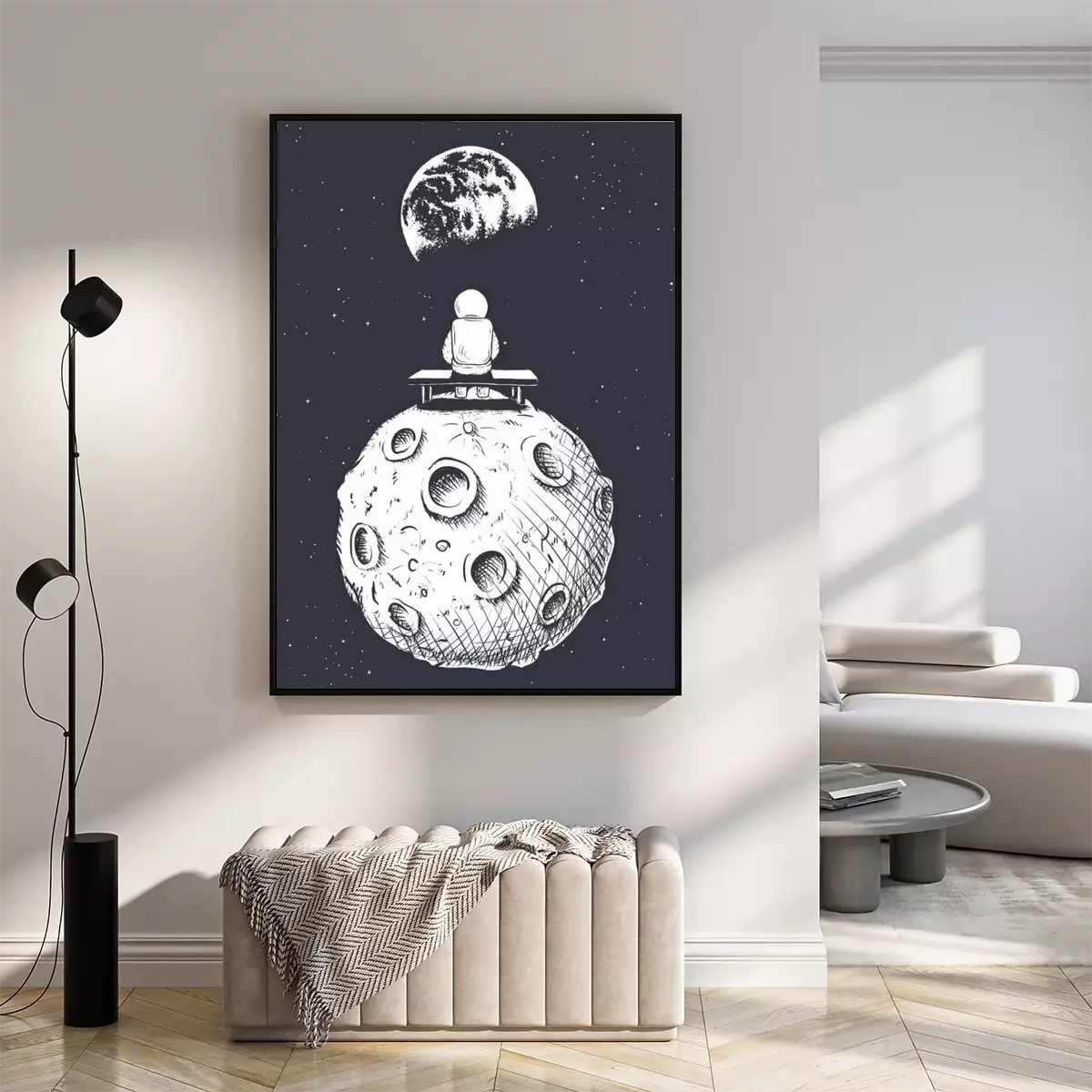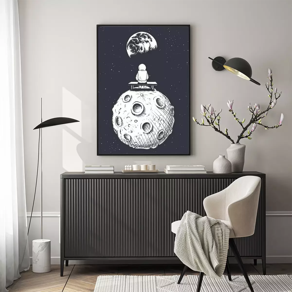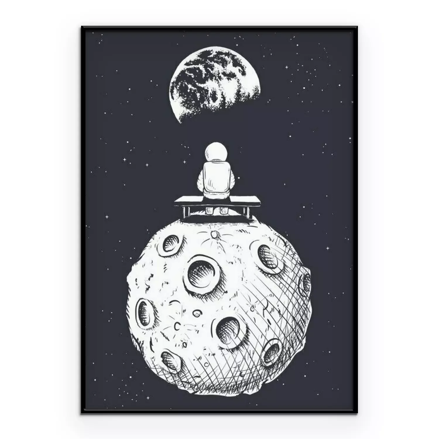 Poster  Cosmonaute assis sur un banc sur la lune regardant la Terre