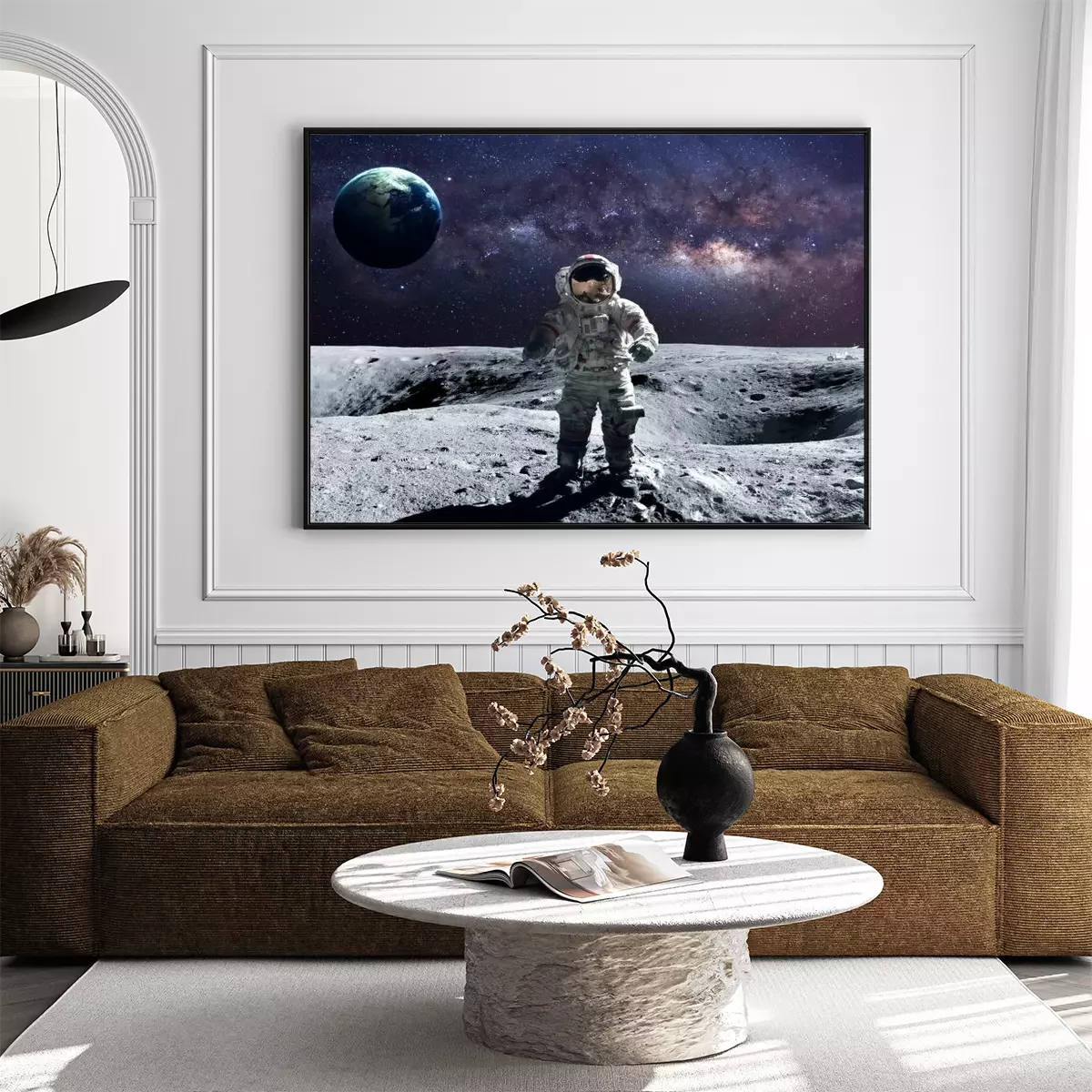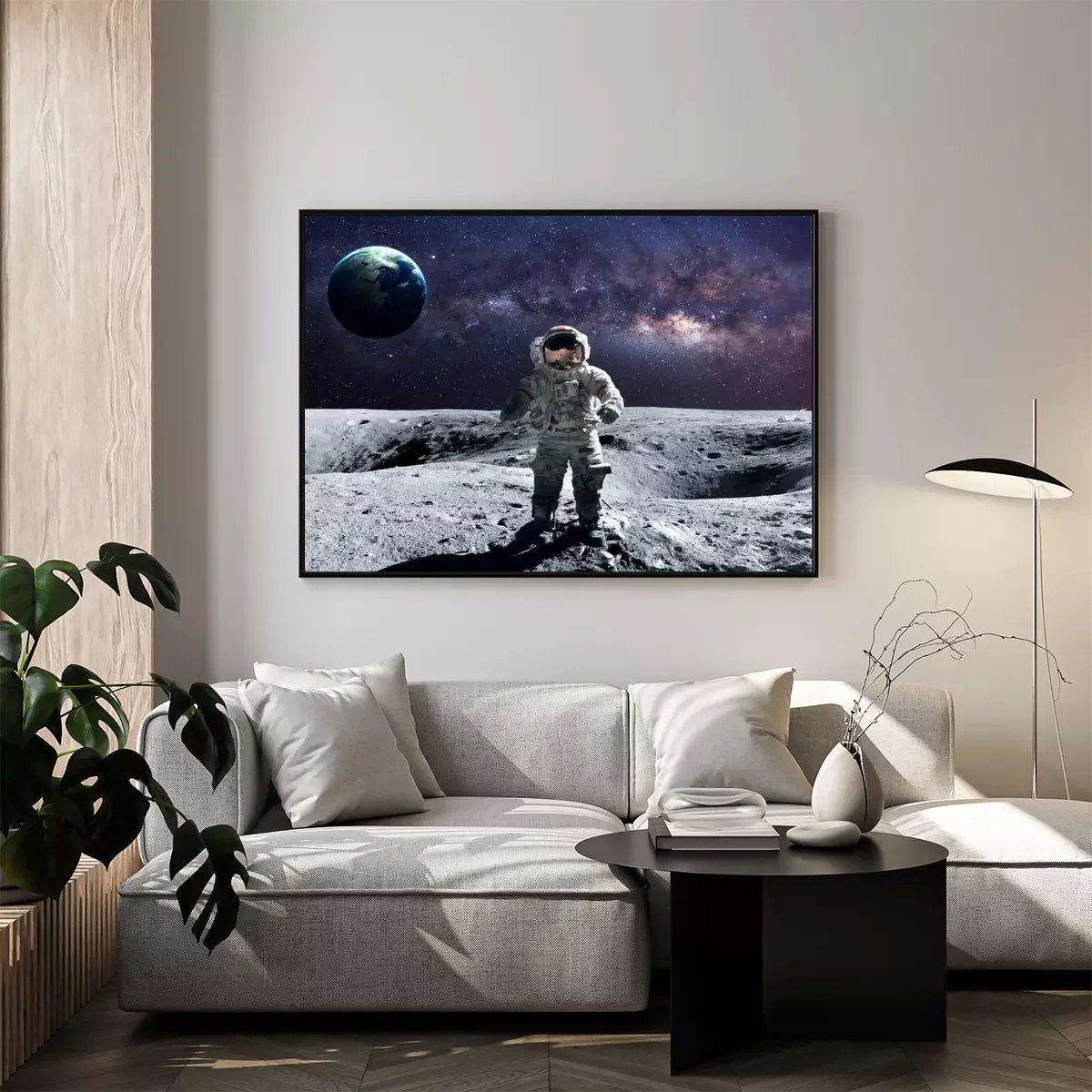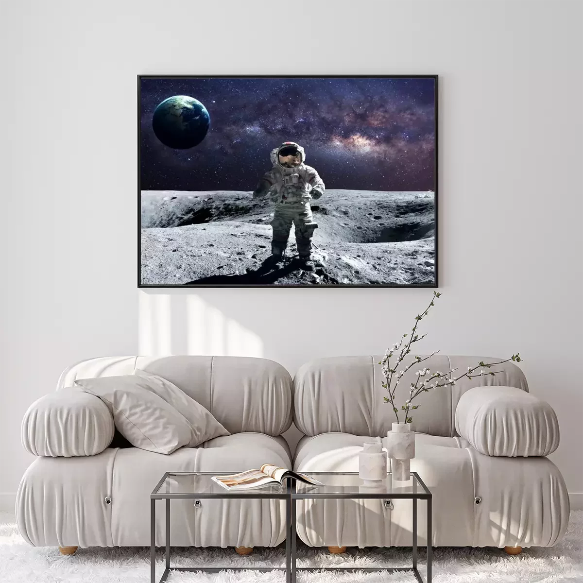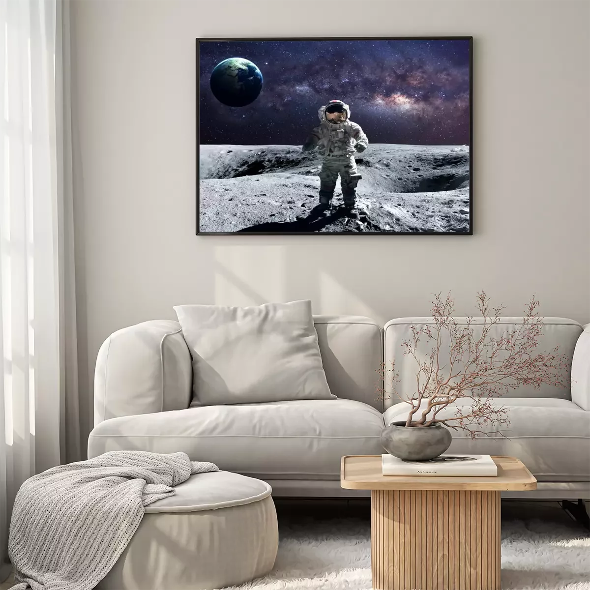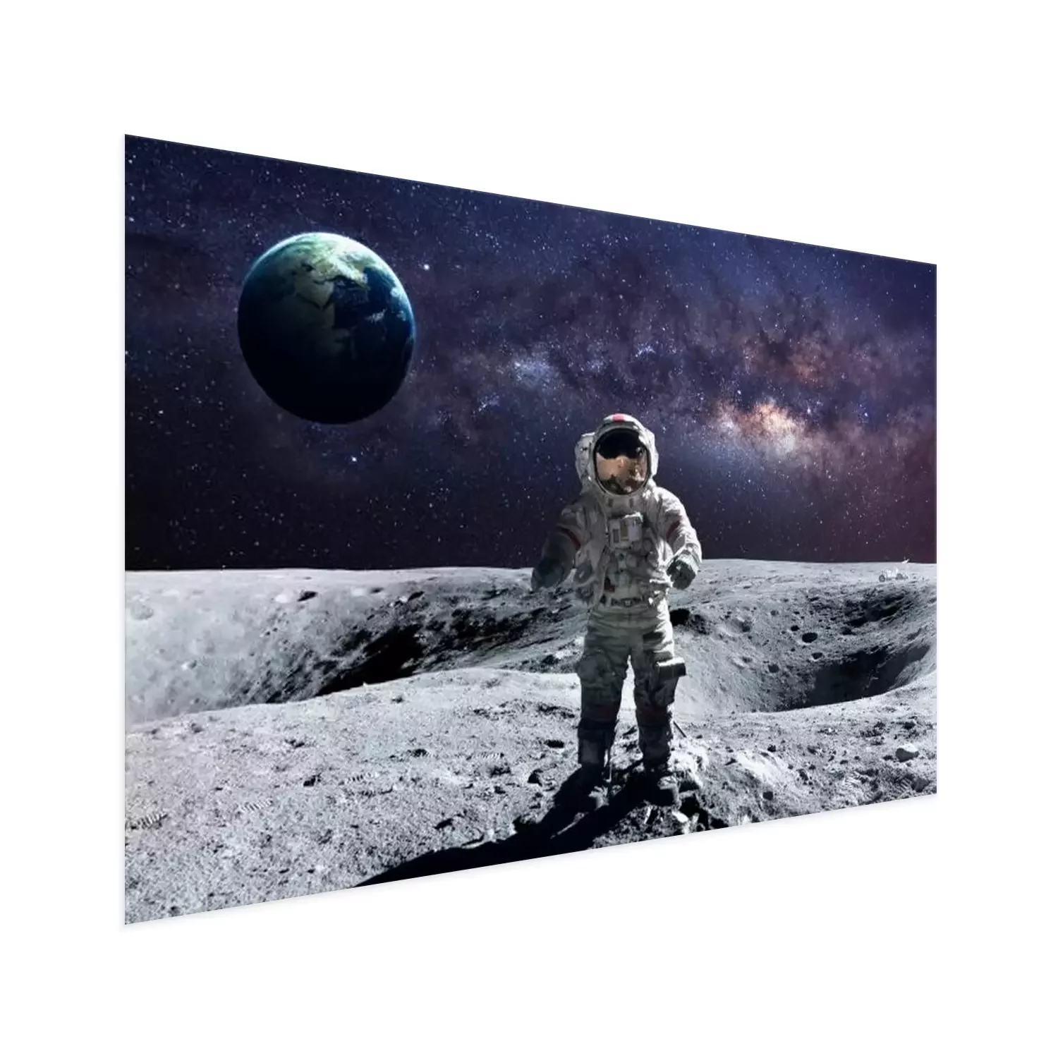 Poster  Cosmonaute sur la lune avec la Terre en arrière-plan