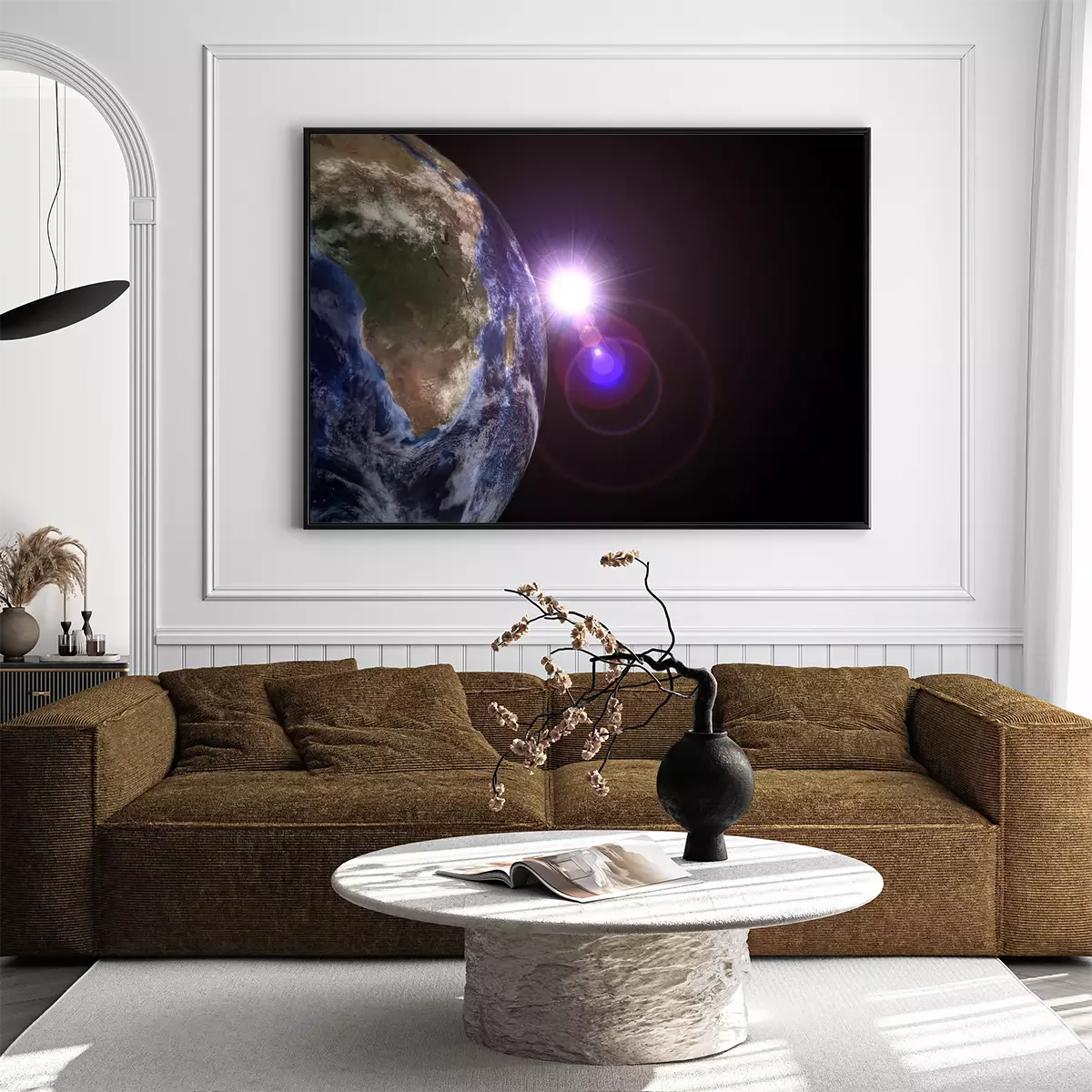 Poster  Cosmos sombre et la Terre illuminée par le soleil