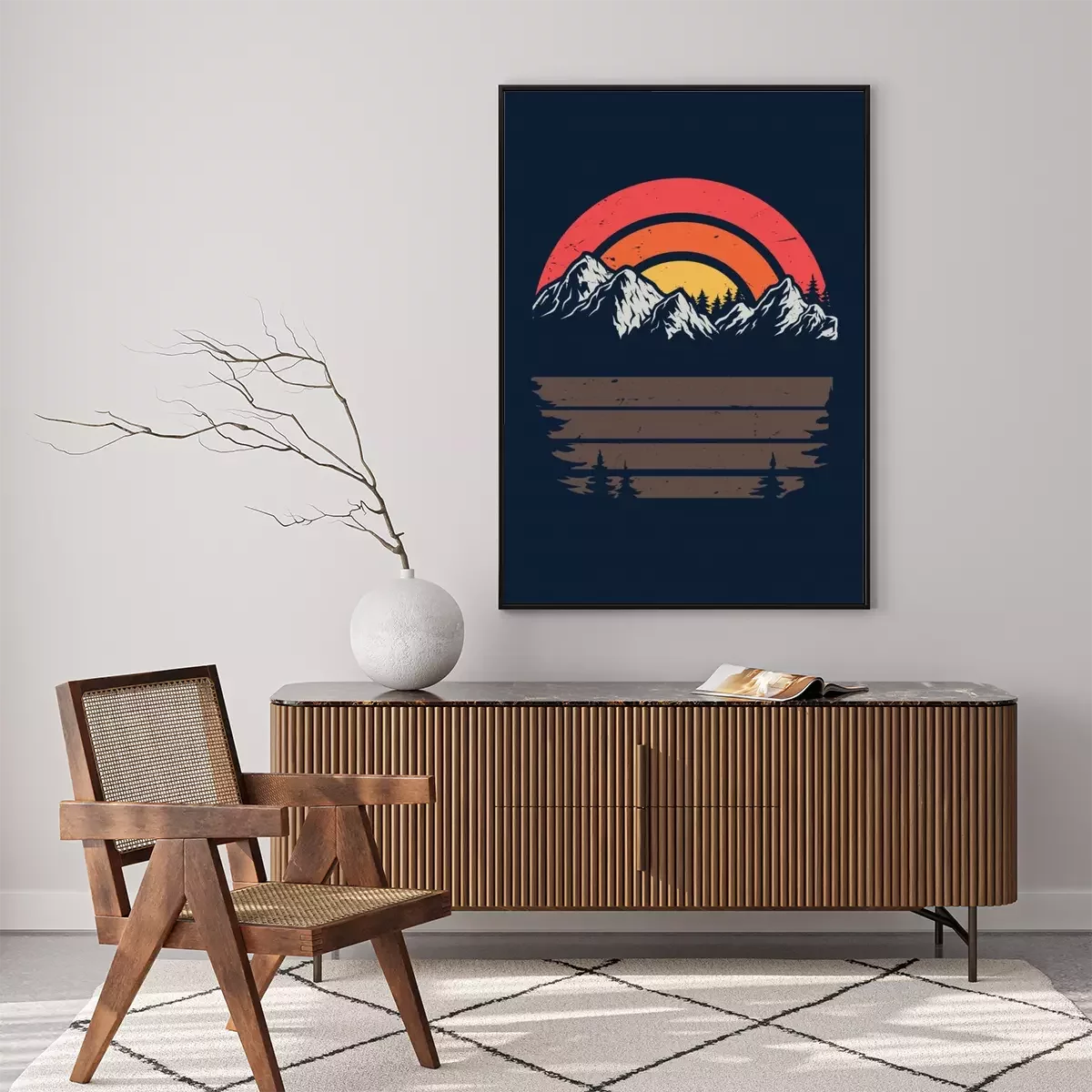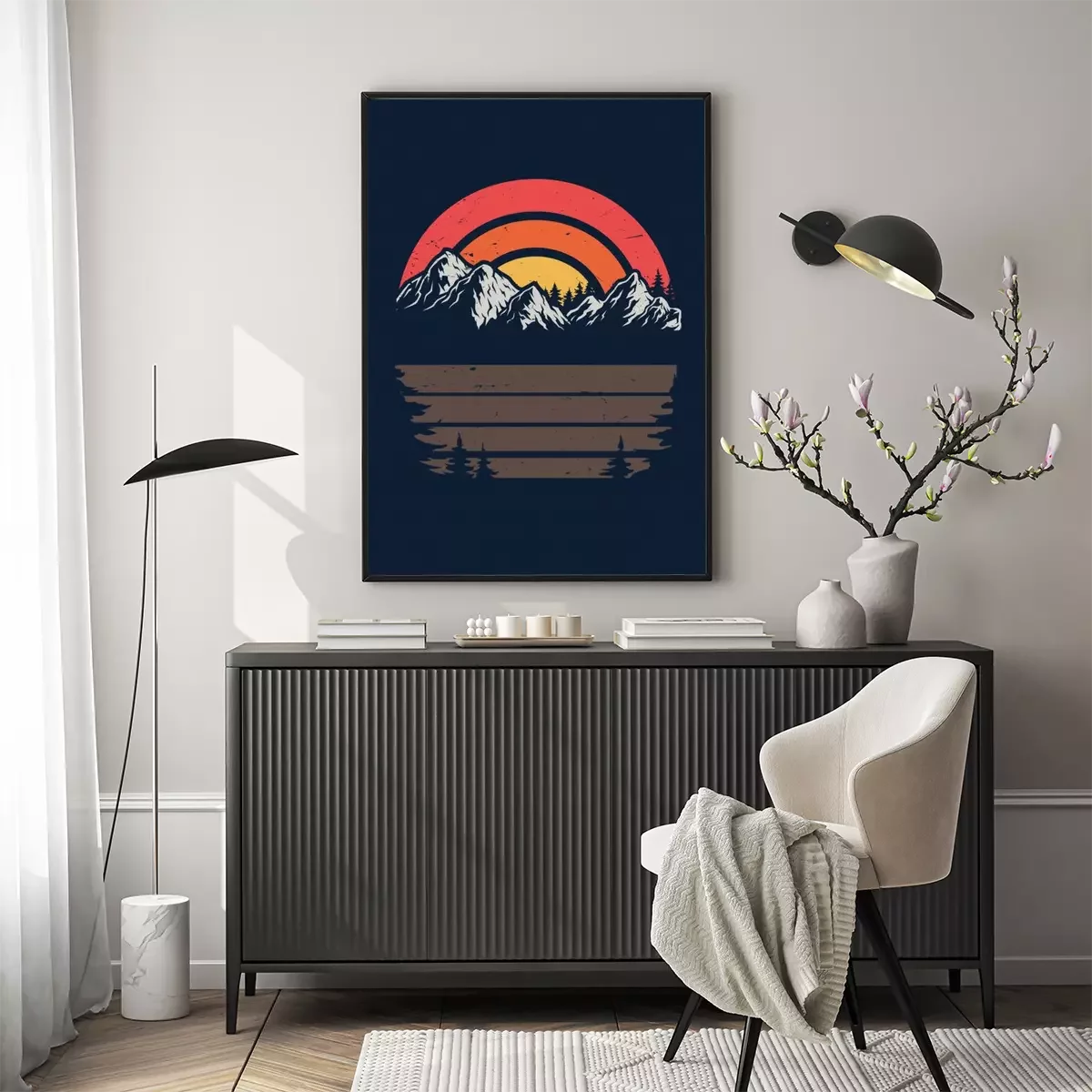 Poster  Coucher de soleil sur une illustration rétro