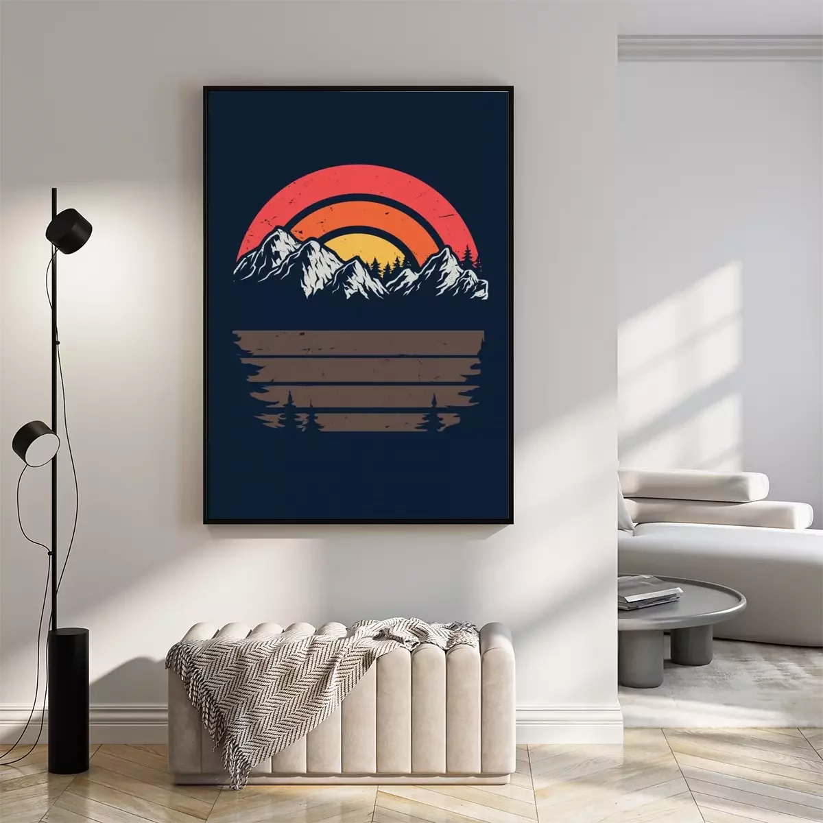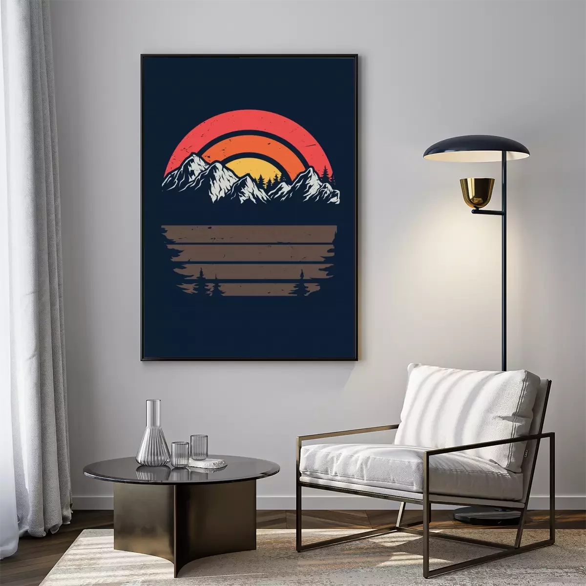 Poster : Coucher de soleil sur une illustration rétro