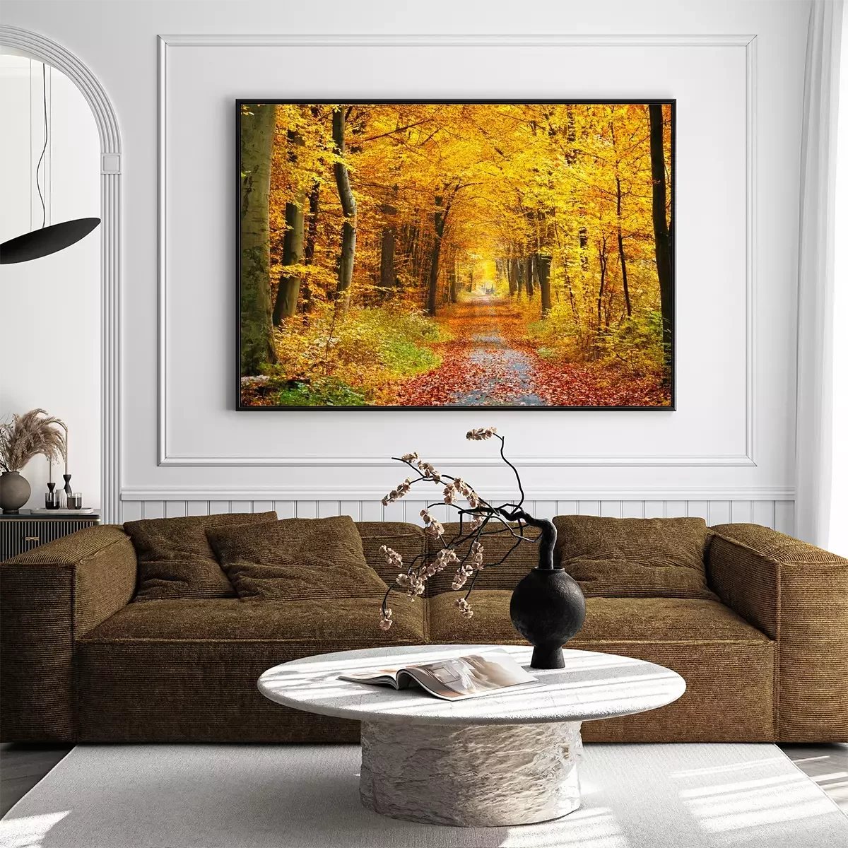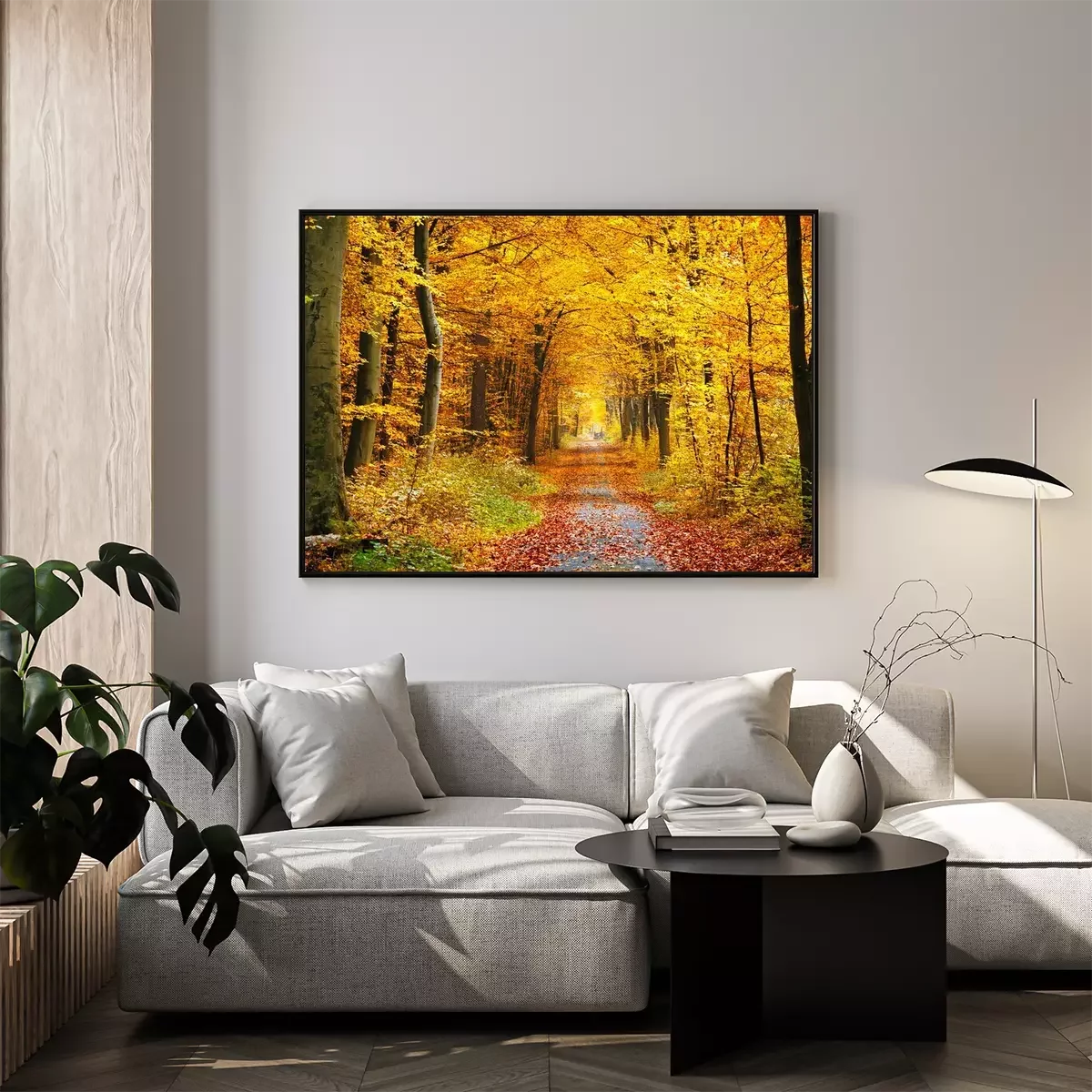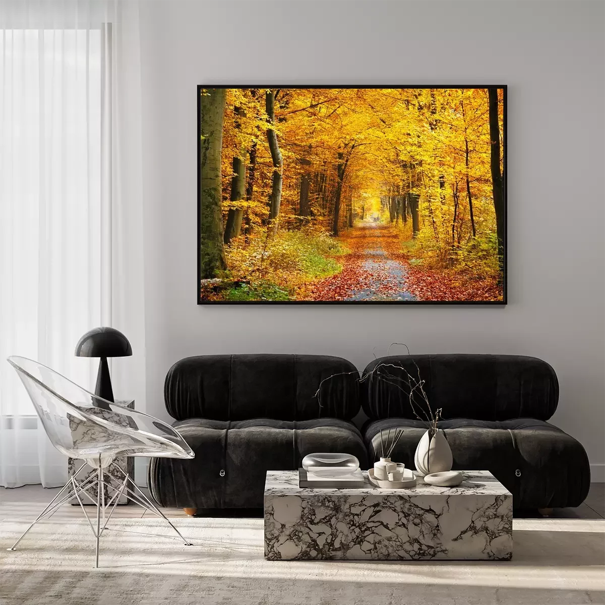 Poster : Couleurs d'automne dans une forêt coupée par une route