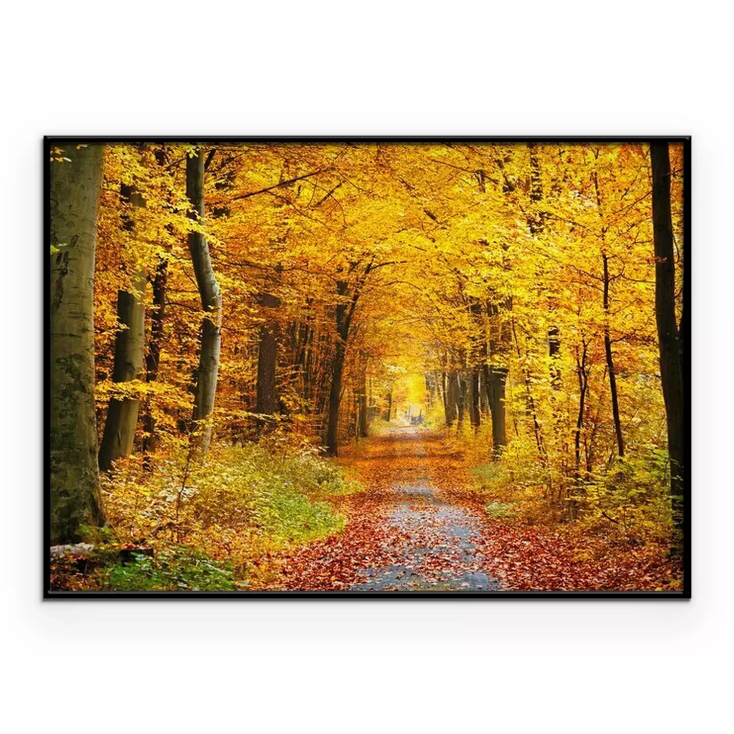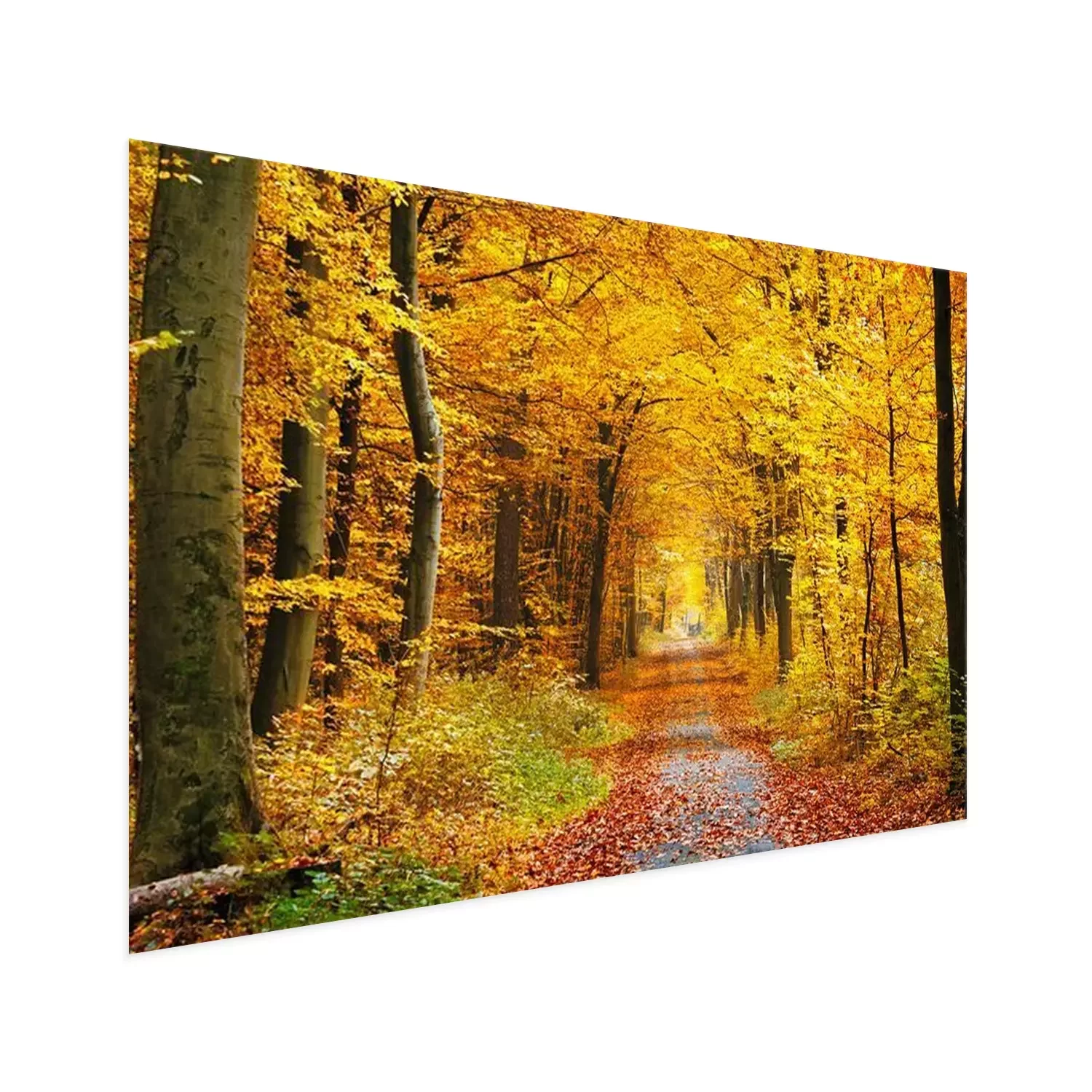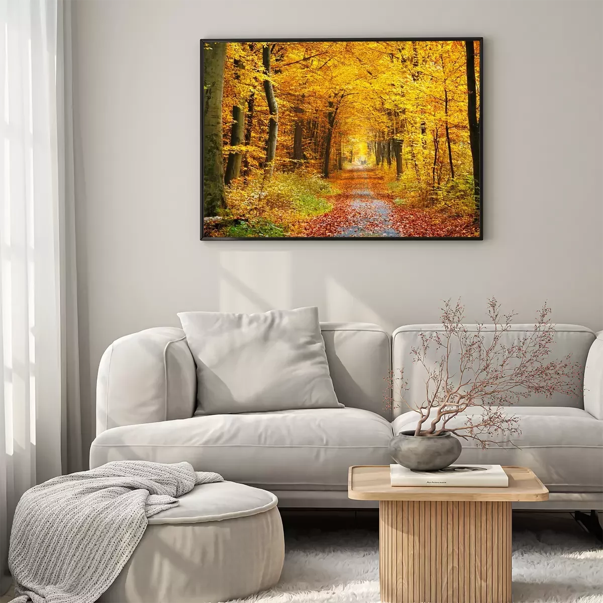Poster  Couleurs d'automne dans une forêt coupée par une route