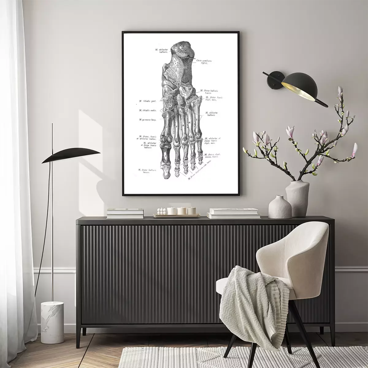 Poster : Croquis anatomique des os du pied