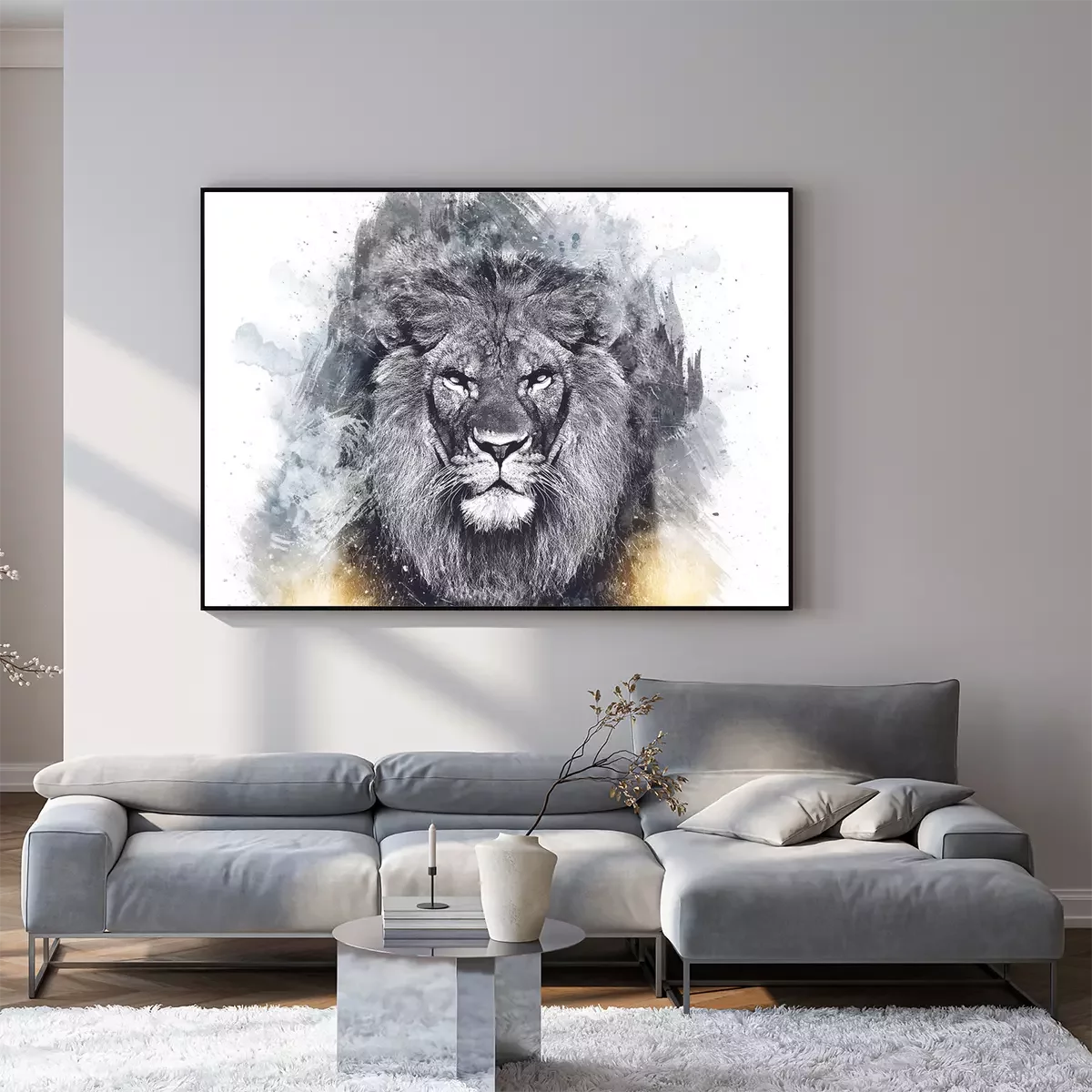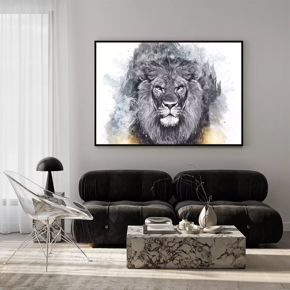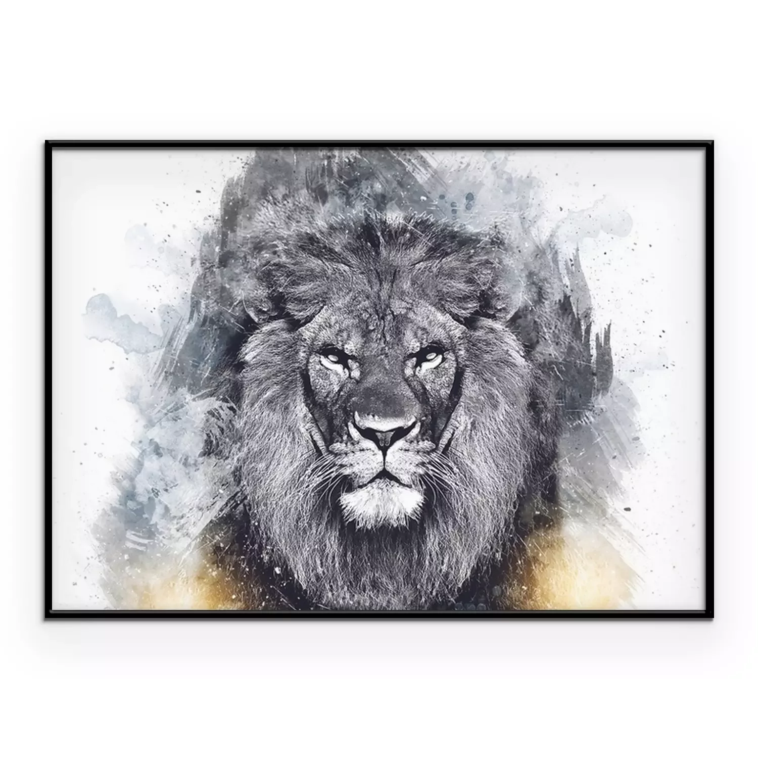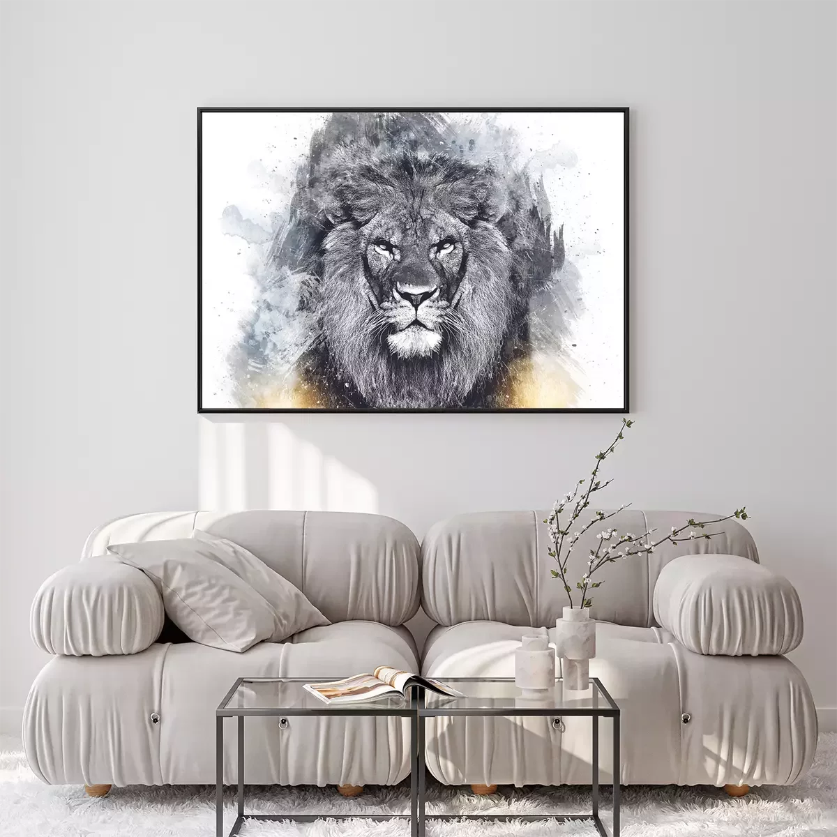 Poster  Croquis d'un lion féroce avec une crinière luxuriante