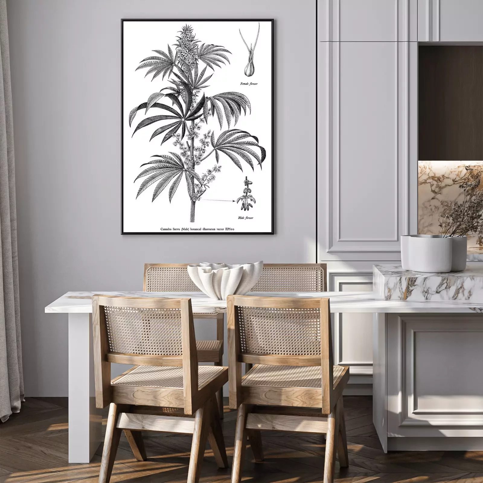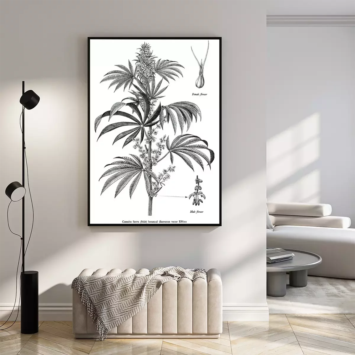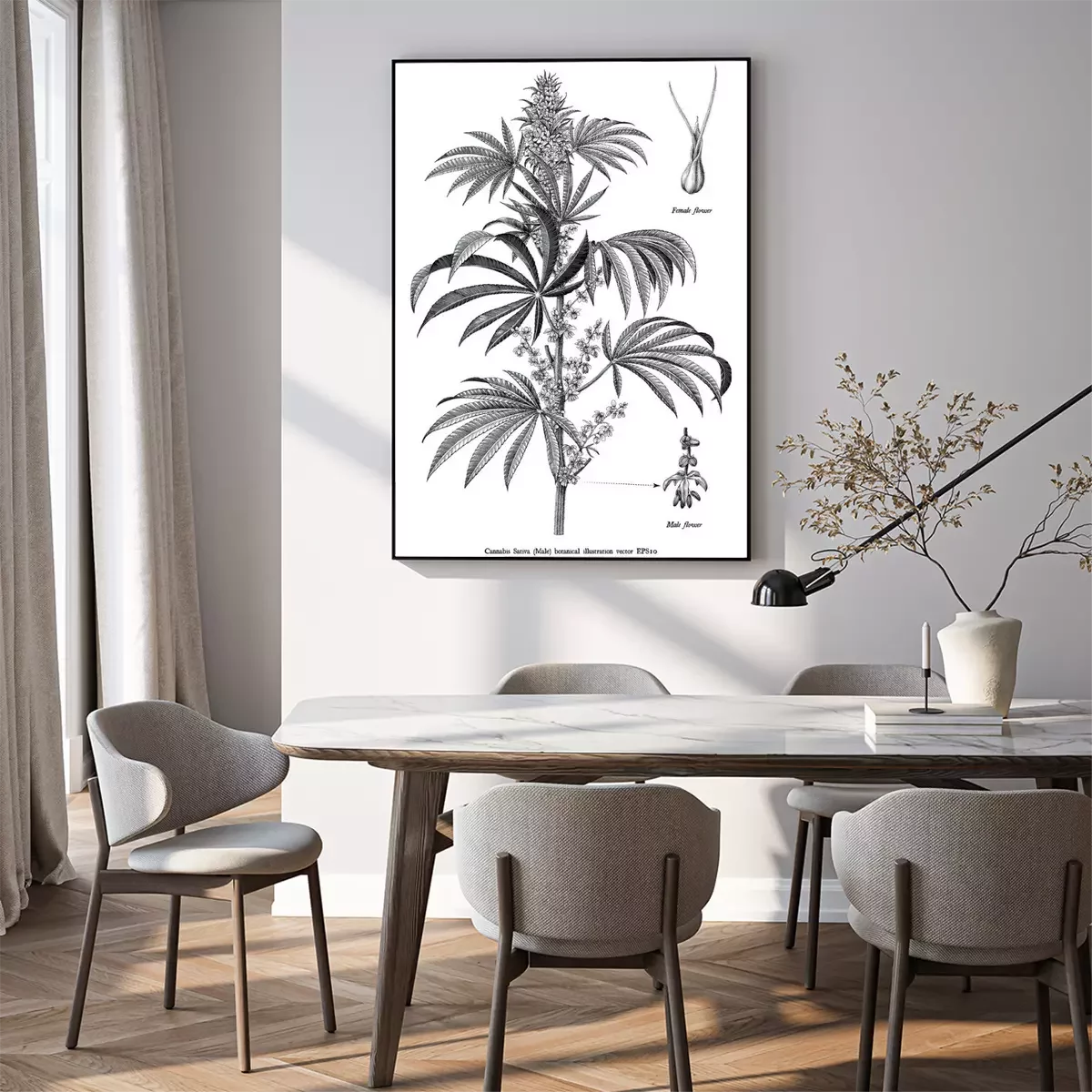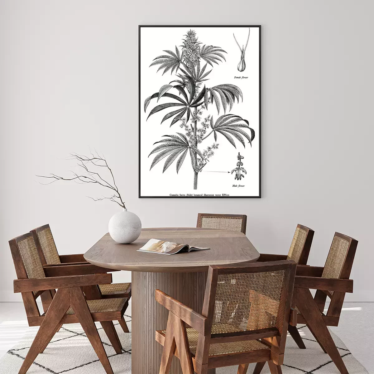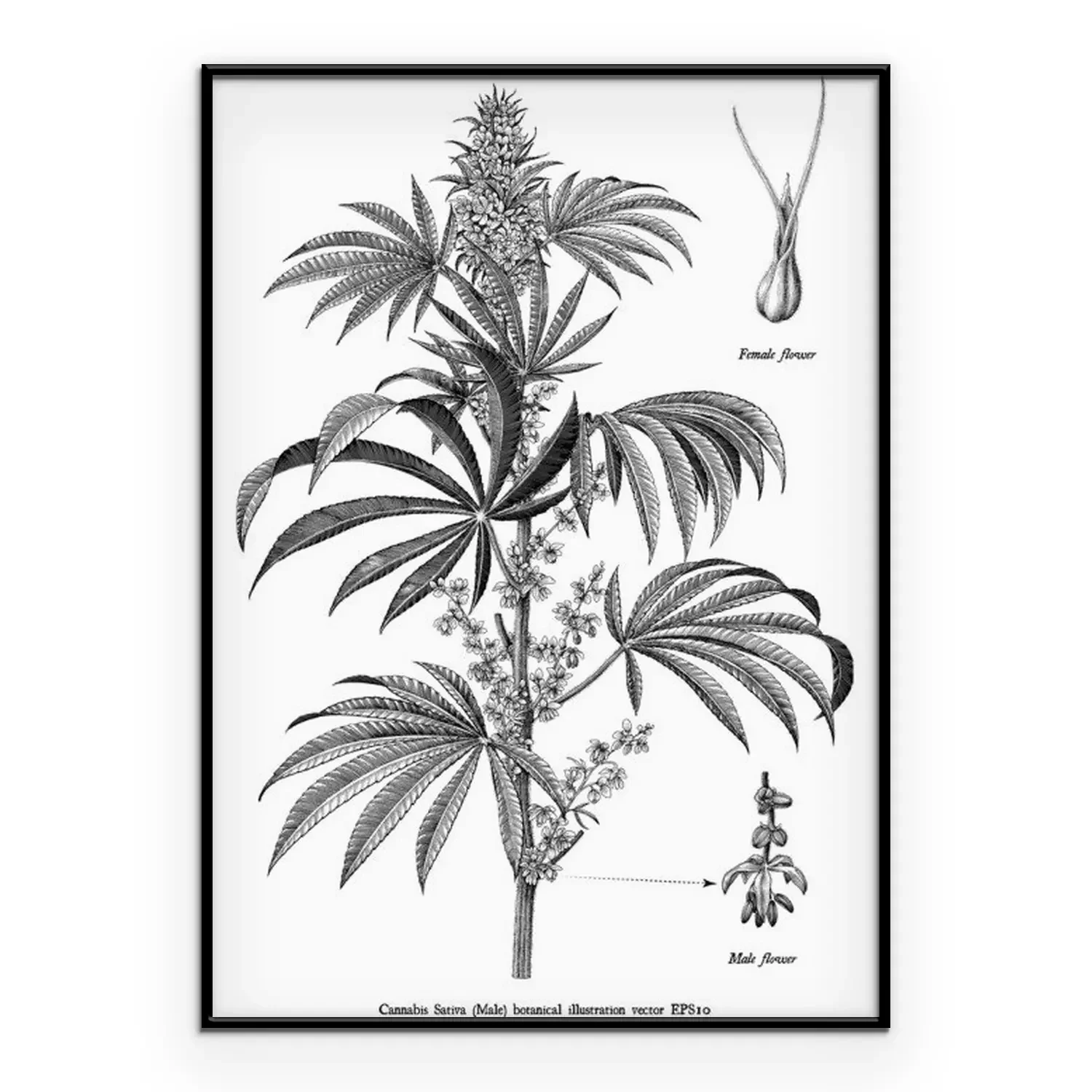 Poster : Croquis d'une branche de chanvre issu d'un atlas naturel
