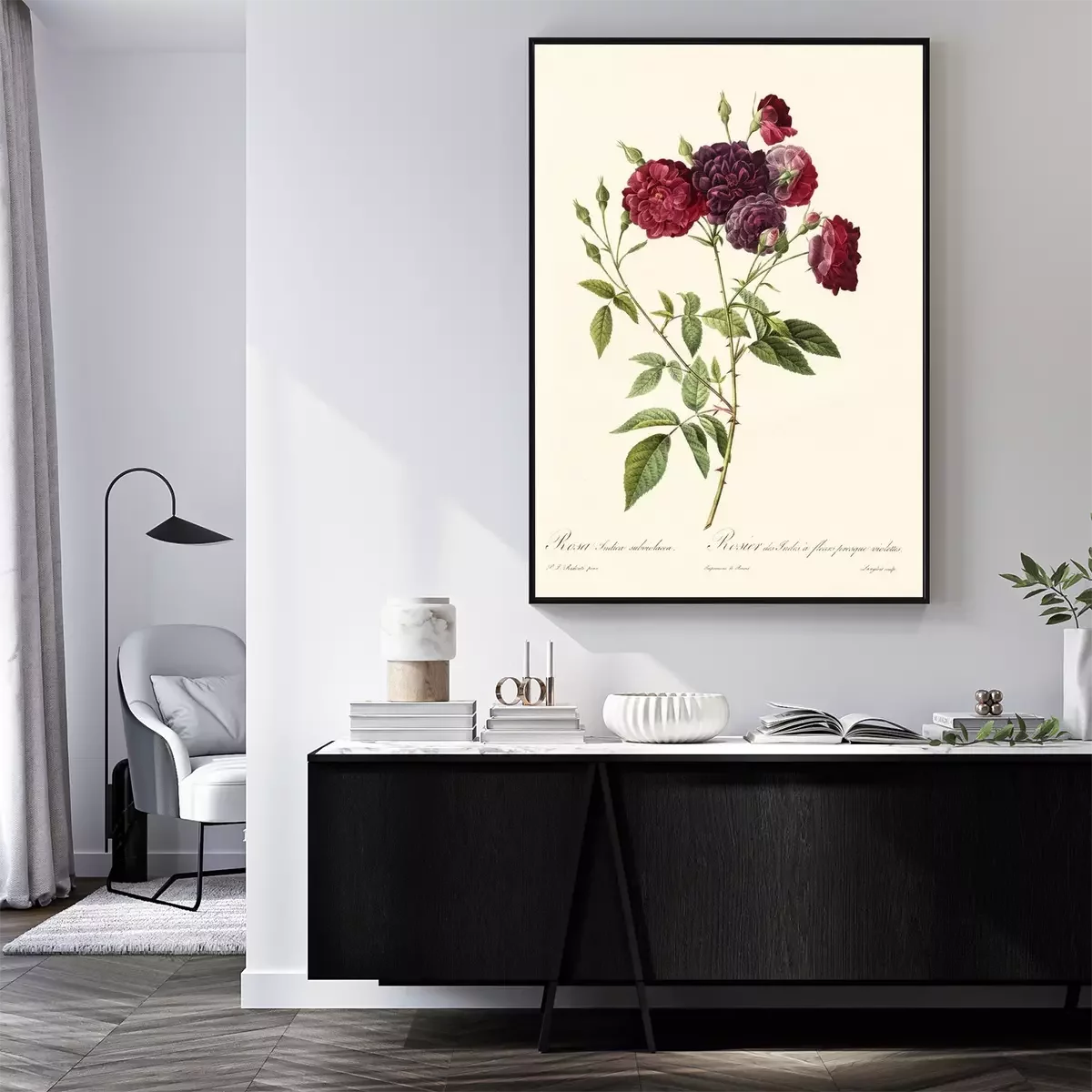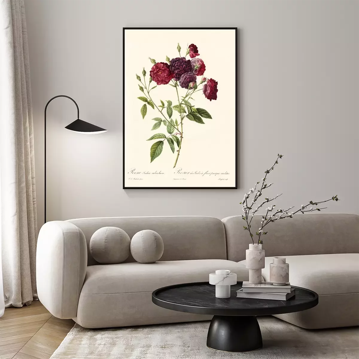 Poster : Croquis de brindilles de buisson de roses carmin