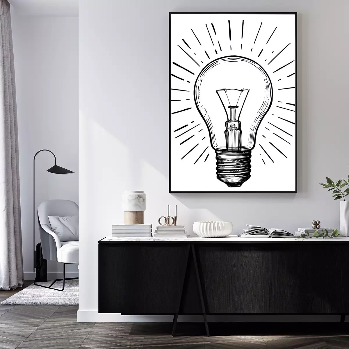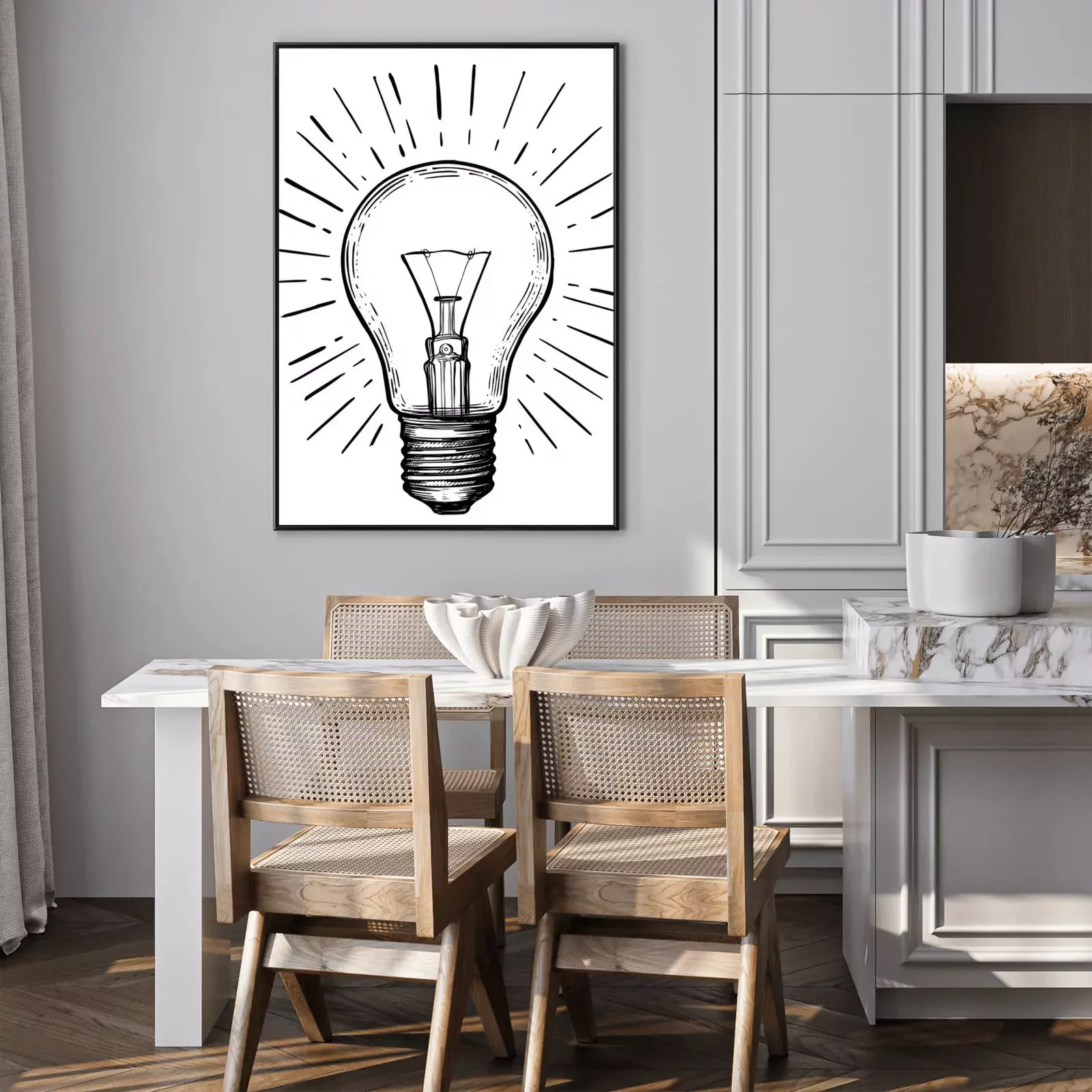 Poster  Croquis minimaliste d'ampoule rougeoyante