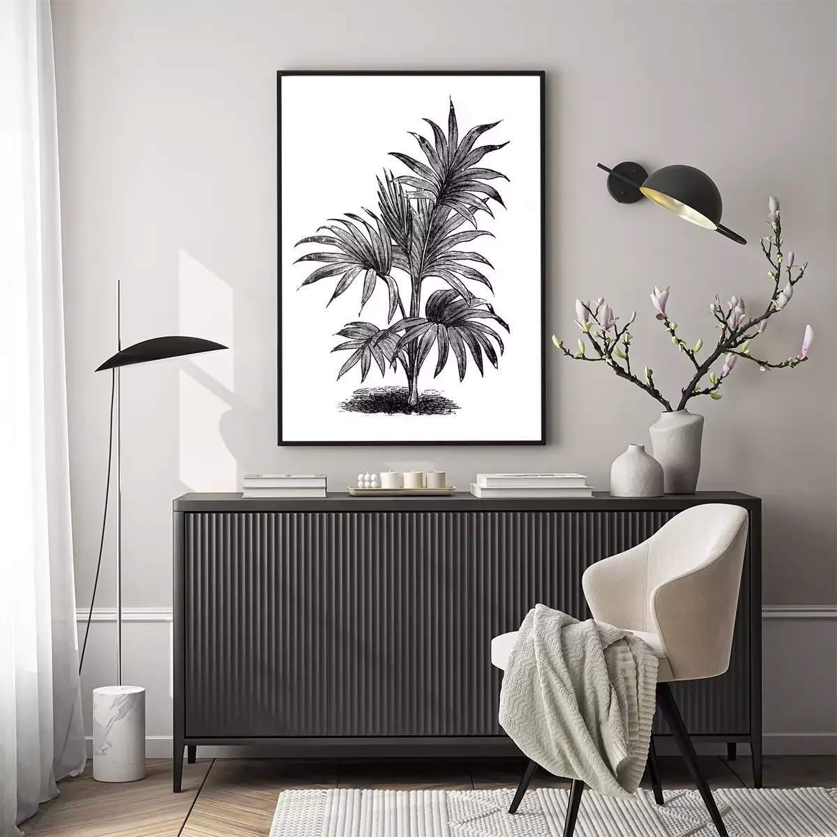 Poster  Croquis noir et blanc de feuilles de palmier