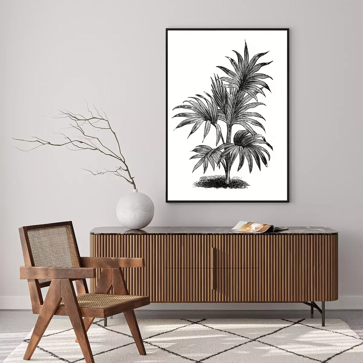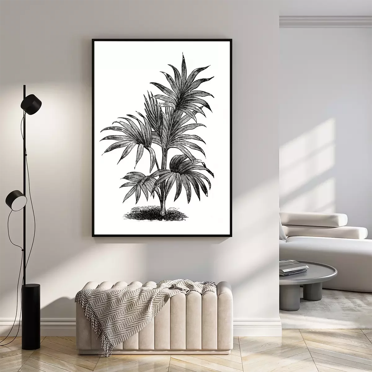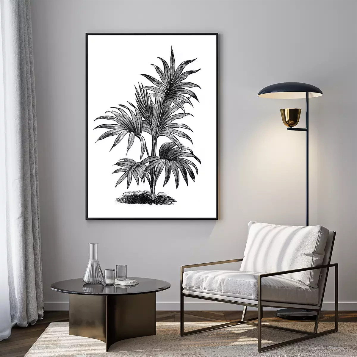 Poster : Croquis noir et blanc de feuilles de palmier