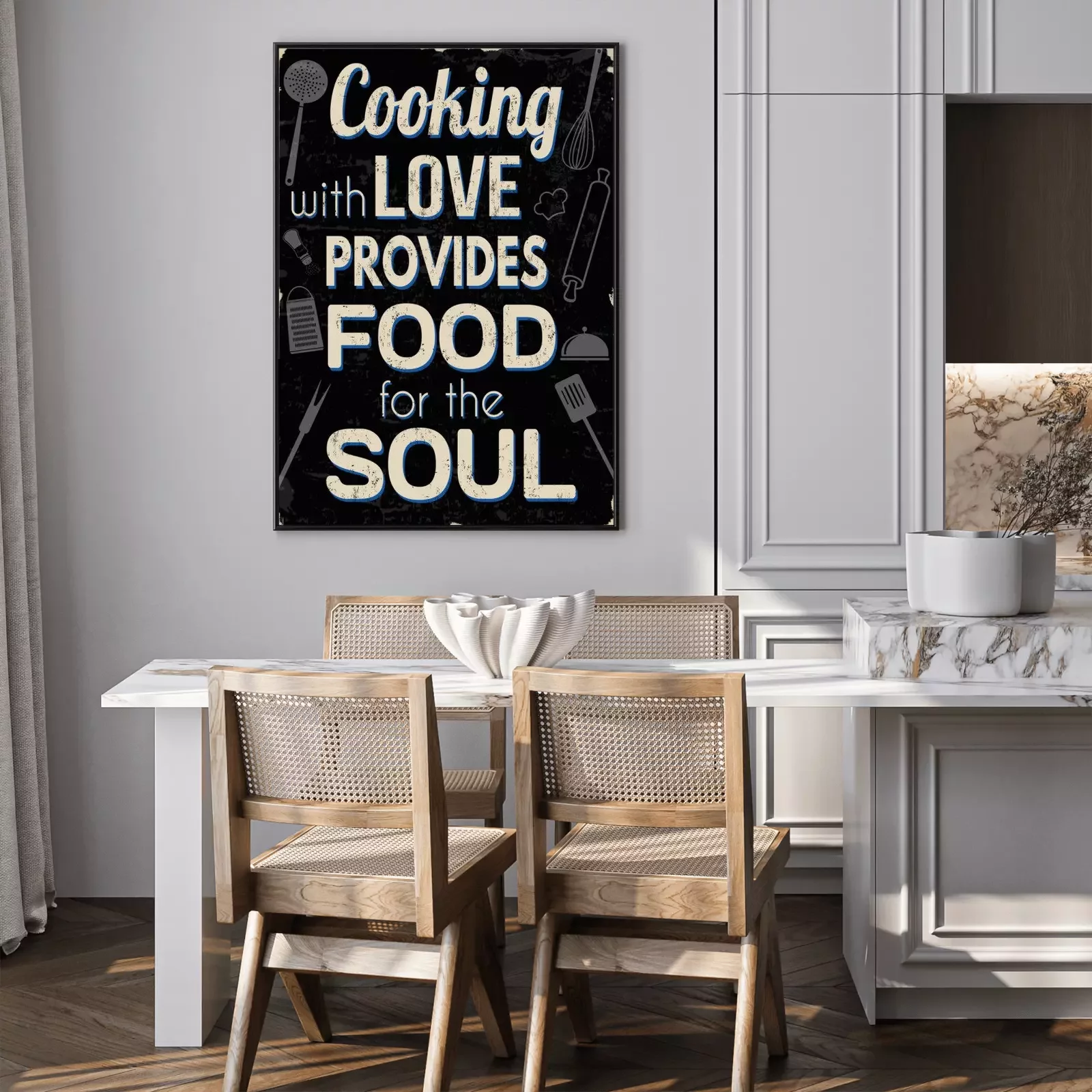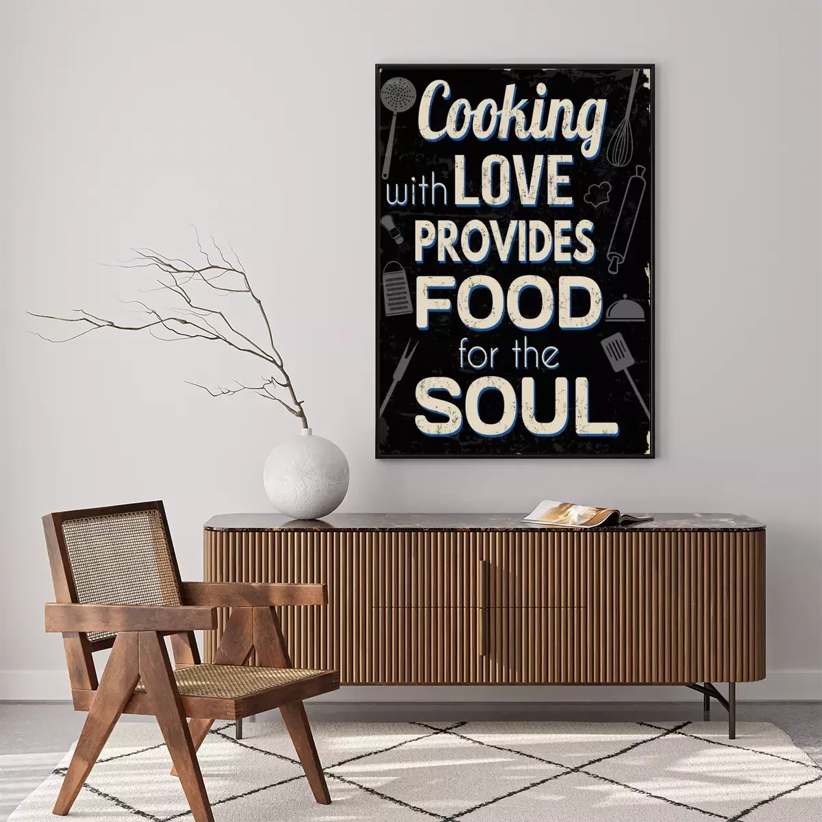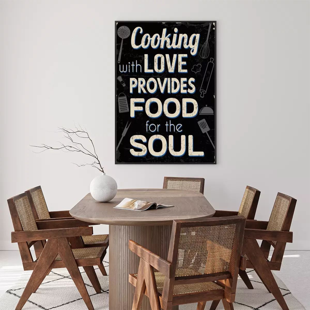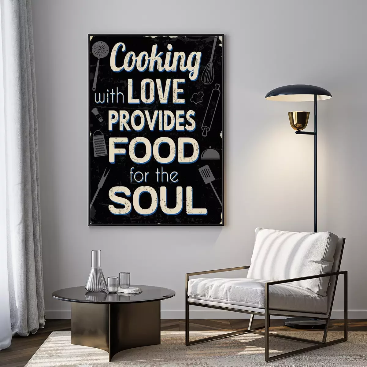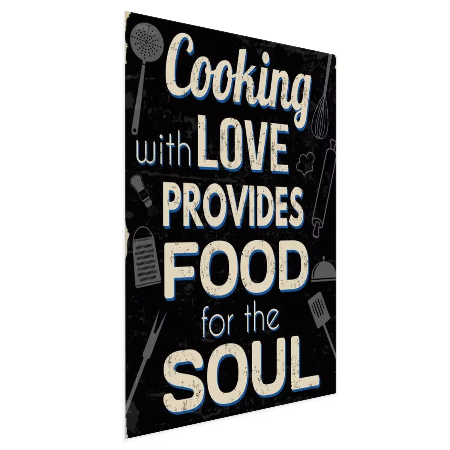 Poster : Cuisiner avec amour fournit de la nourriture pour l'âme, impression de typographie vintage