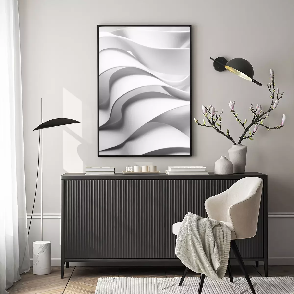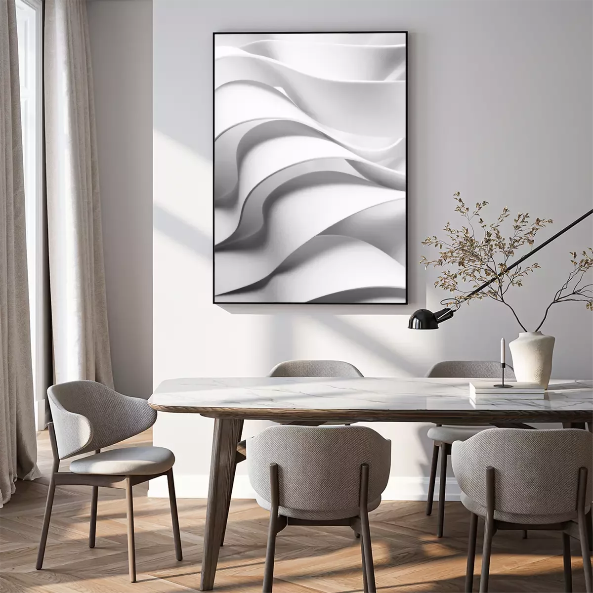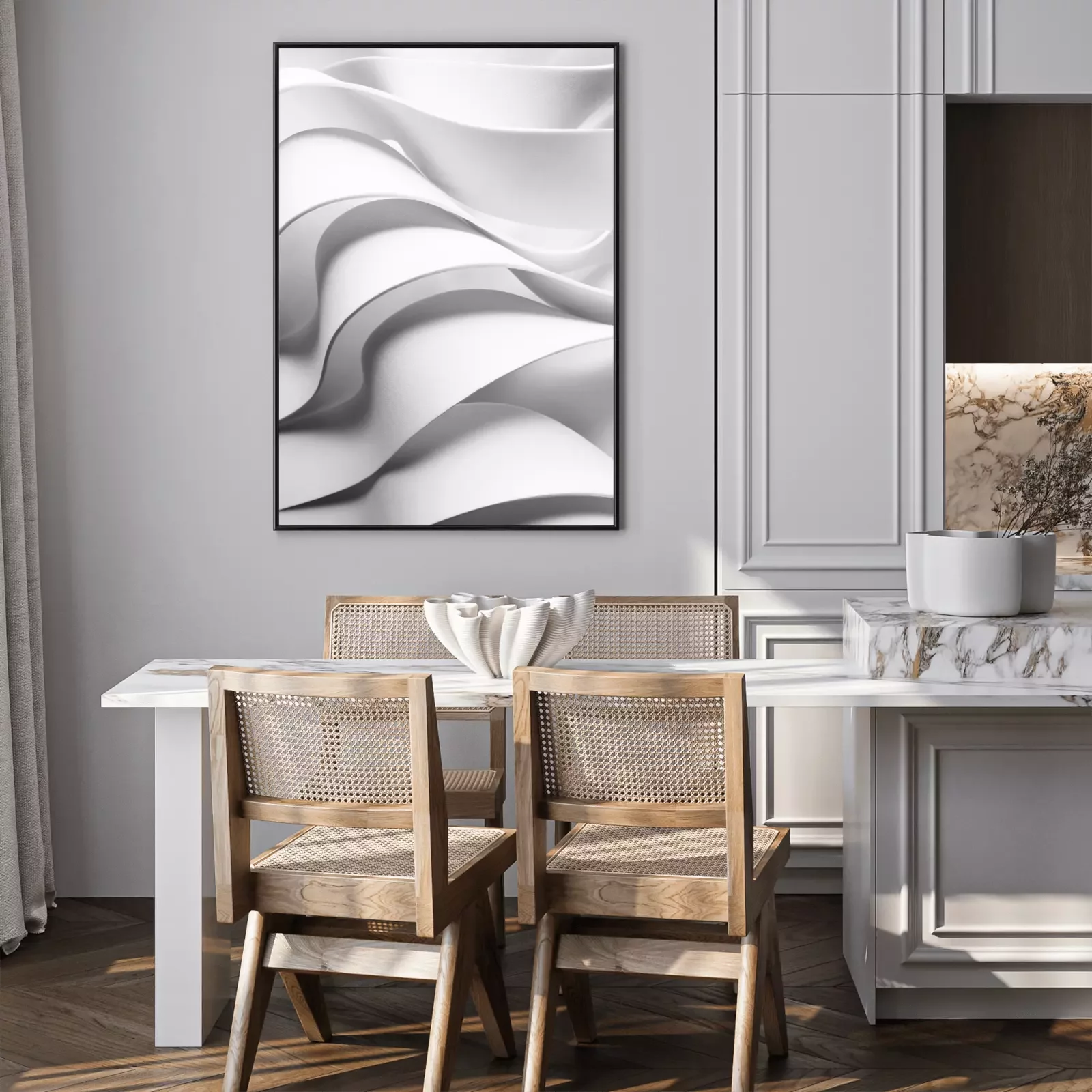 Poster  Curved elements, white abstract background