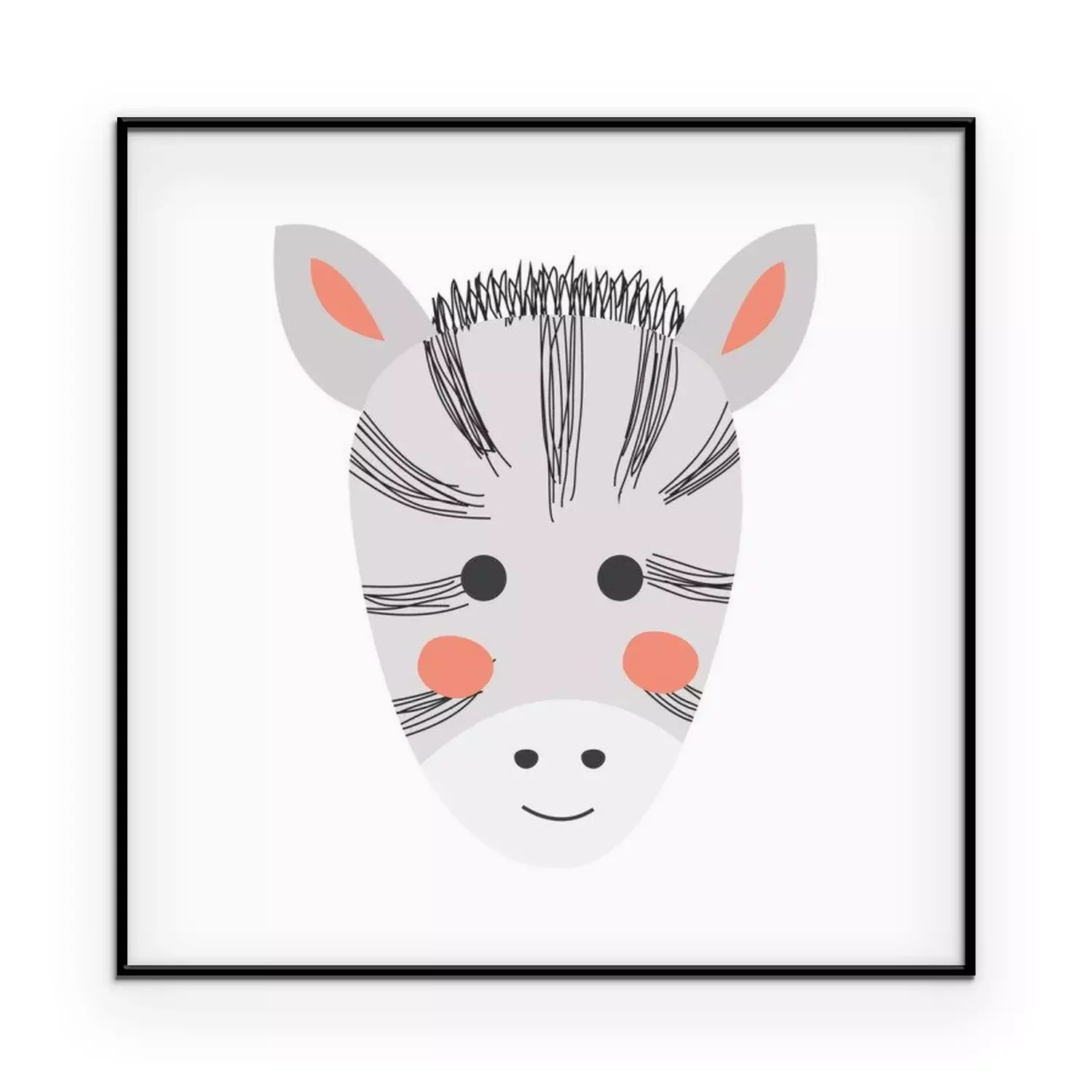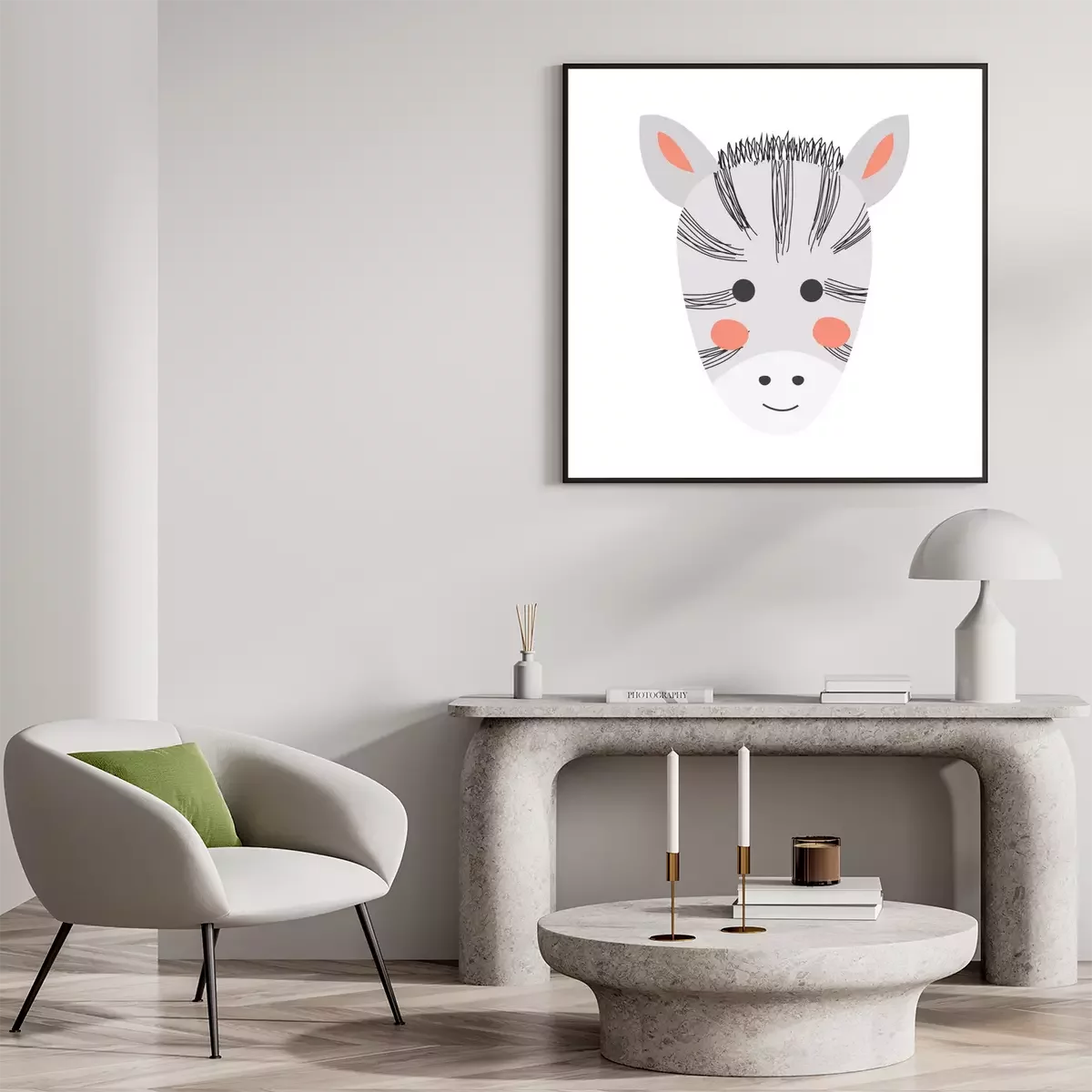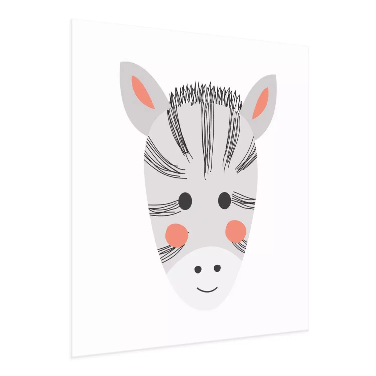 Poster  Cute hand drawn zebra in black and white style. Cartoon illustration in scandinavian style