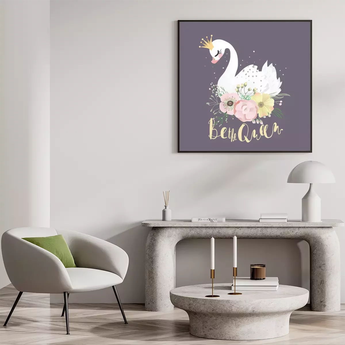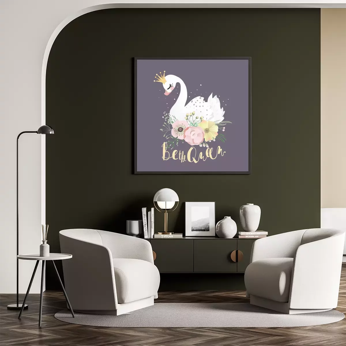 Poster : Cygne dans une couronne sur des fleurs colorées