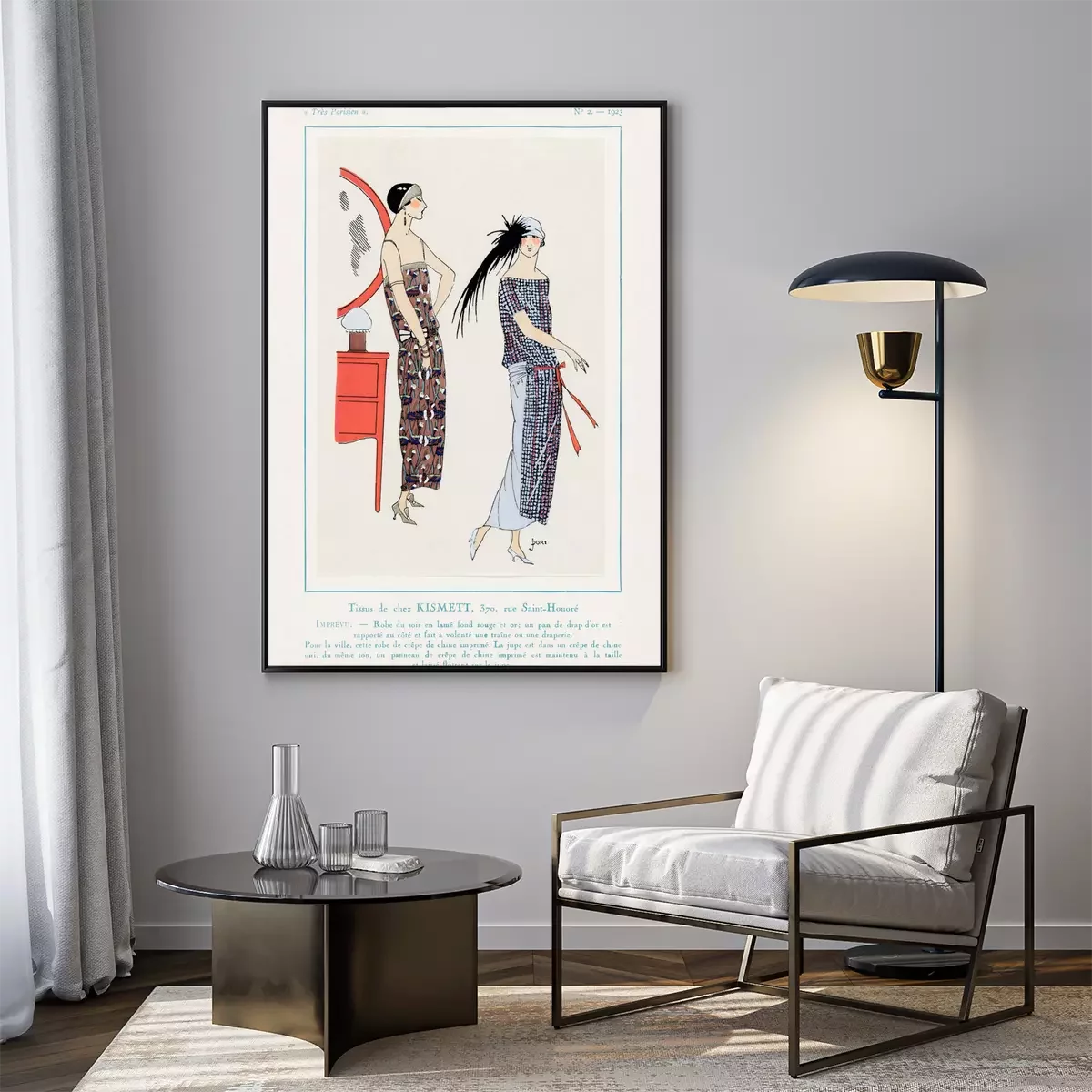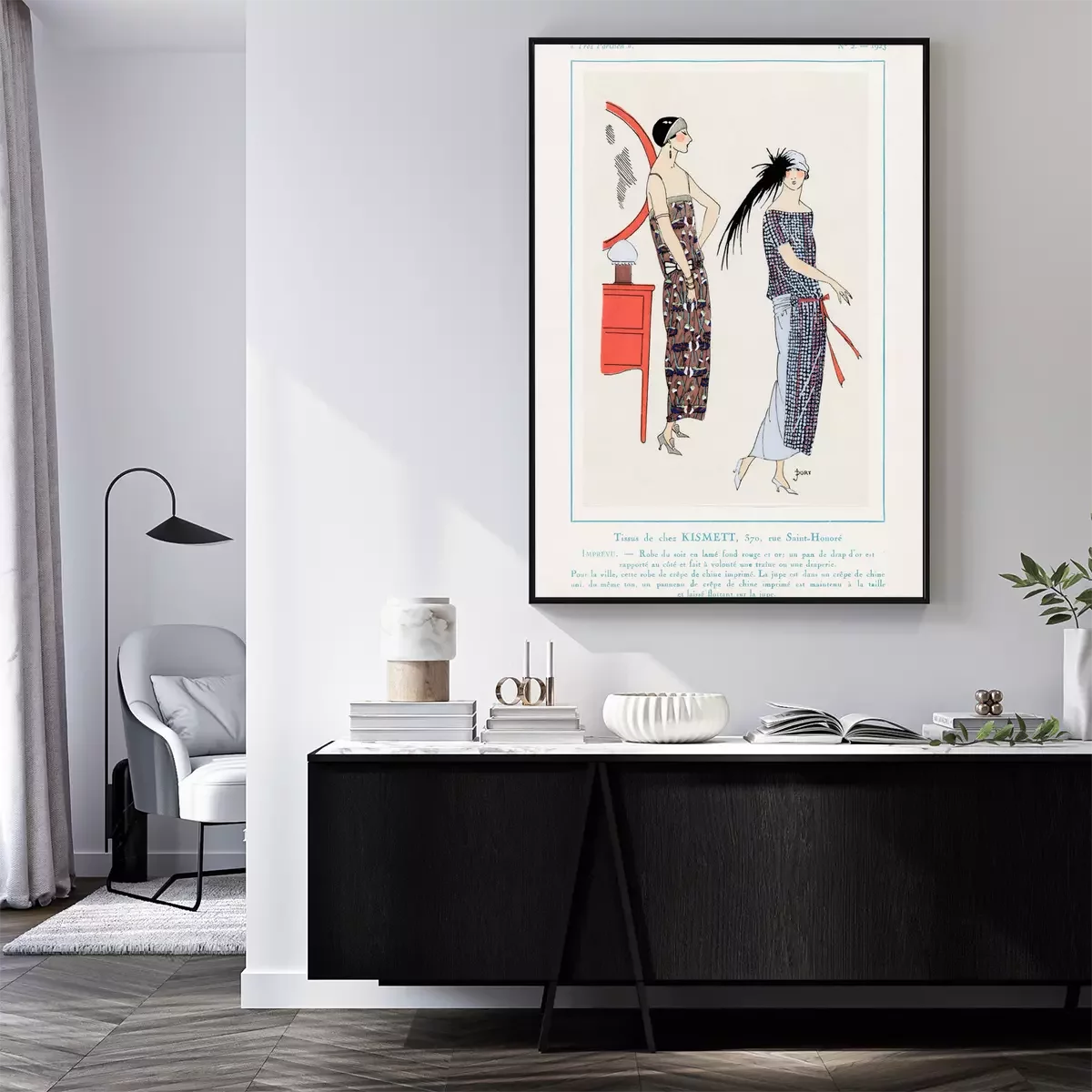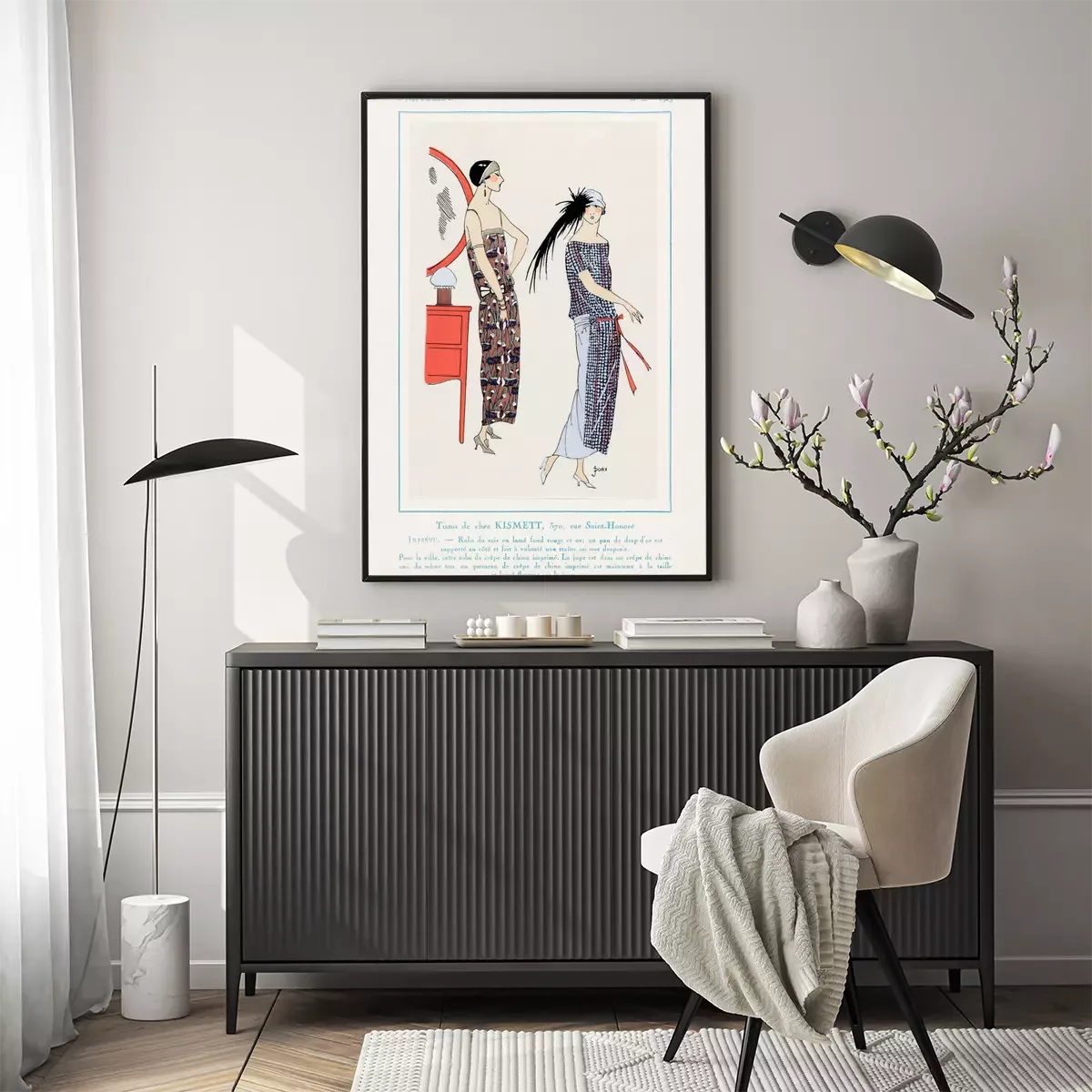 Poster : Dames avec des coiffes devant leur coiffeuse