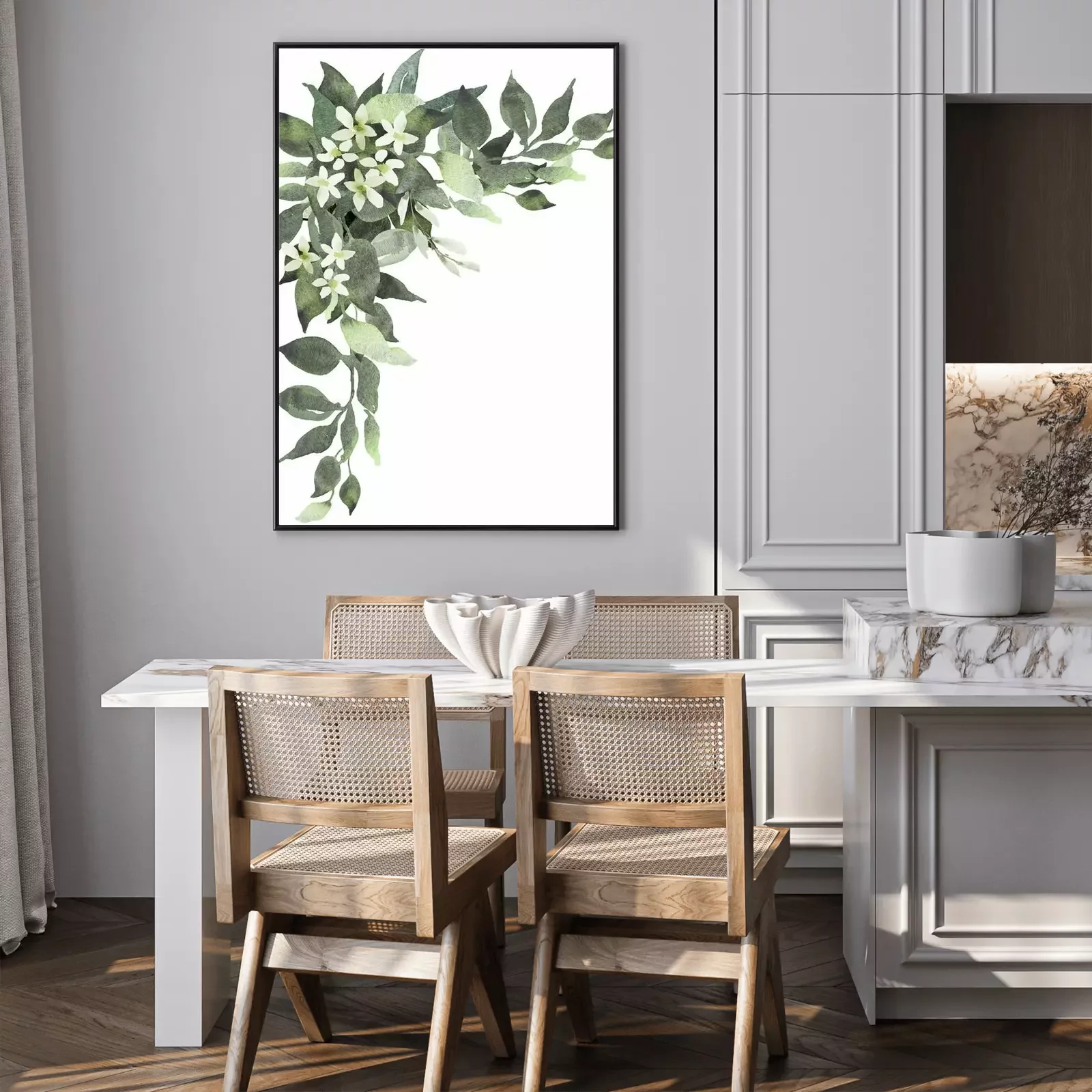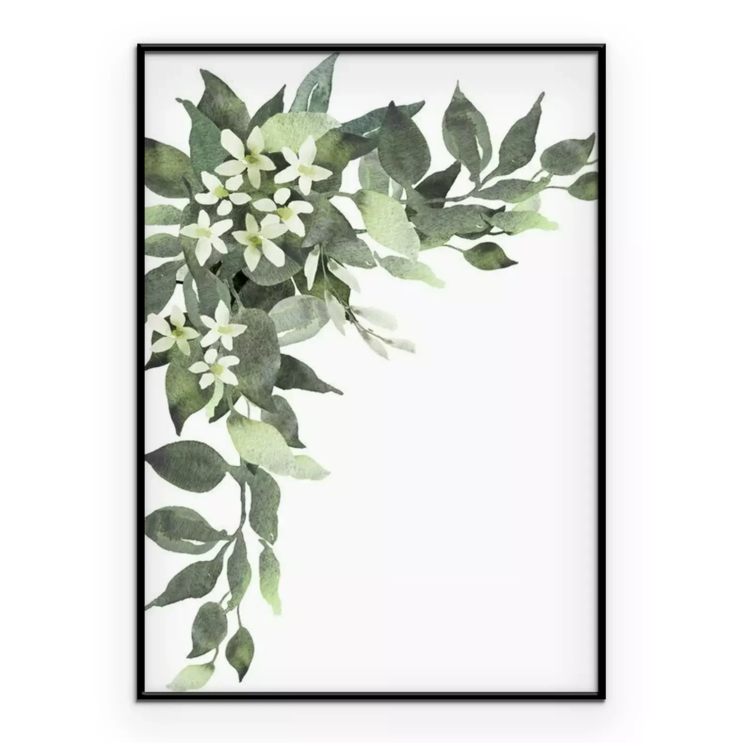 Poster  Décoration aquarelle de feuilles et de fleurs délicates