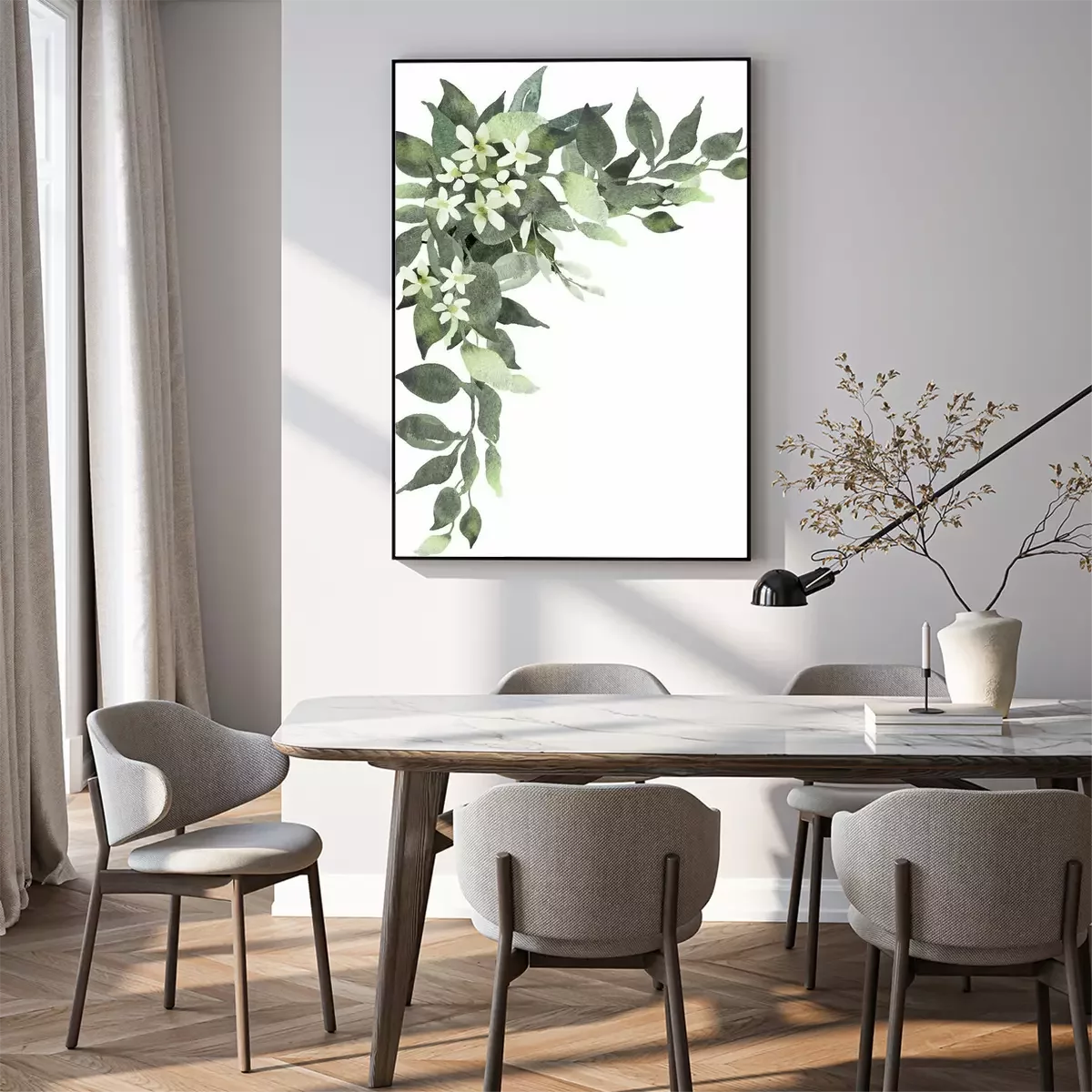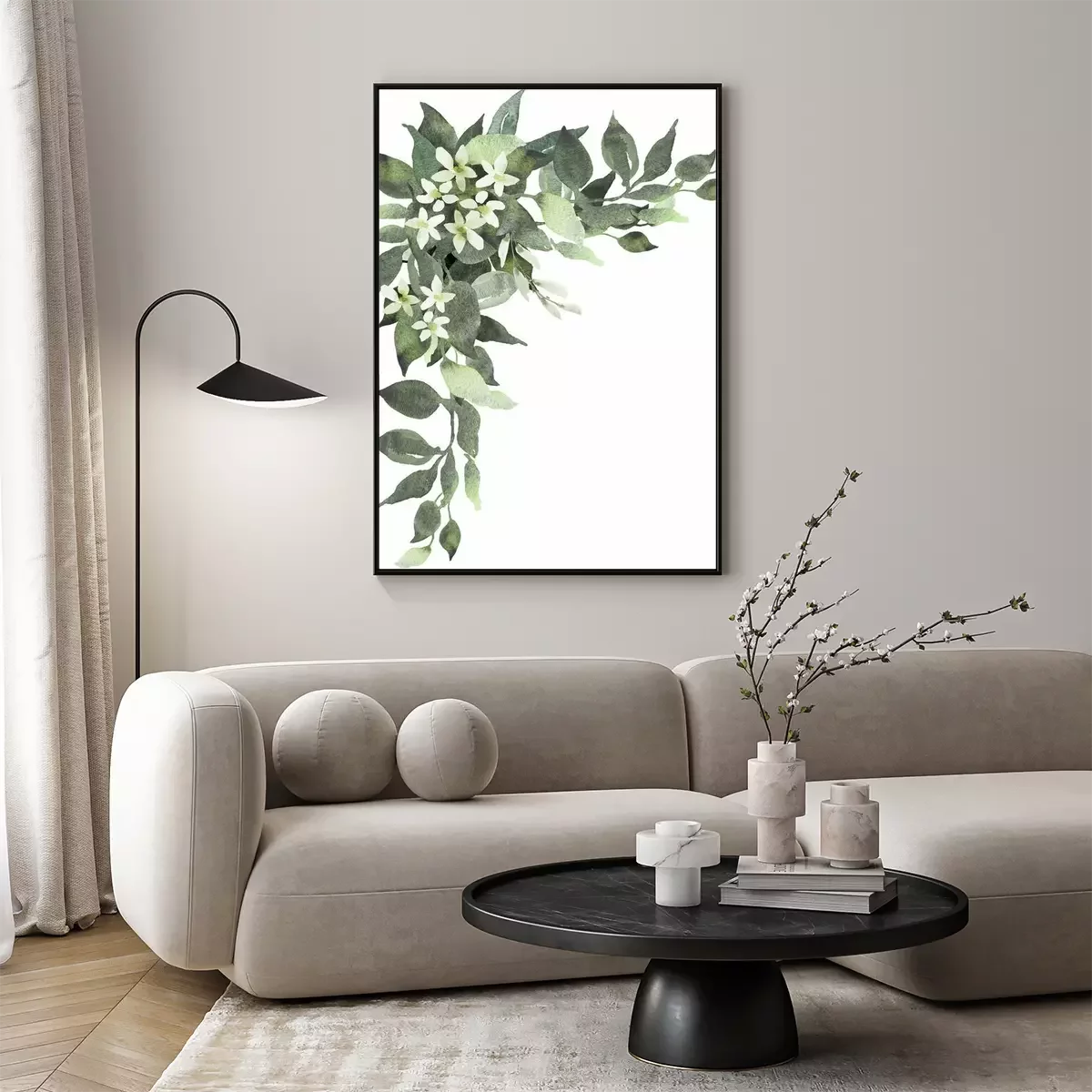 Poster : Décoration aquarelle de feuilles et de fleurs délicates