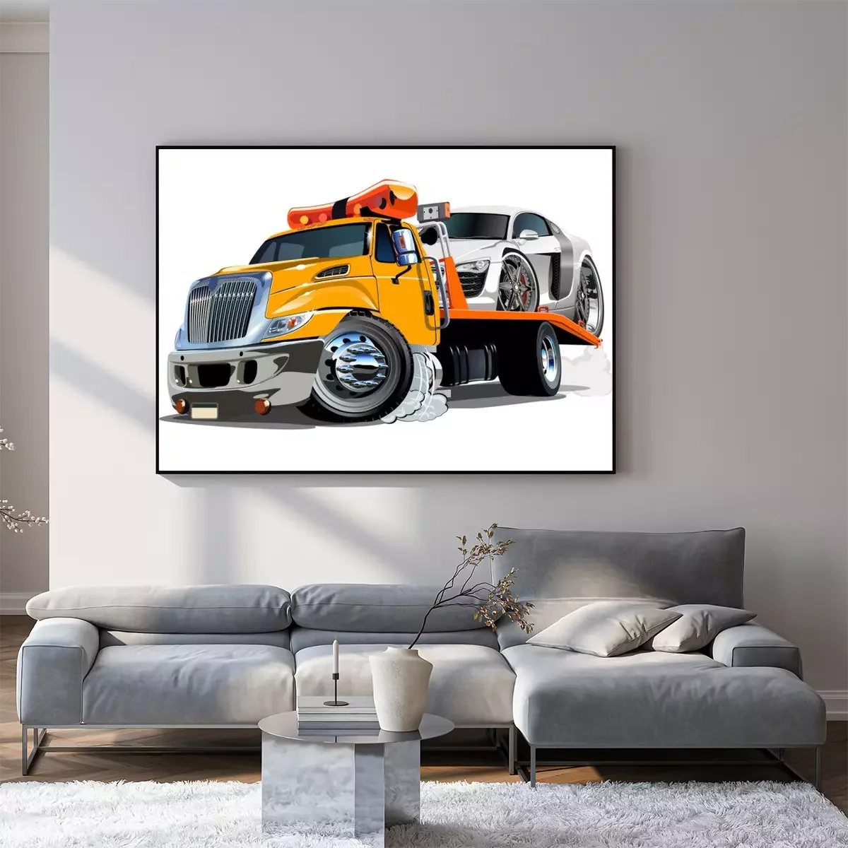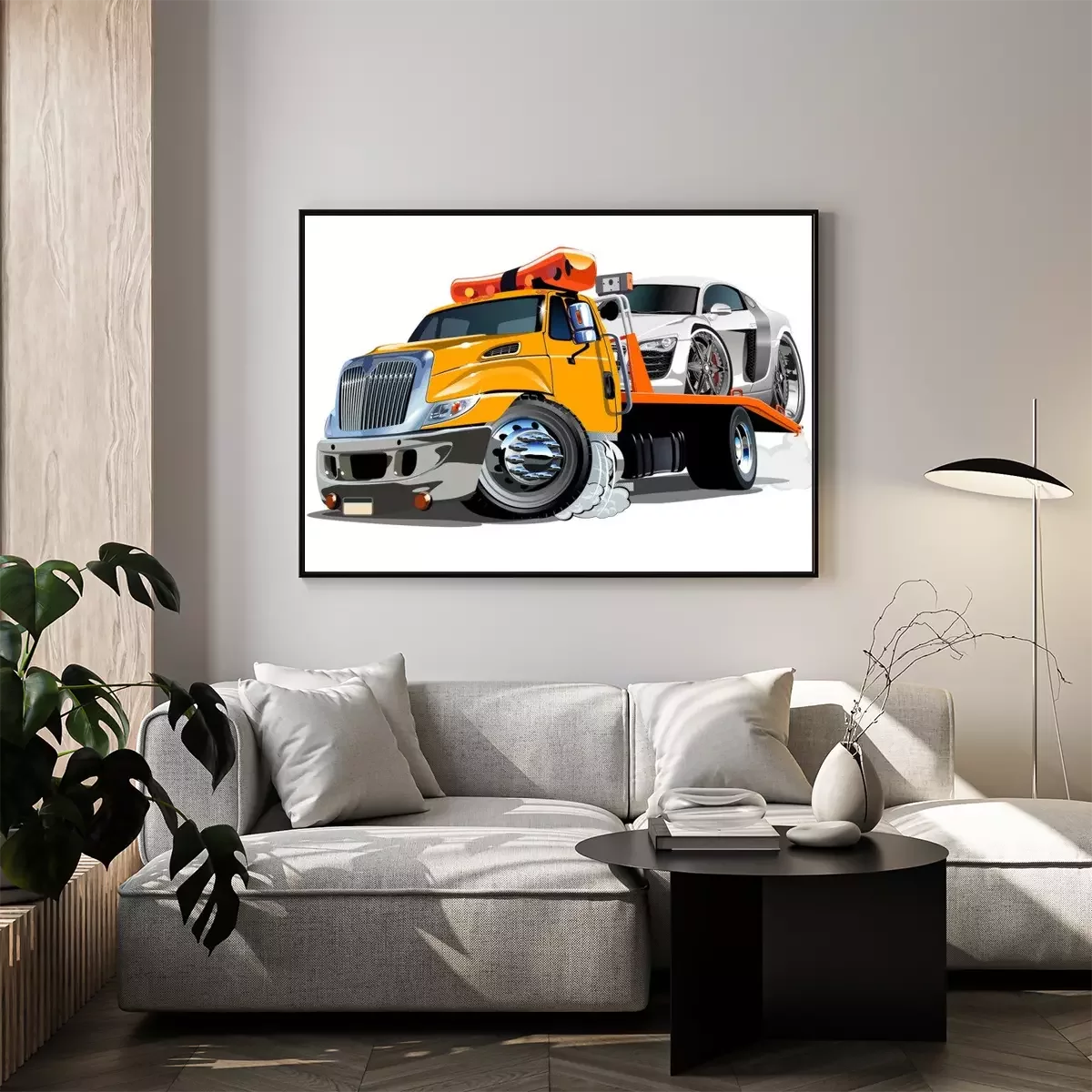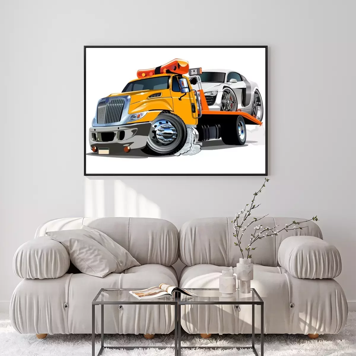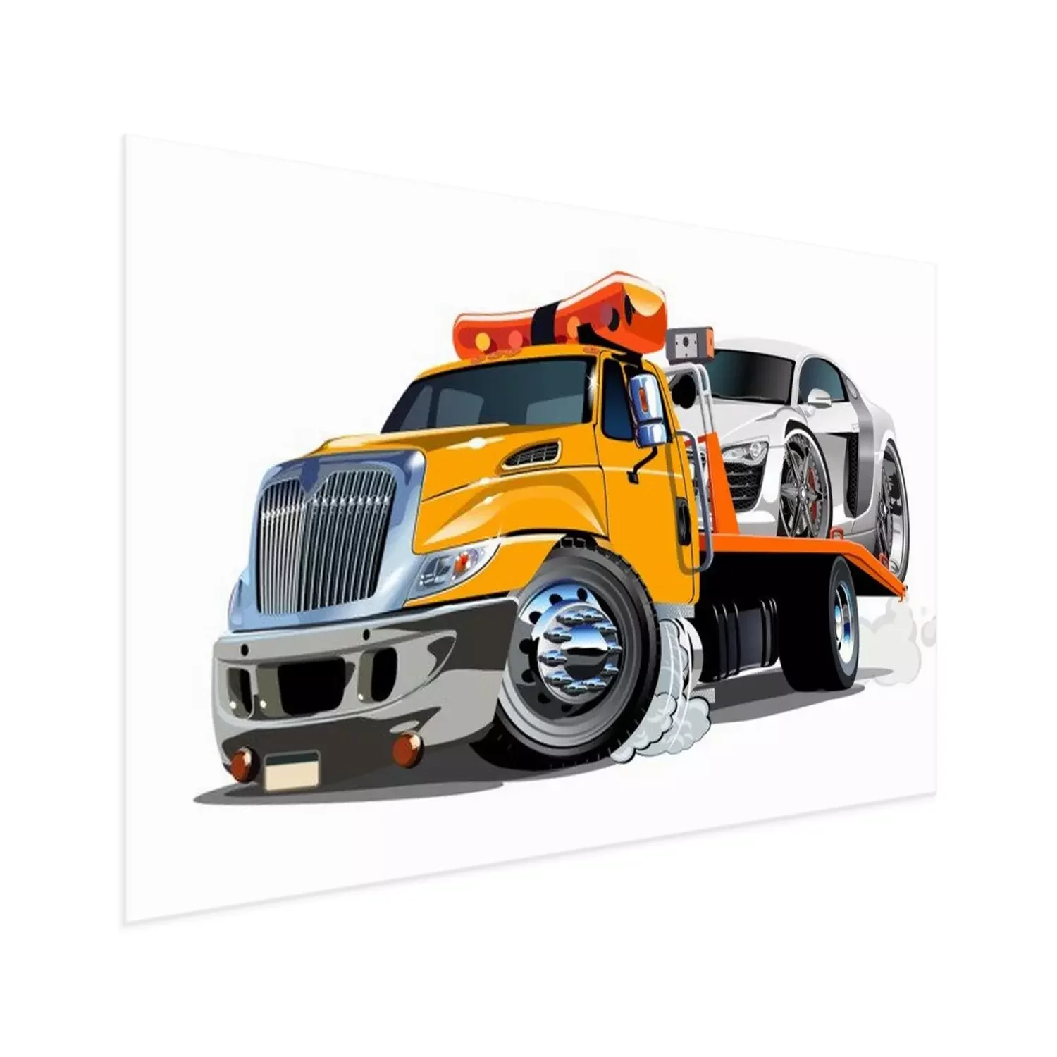 Poster : Dépanneuse de dessin animé avec taxi jaune