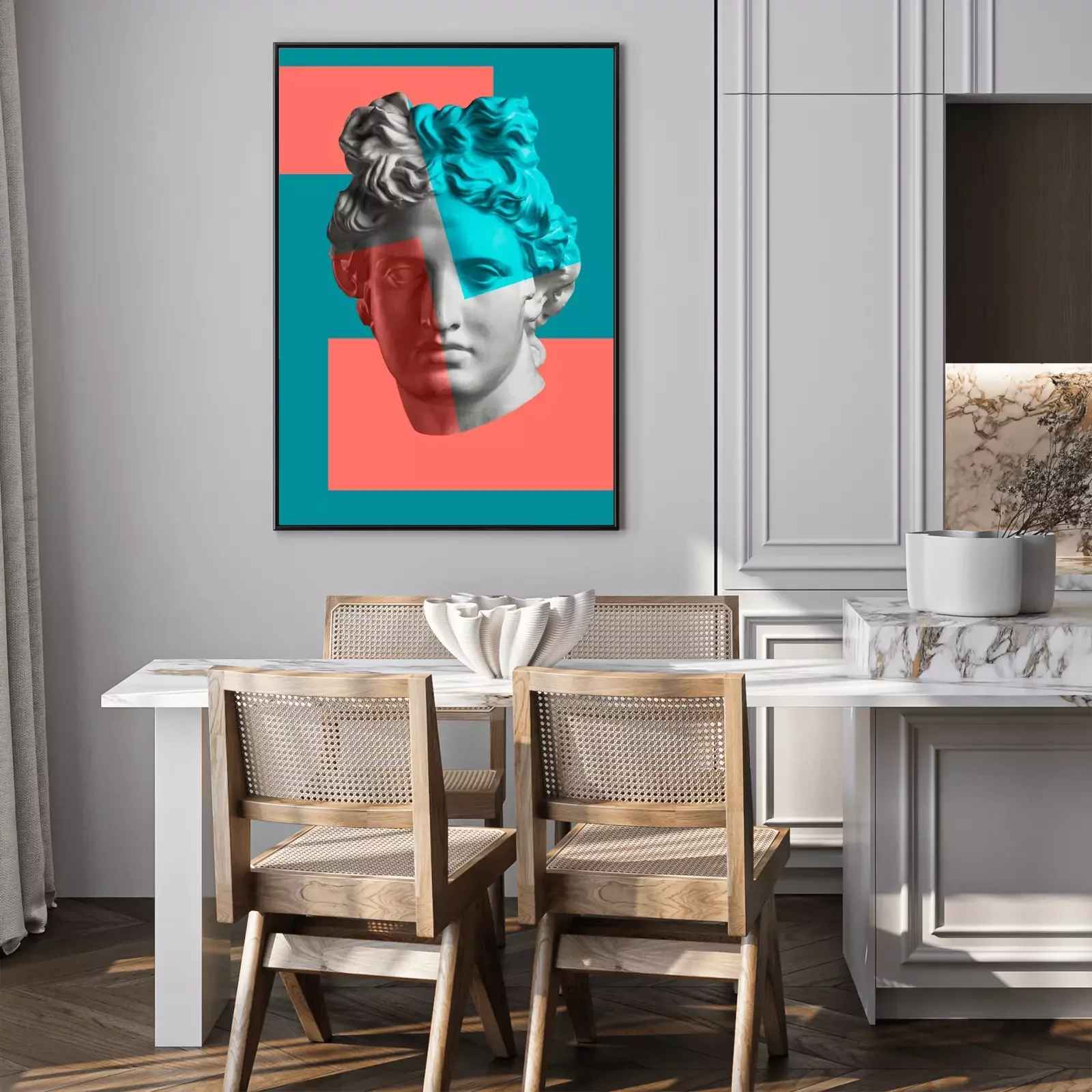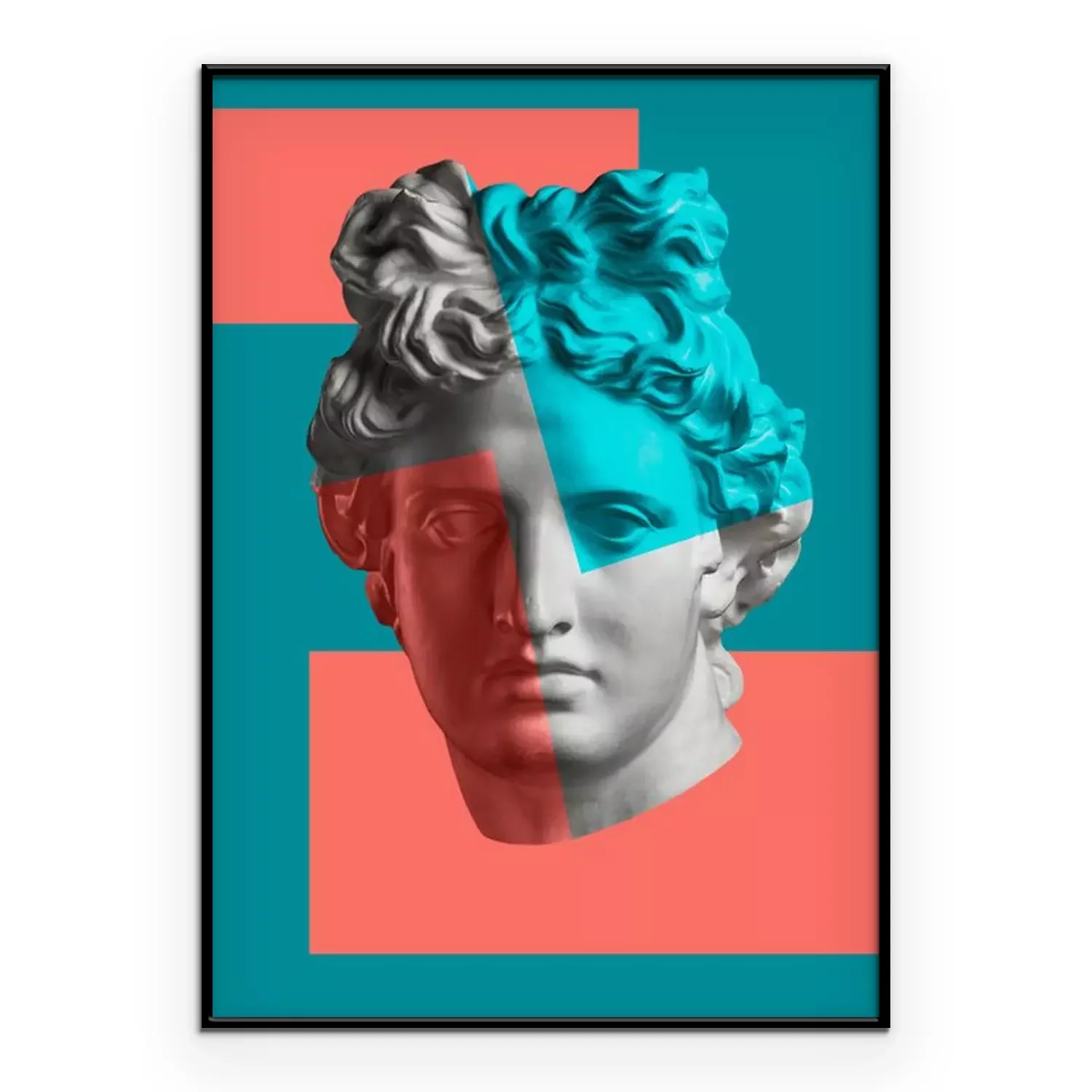 Contemporary art concept collage with antique statue head in a surreal style. Modern unusual art.