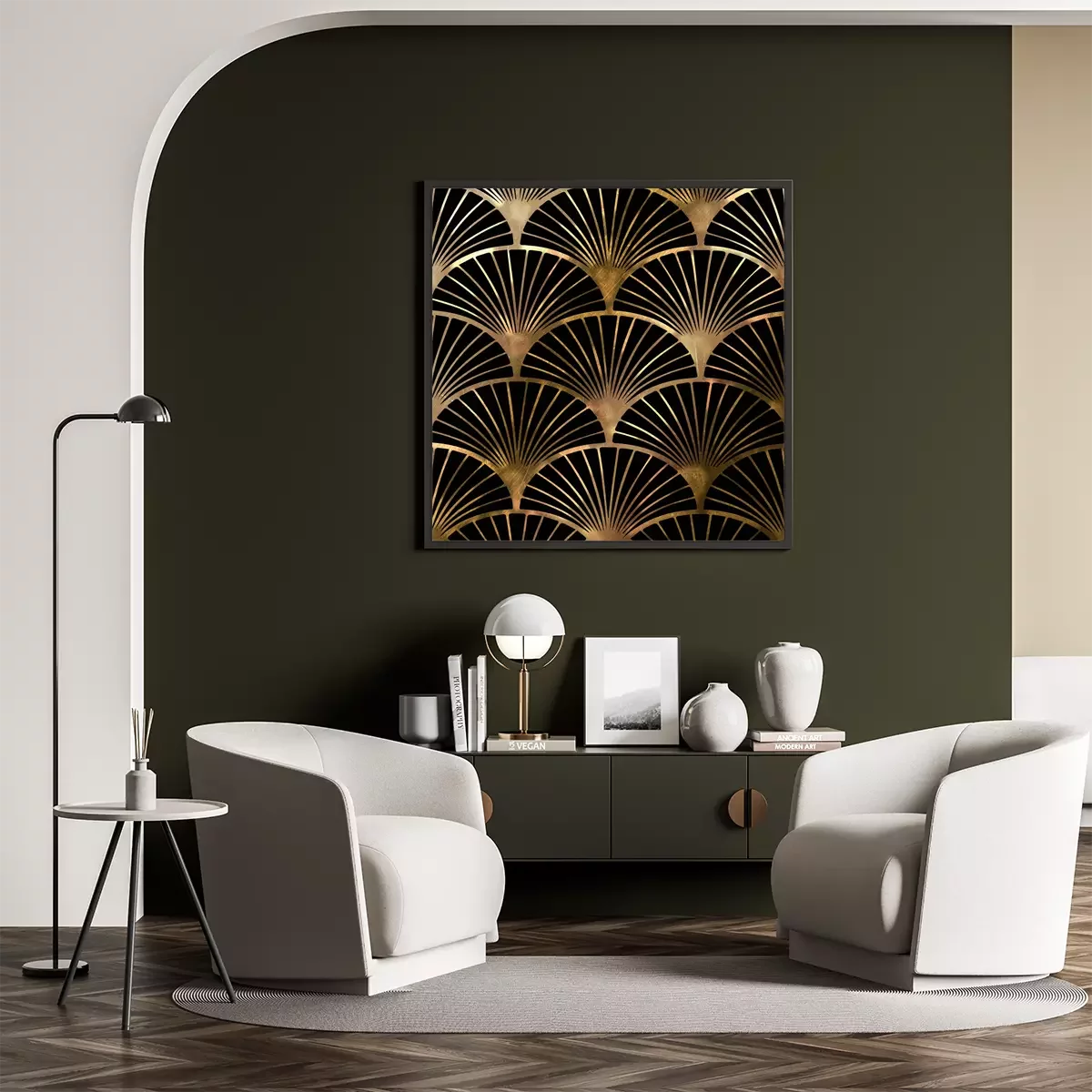 Poster : Design glamour sous forme de motifs géométriques sur fond noir