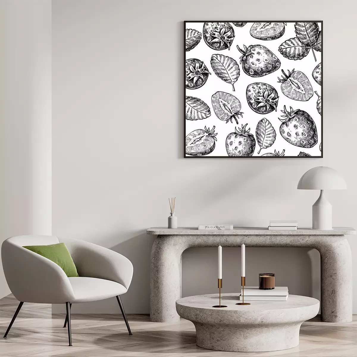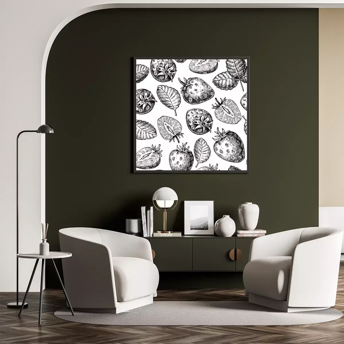 Poster : Dessin à motif sans couture de vecteur de fraises. Isolé dessiné à la main