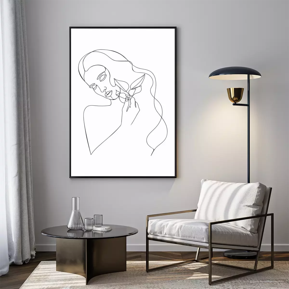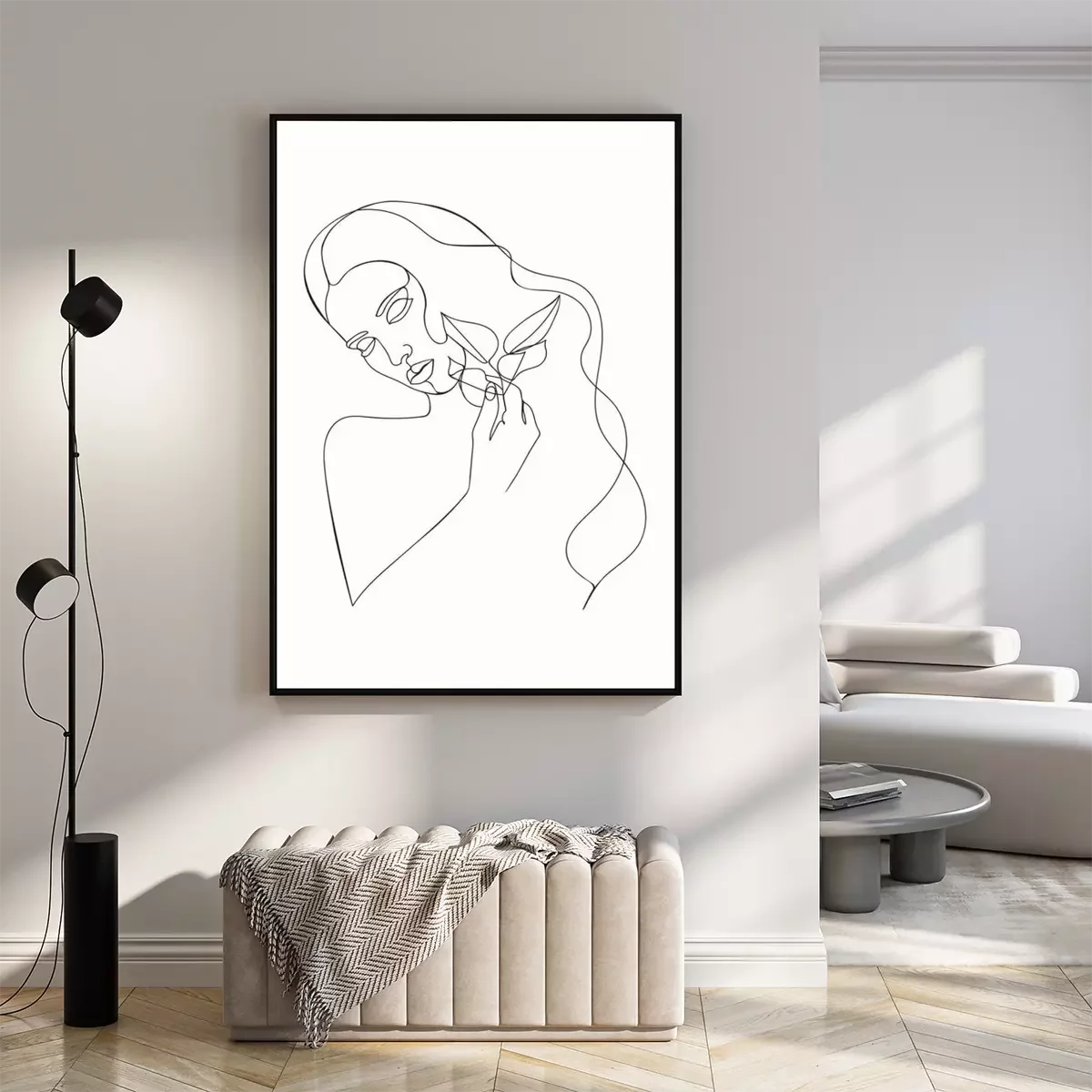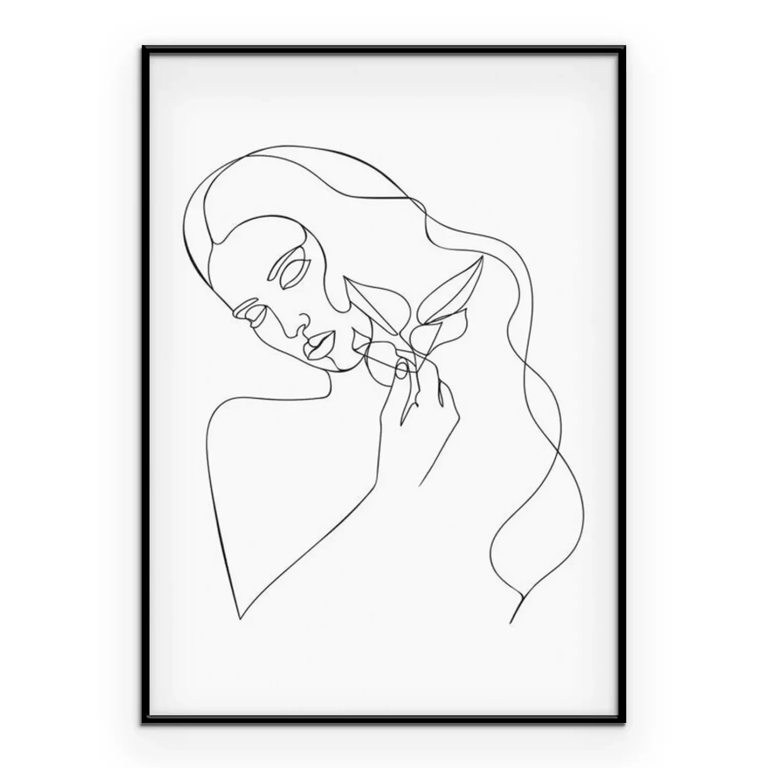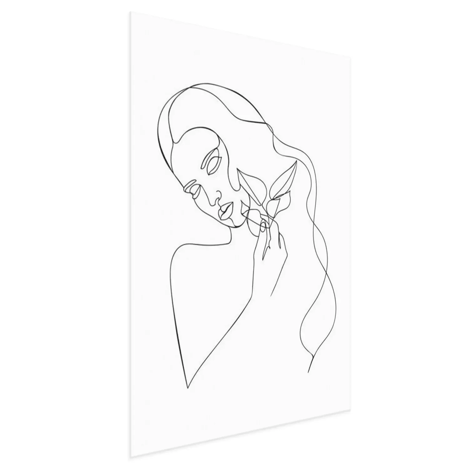 Poster  Dessin au trait d'une femme tenant des feuilles