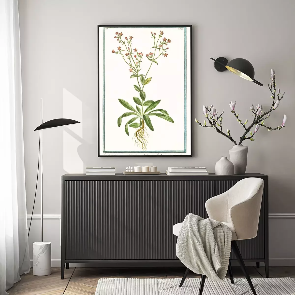 Poster  Dessin botanique de la centaurée commune encadré
