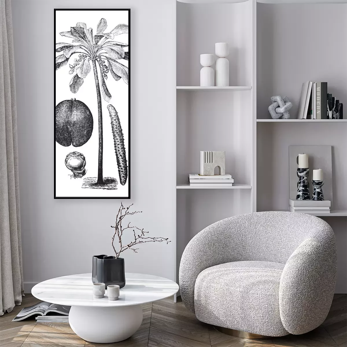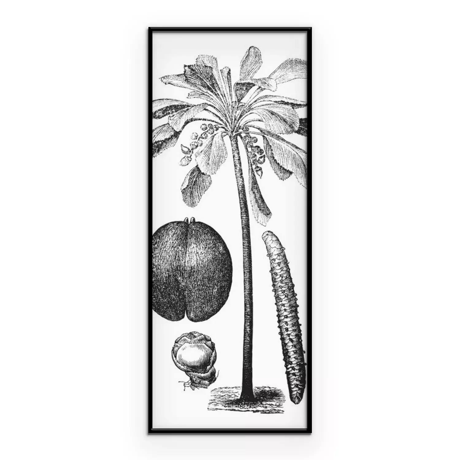 Poster : Dessin botanique en noir et blanc de palmier coco