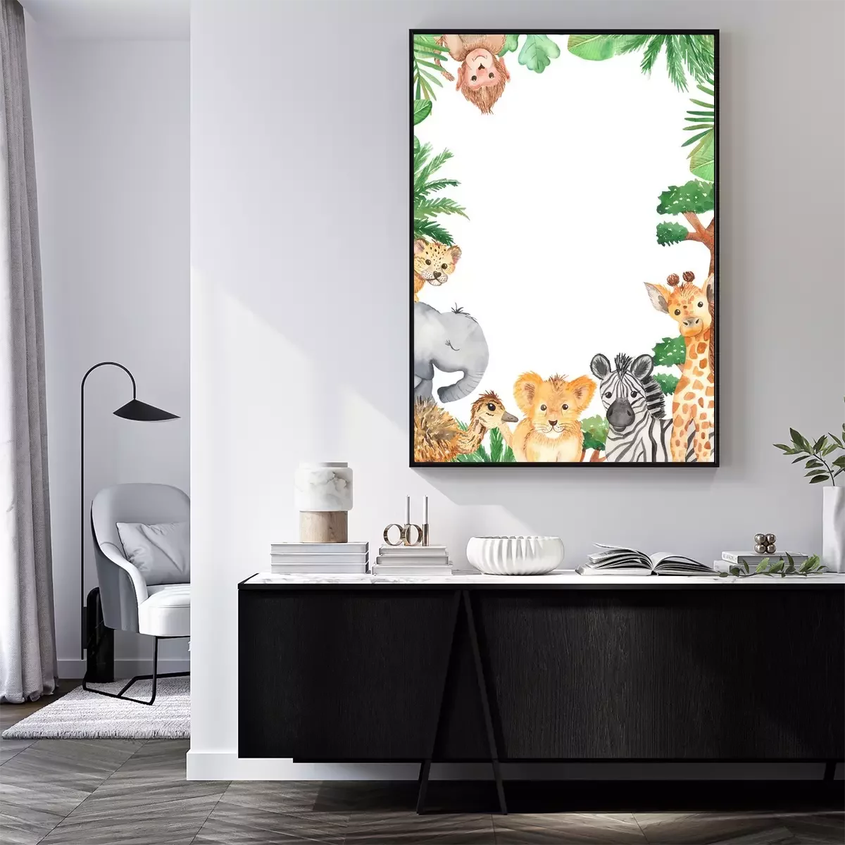 Poster : Dessin d'animaux de safari formant un cadre