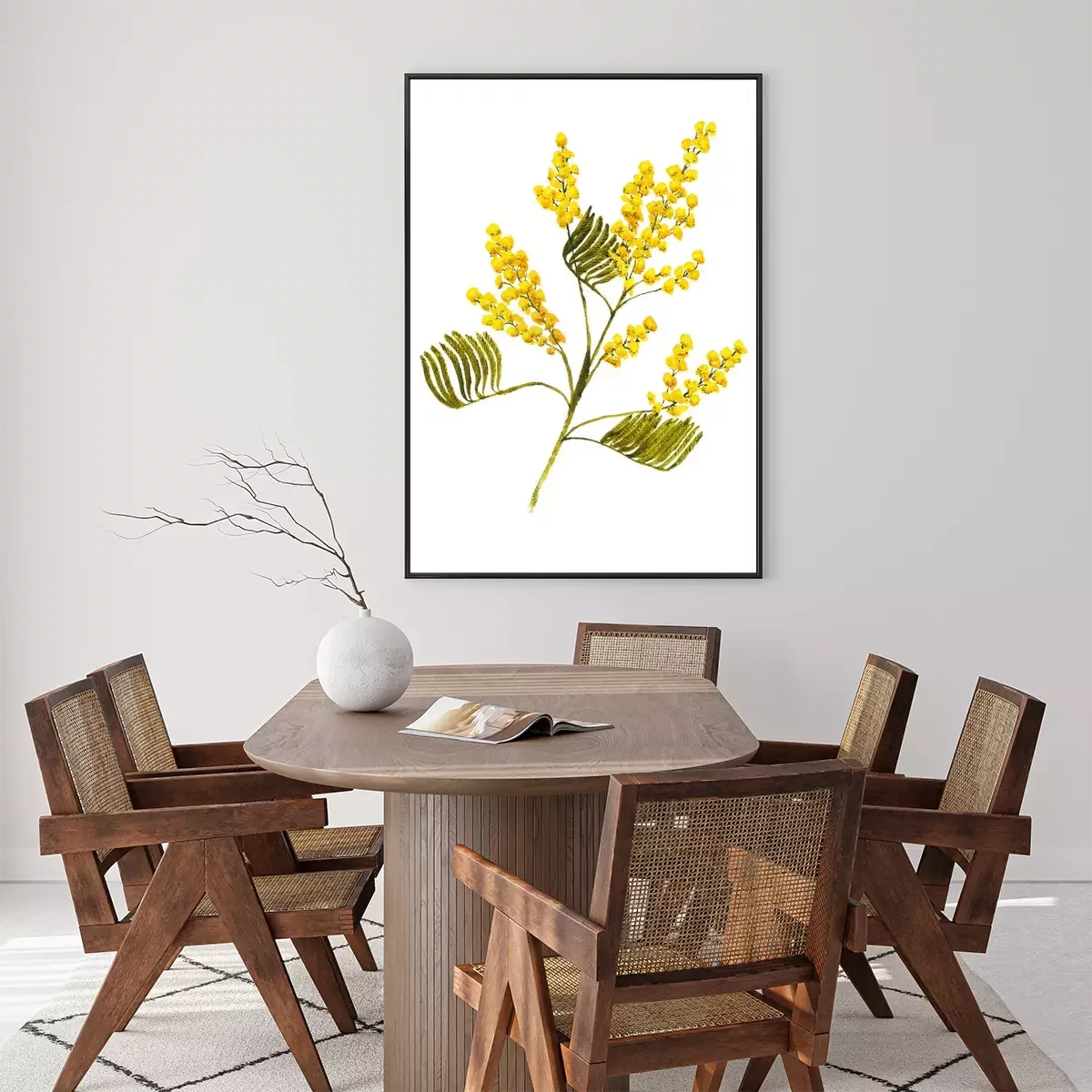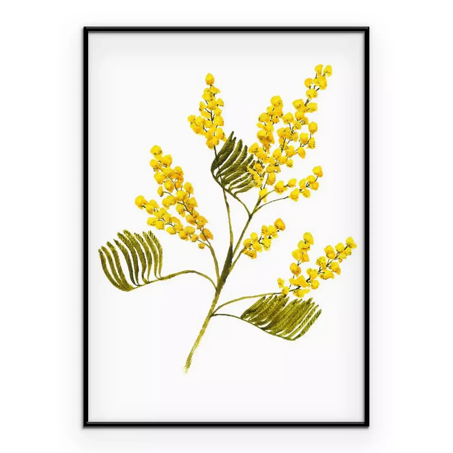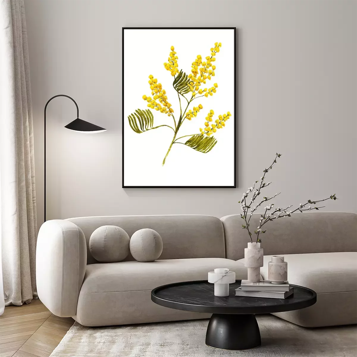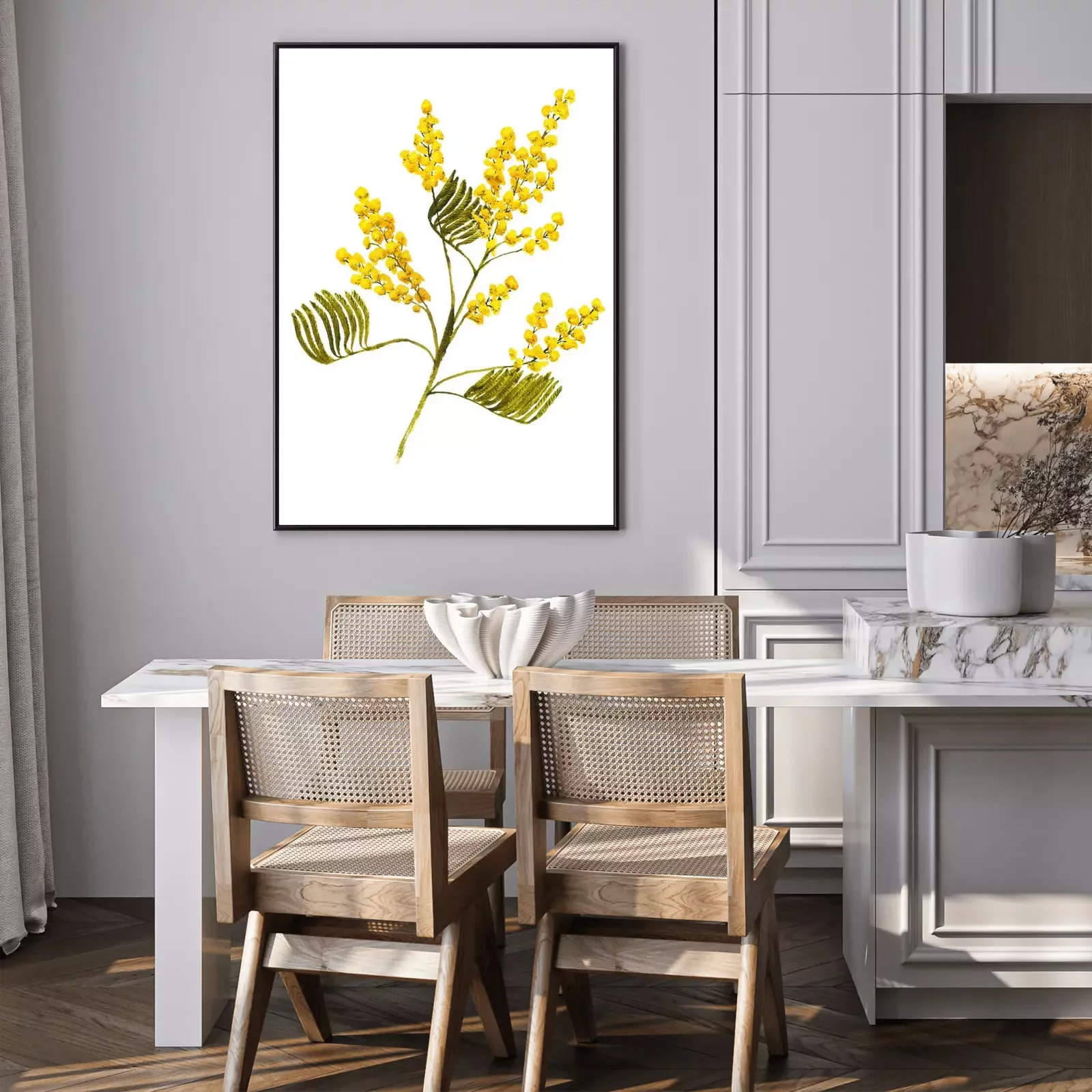 Poster : Dessin d'une seule brindille de mimosa jaune