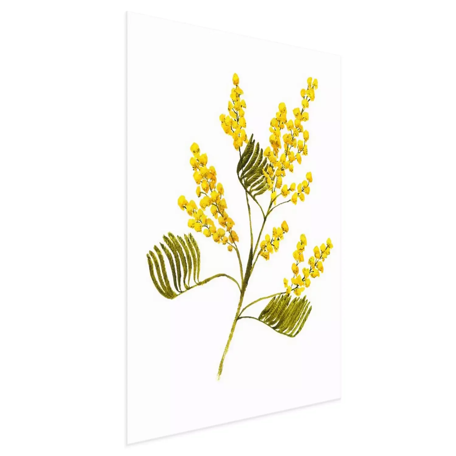Poster  Dessin d'une seule brindille de mimosa jaune