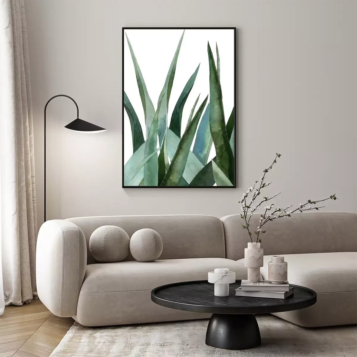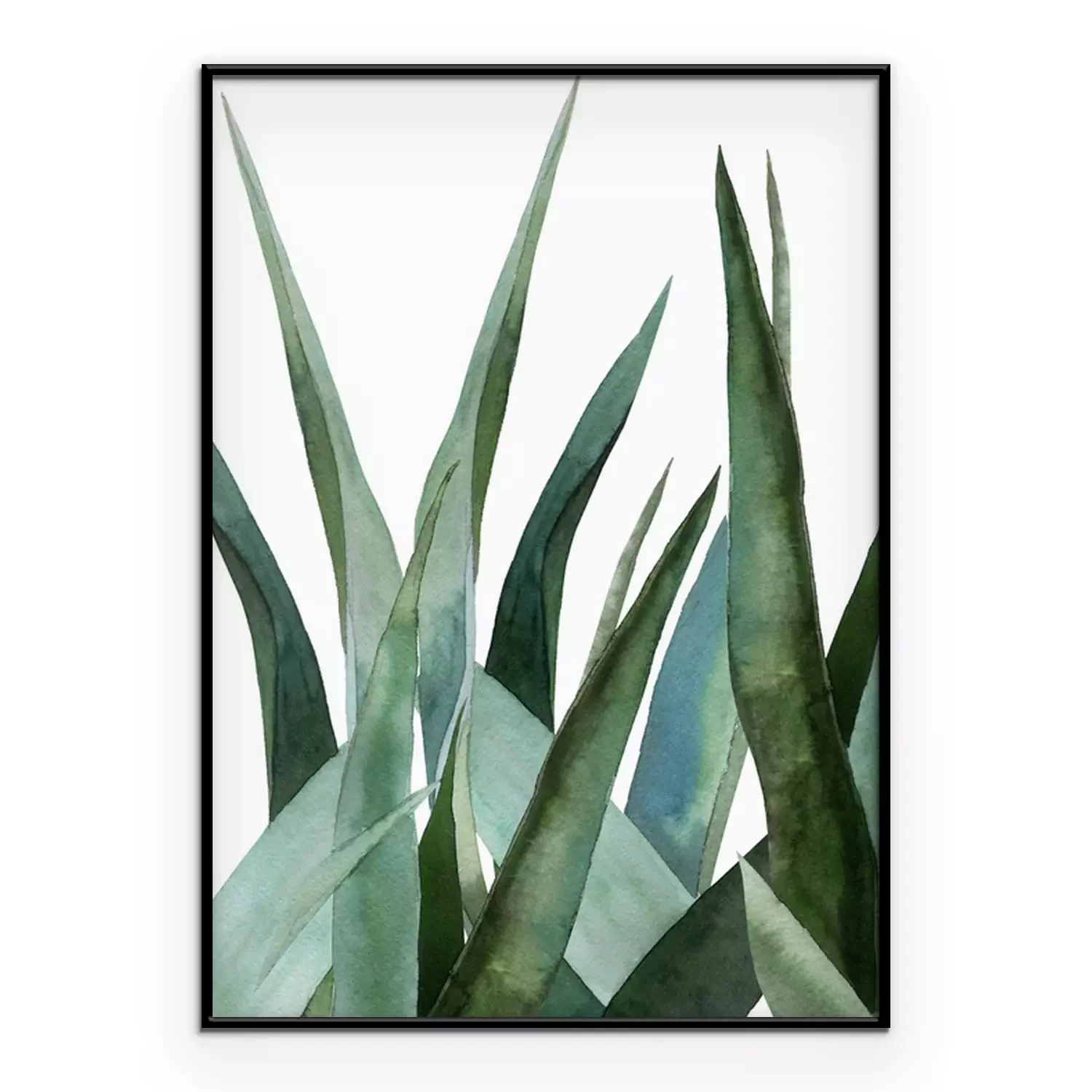 Poster  Dessin de touffes de feuilles d'agave vert foncé