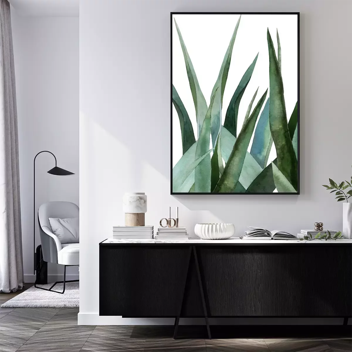 Poster : Dessin de touffes de feuilles d'agave vert foncé