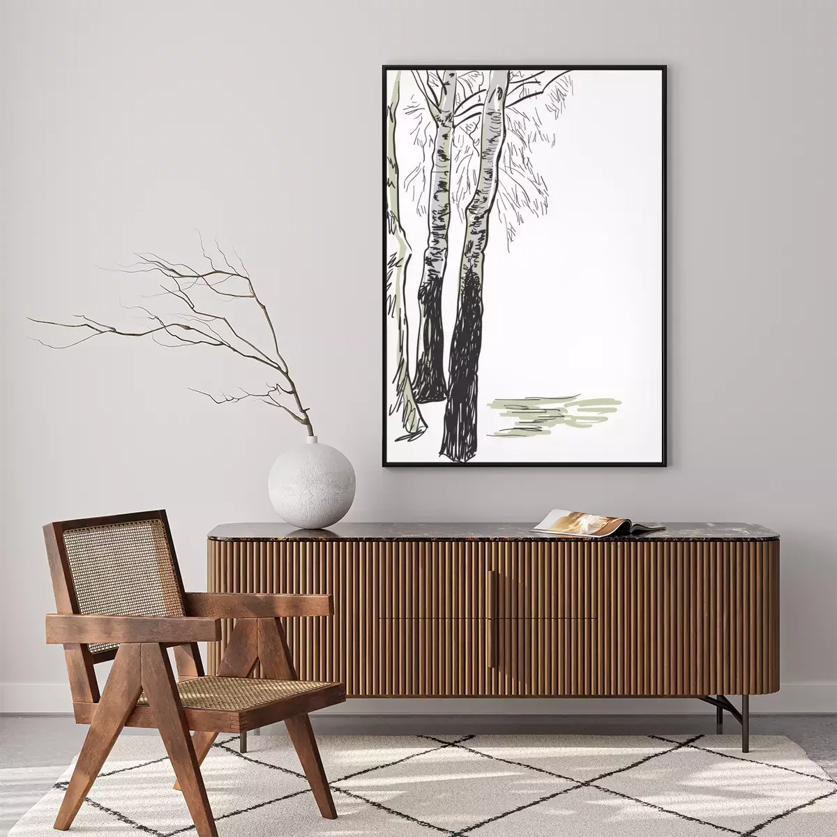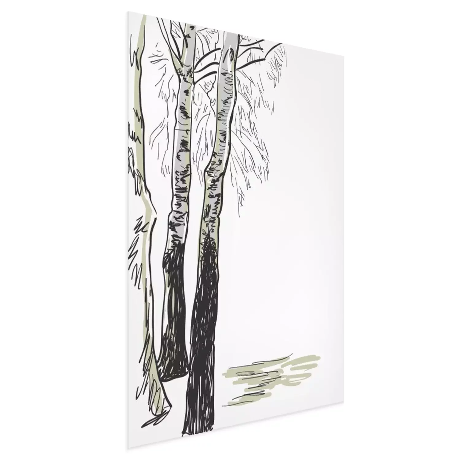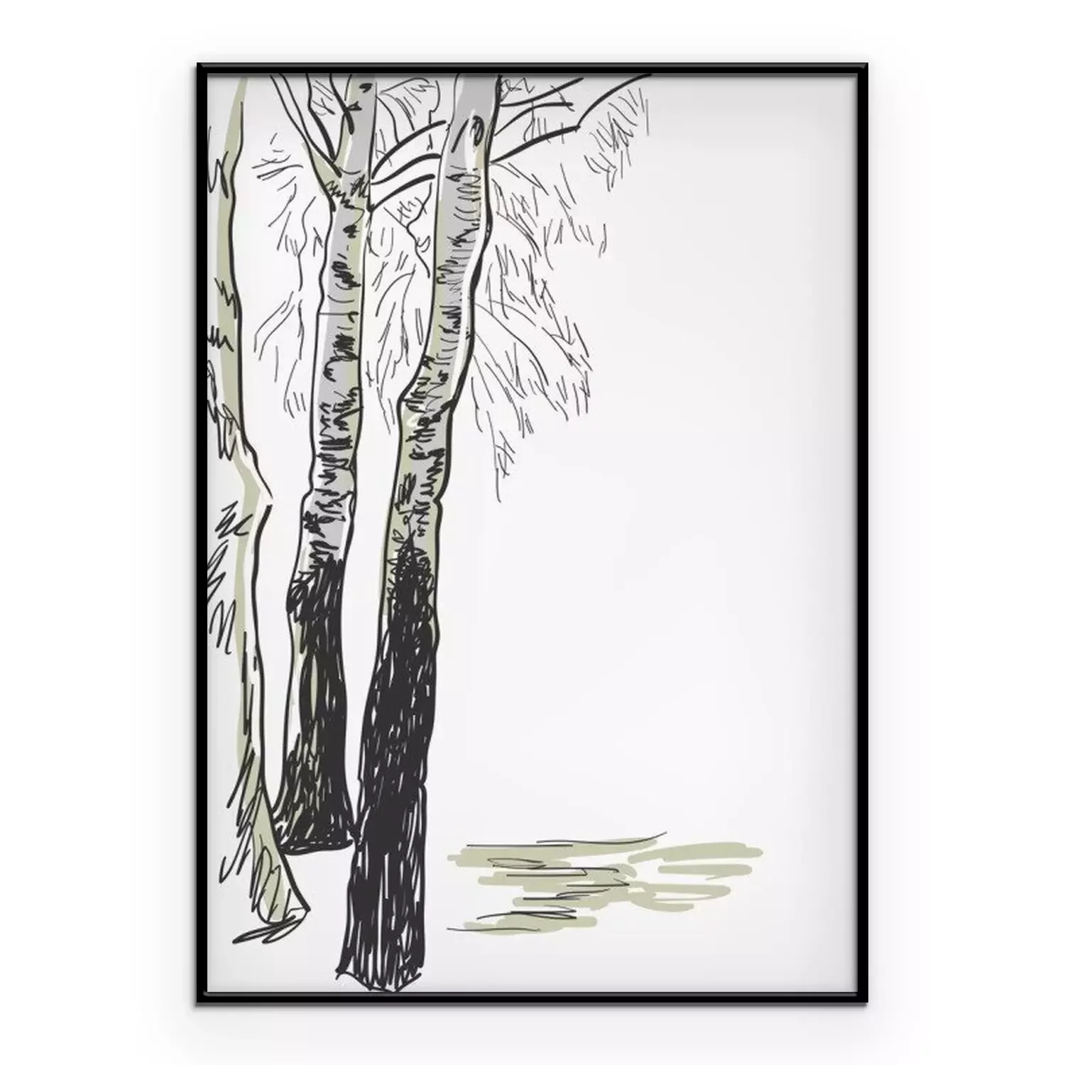 Poster : Dessin en noir et blanc de bouleaux