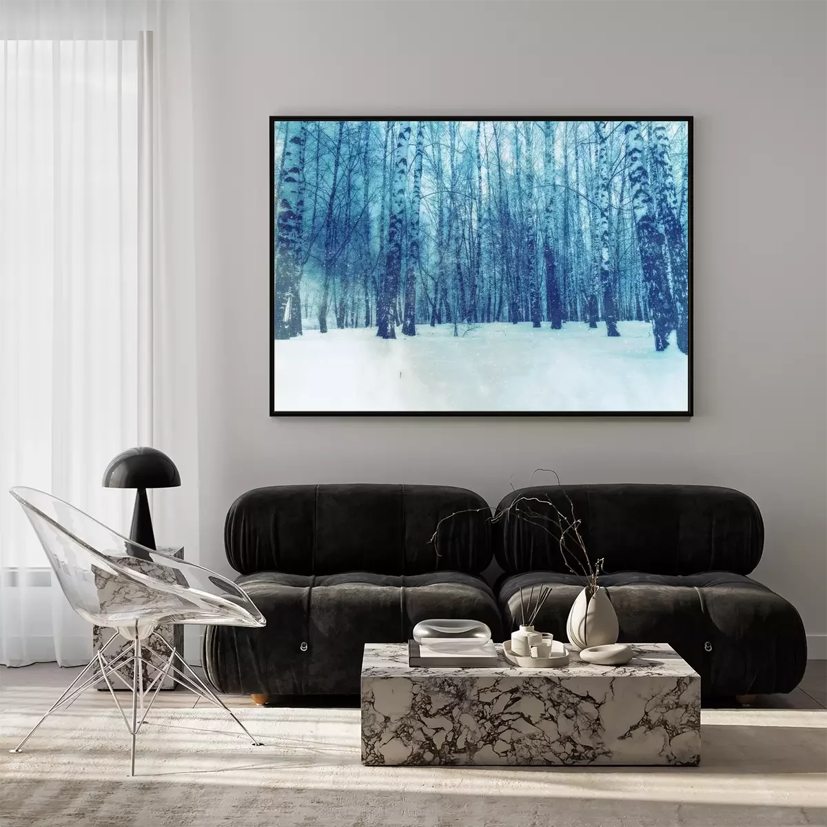 Poster : Dessin minimaliste de bouleau en noir et blanc