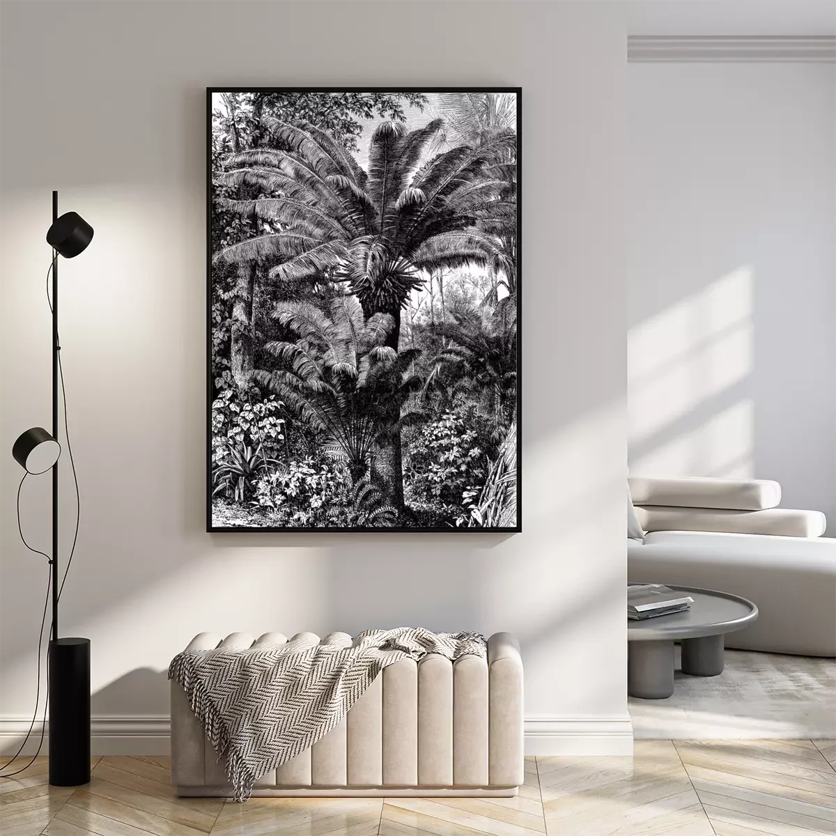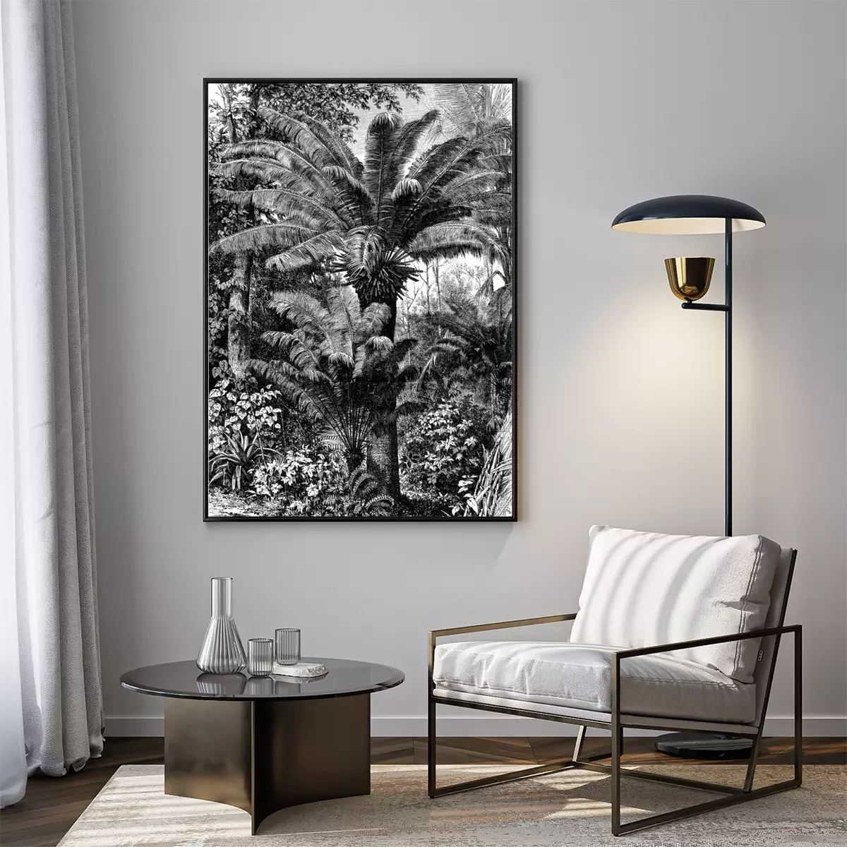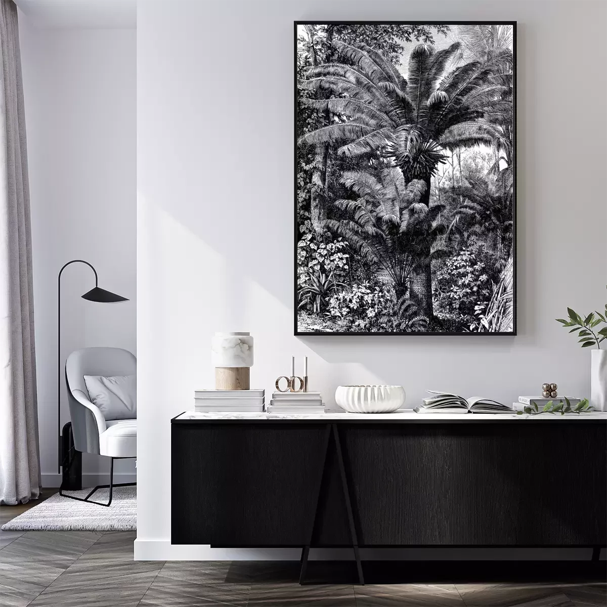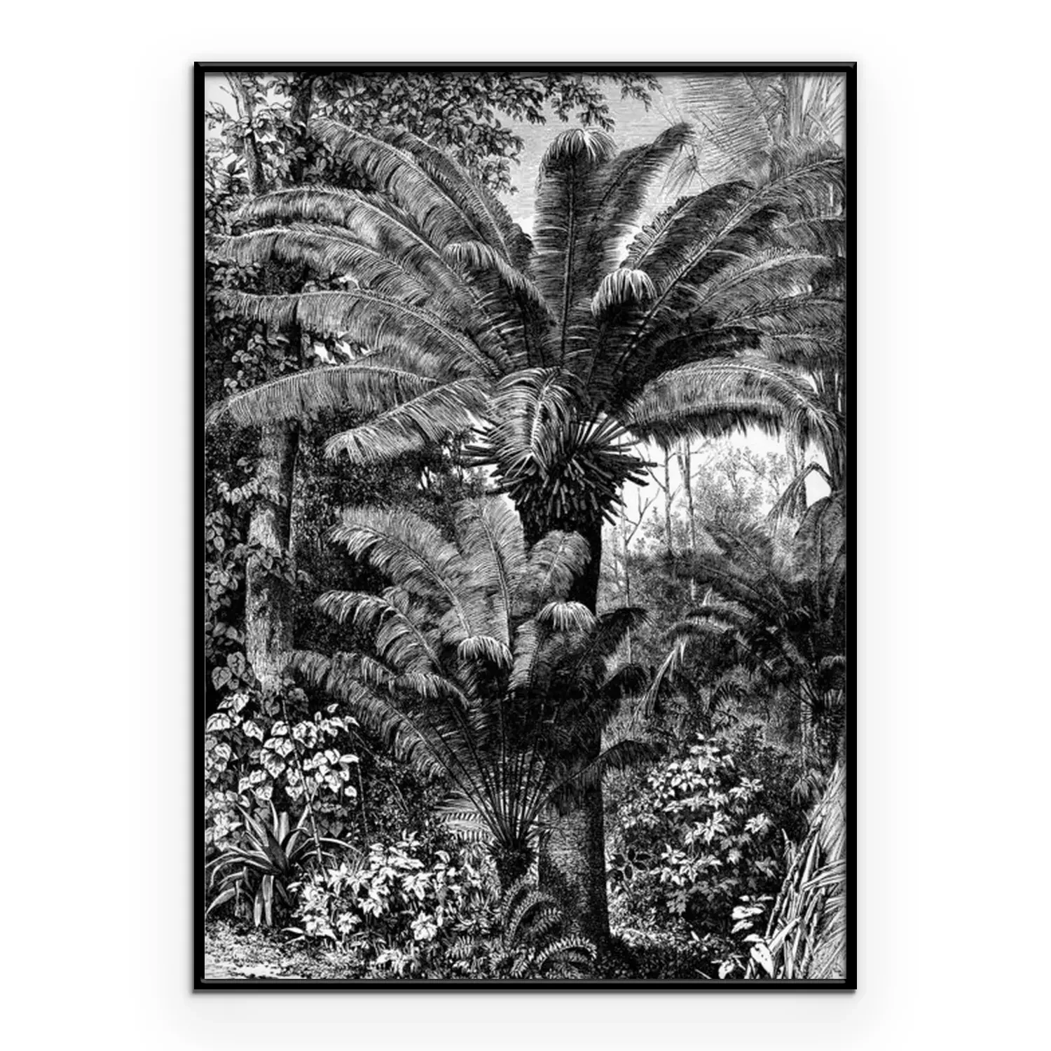 Poster : Dessin noir et blanc de la jungle