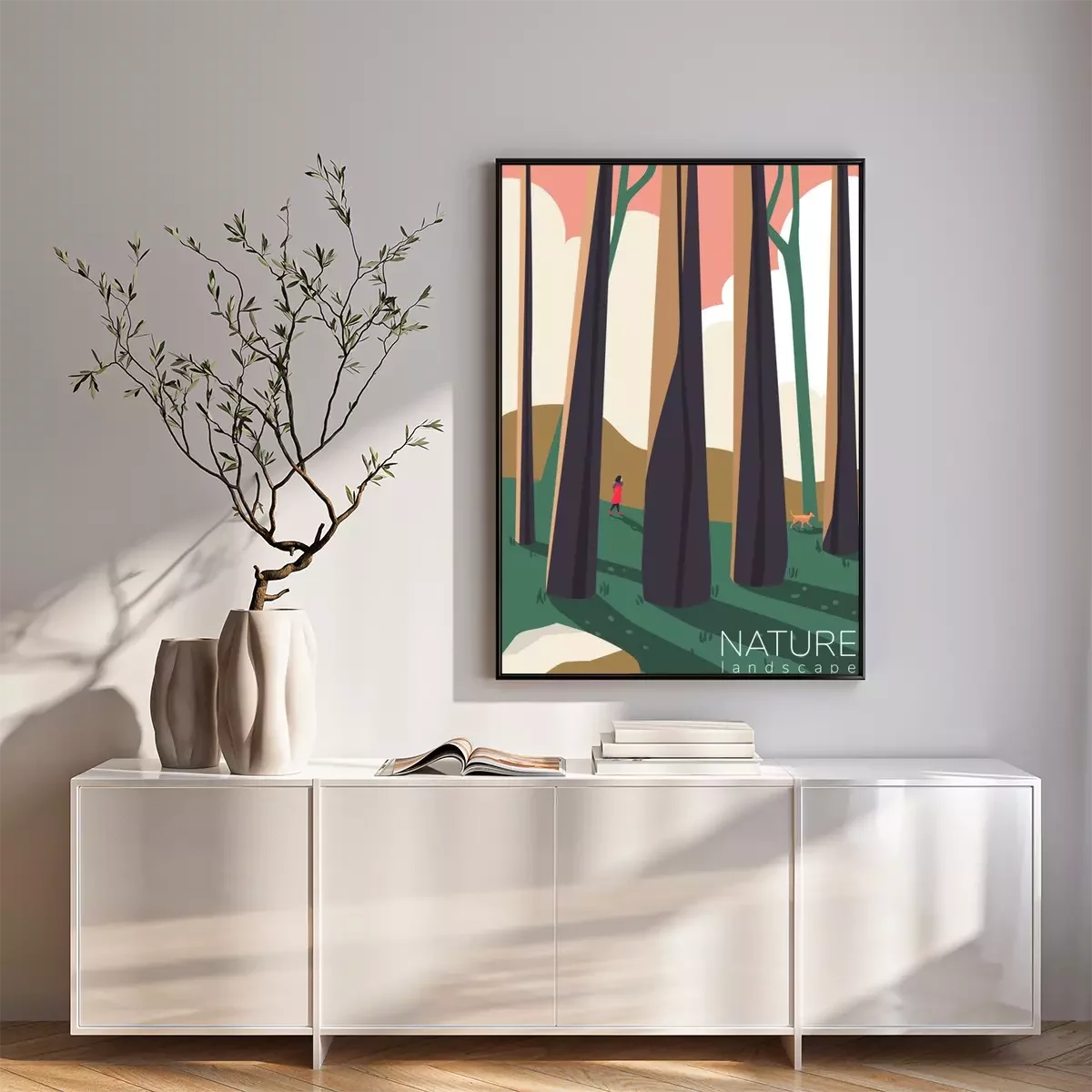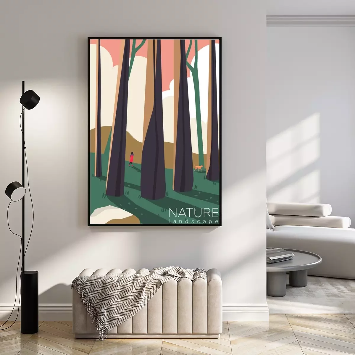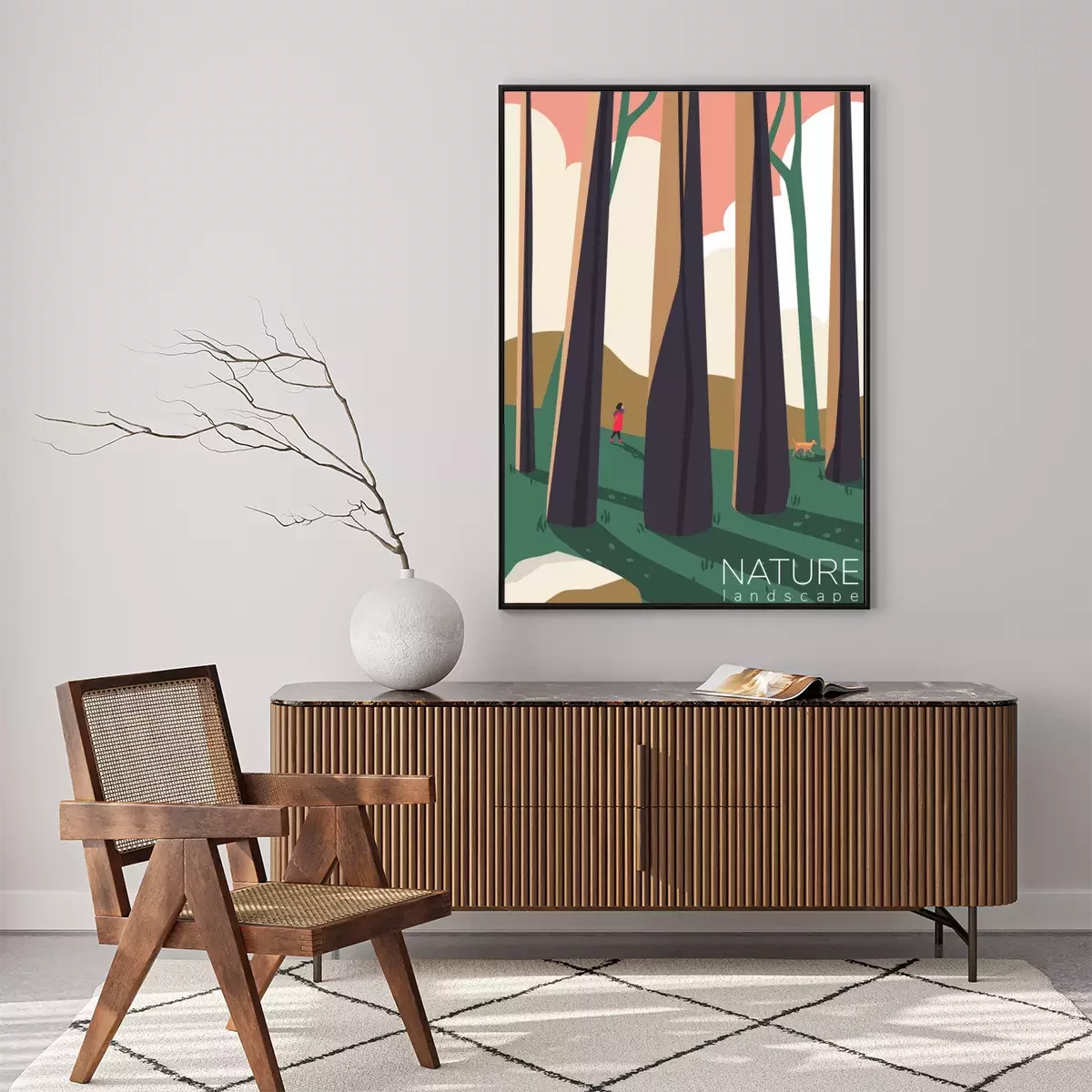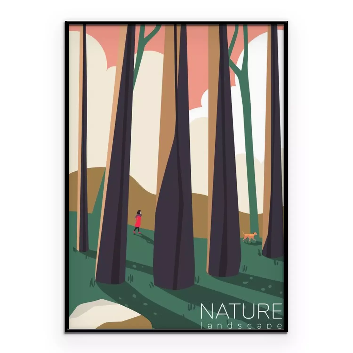 Poster  Dessin numérique d'une figure dans une forêt d'arbres